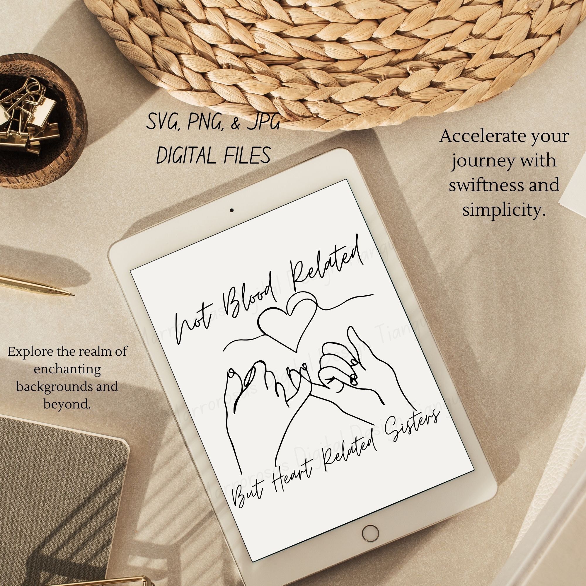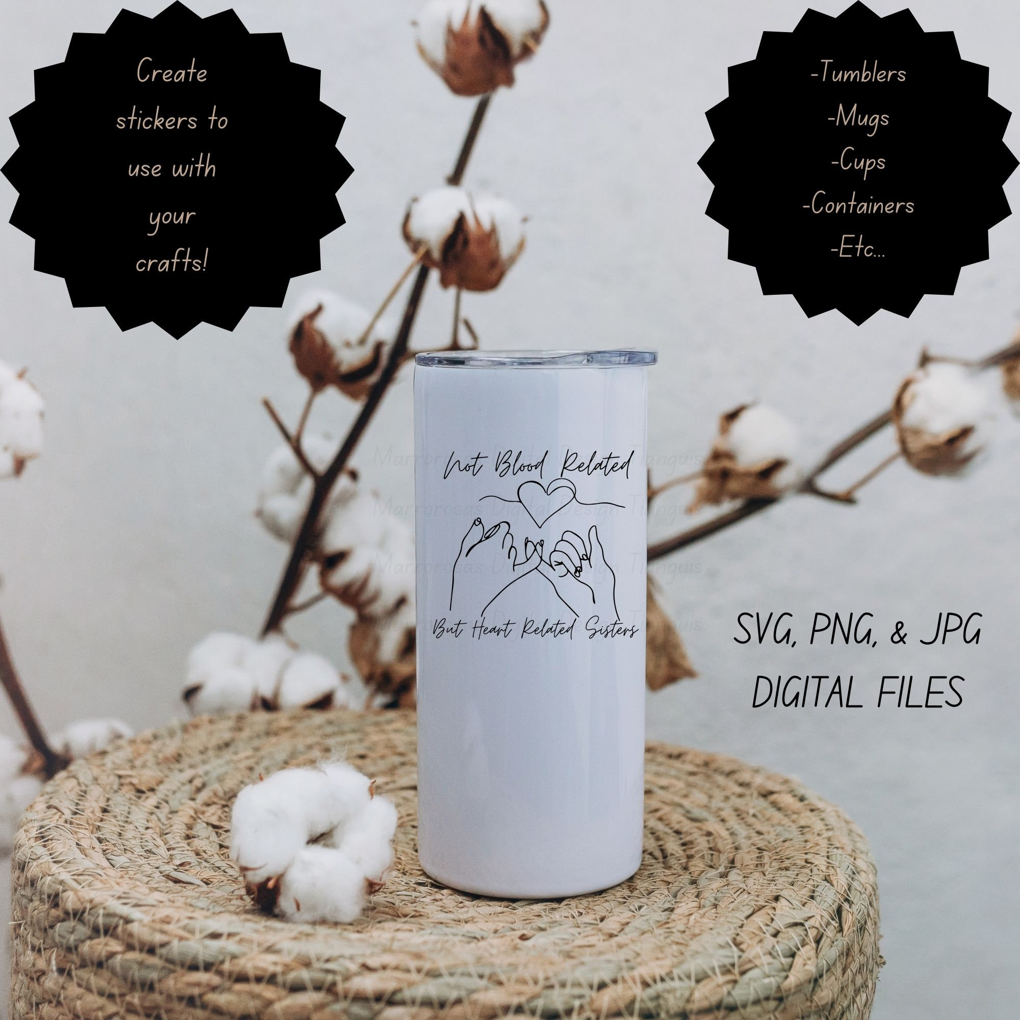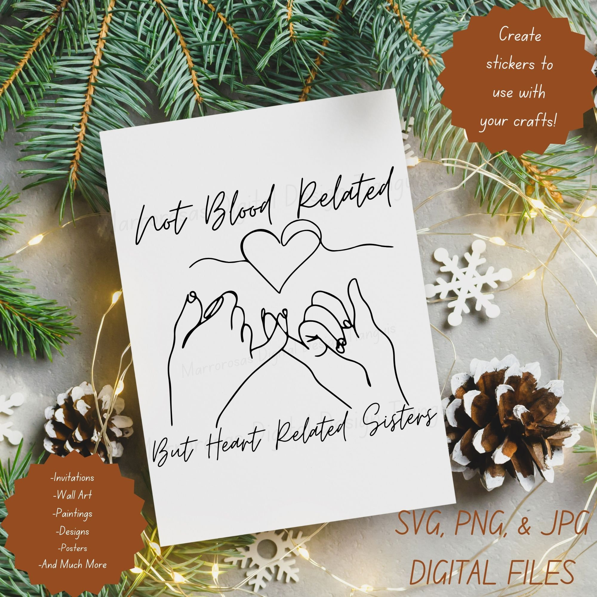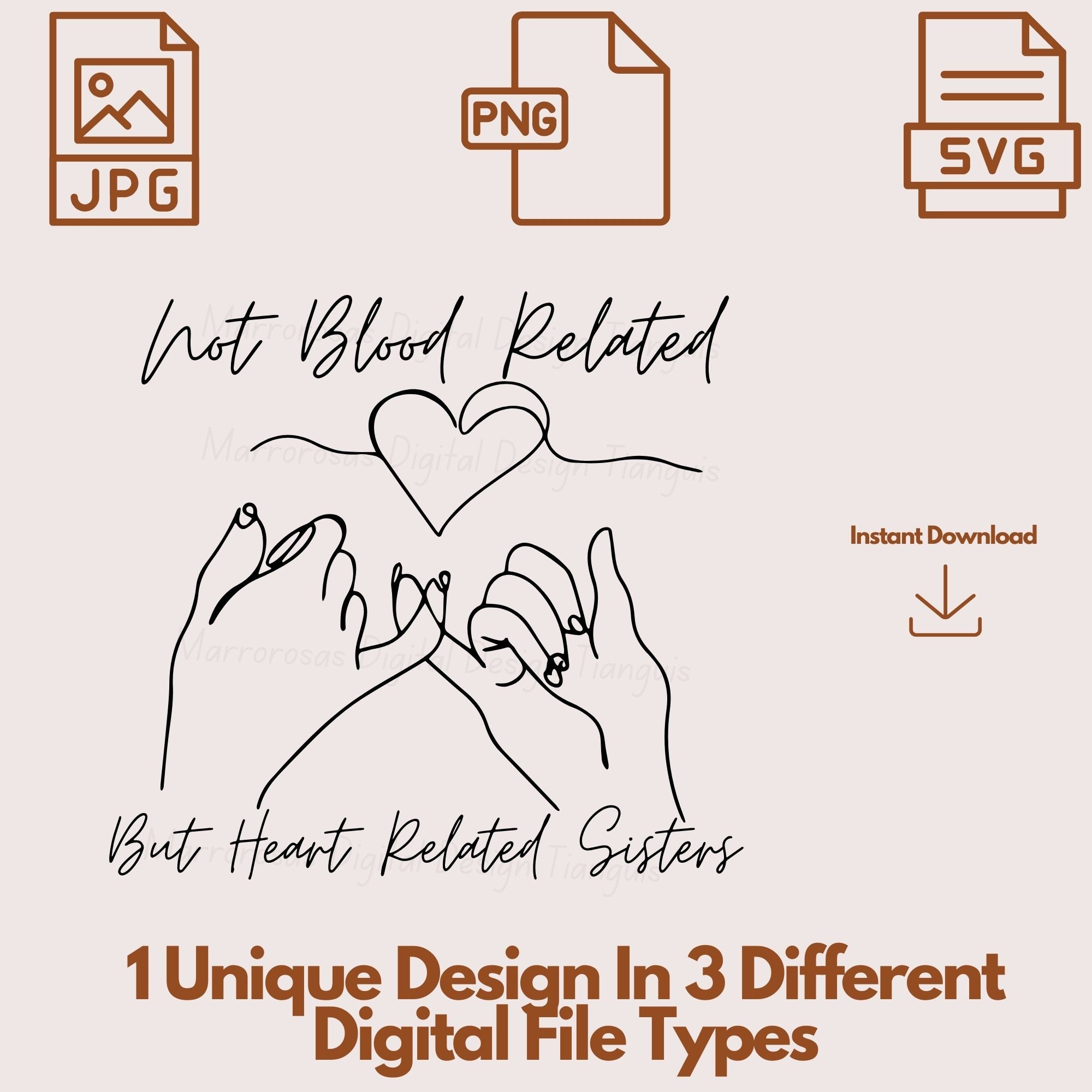 If you are looking for an authentic, adorable, an cute Friendship/Family inspired digital design then this file is for you. Not blood related, But heart related sisters is a very cute and lovable digital design/art that can be used in many different ways. Great for gifting either him or her. This digital design product comes in 3 different DIGITAL file types (PNG, SVG, JPG) to accommodate any of your needs. Files are resizable and printable!