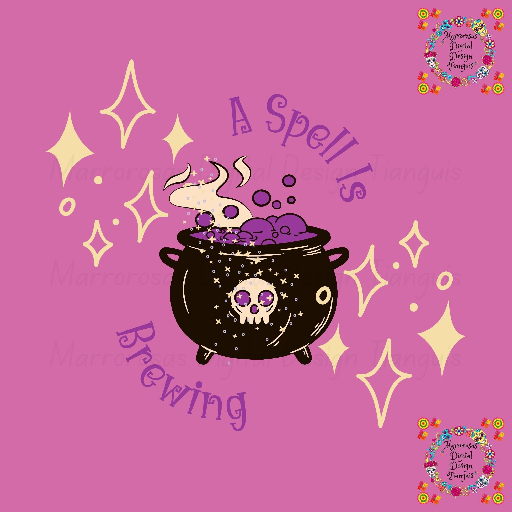 A Spell Is Brewing svg l Halloween Svg l Pot l Potion l Design l Creative l Digital l Svg l Png l Jpg l Witchcraft l Spells l Stars l Skull