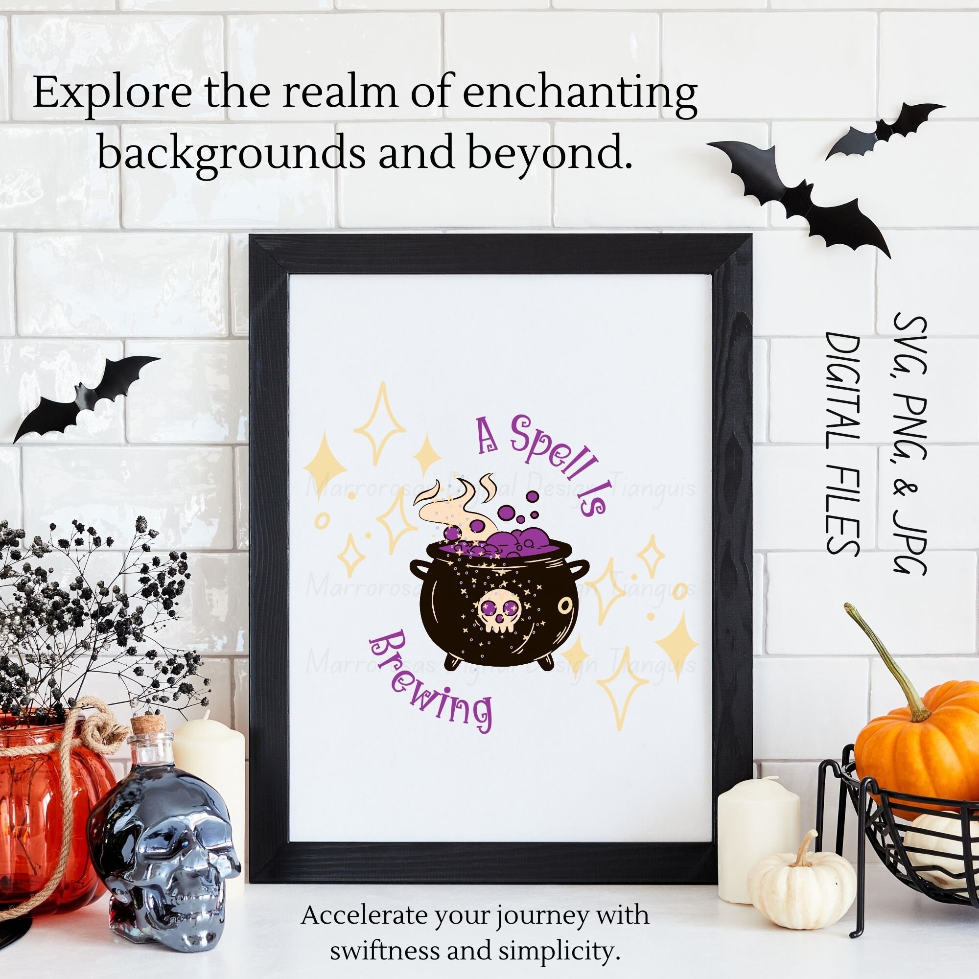 If you are looking for a Cute, Very Adorable, and Unique Halloween digital design then this file is for you. A Spell Is Brewing is a simple but unique and original digital design that can be used in many different ways. Creating your very own T Shirt design, Crafting, Photo Albums, Tumblers, Photo Cases (Holidays), Wall Art, and Much More! This digital product comes in 3 different file types (JPG,PNG, & SVG) to accommodate any of your needs. Files are resizable and printable!