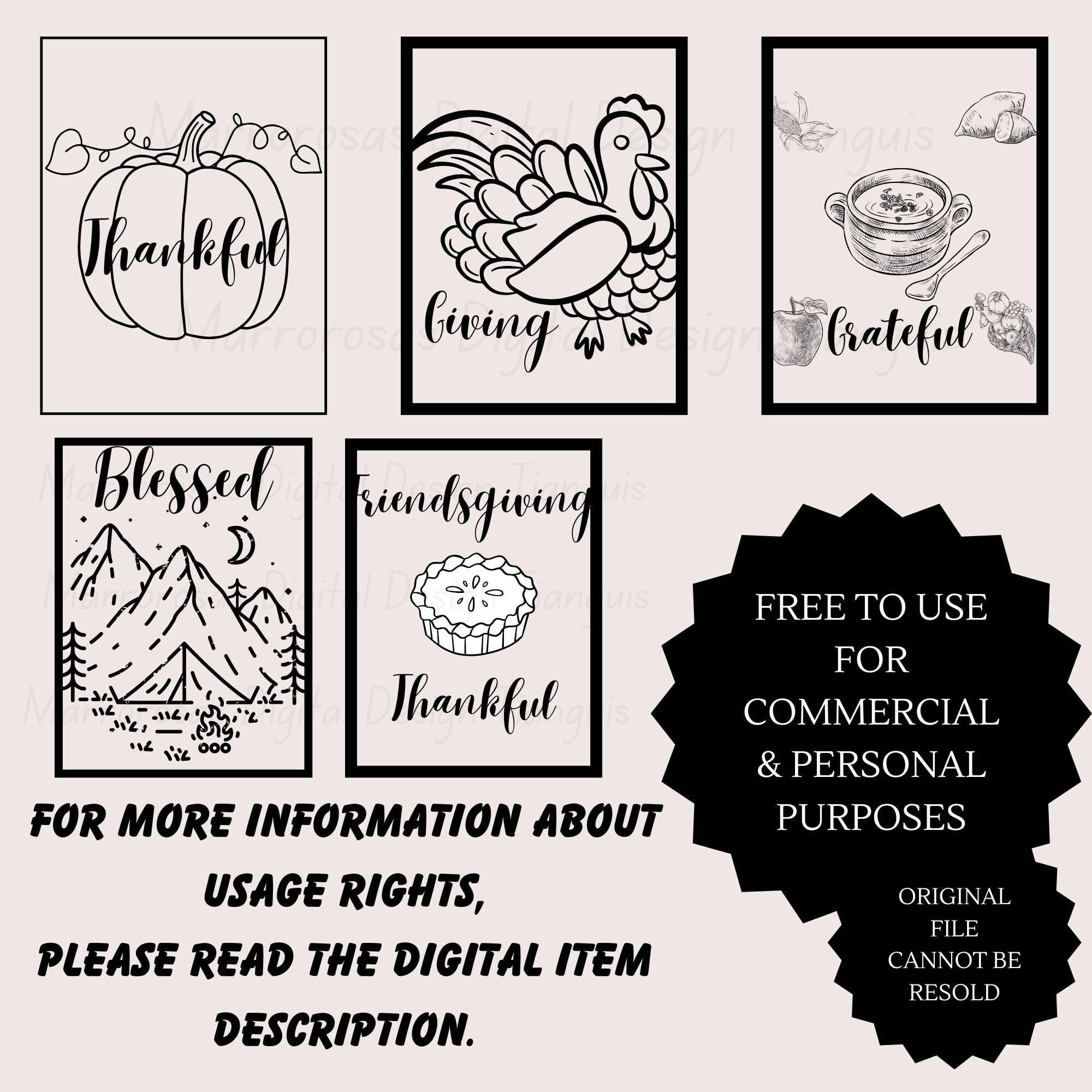 - 5 PDF Thanksgiving Kids Coloring Pages File (8.5x11 INCHES)
