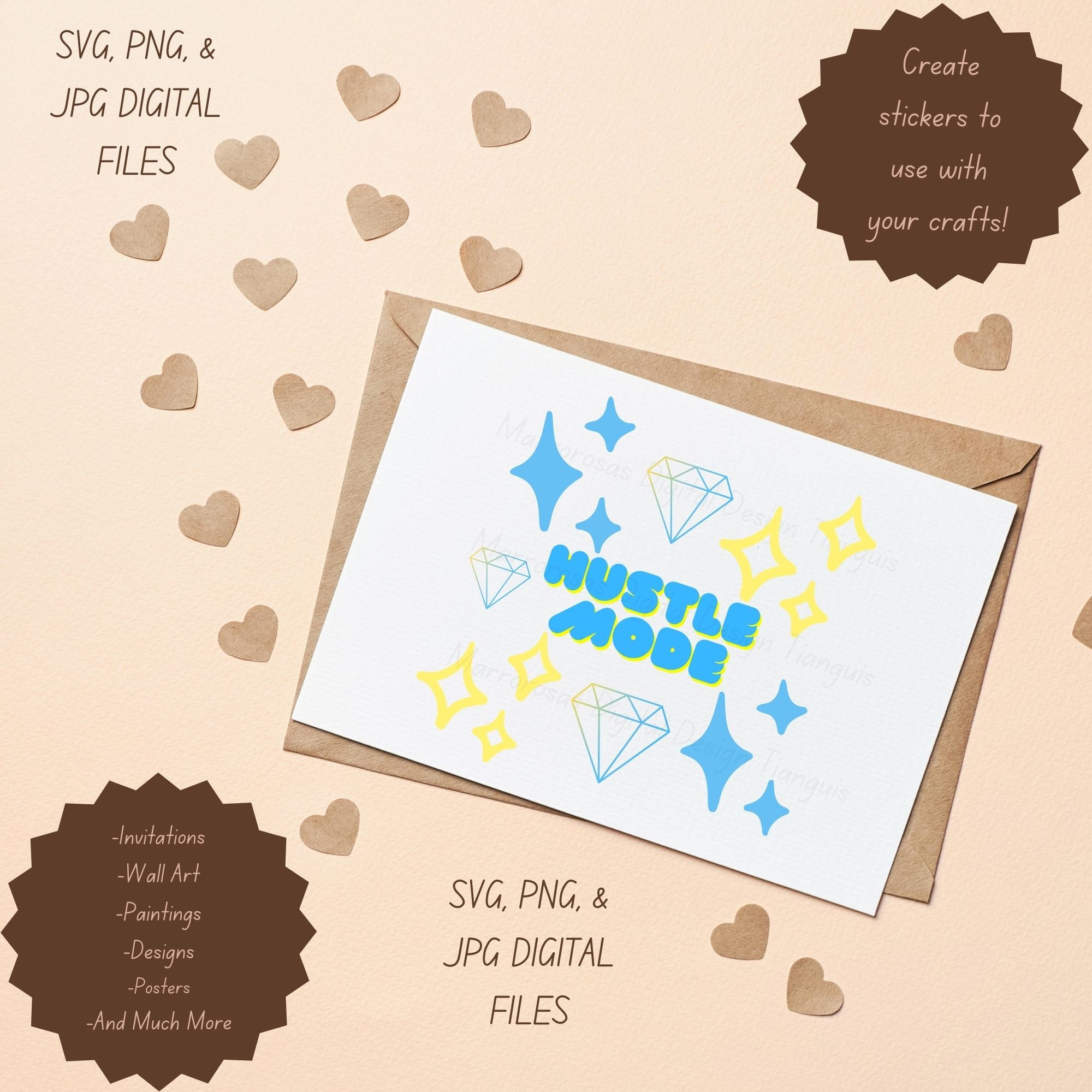 If you are looking for an a cute, authentic, and women inspired digital design then this file is for you. Hustle Mode is a very original, colorful, and cute digital design/art that can be used in many different ways. Great for gifting either him or her. This digital design product comes in 3 different DIGITAL file types (PNG, SVG, JPG) to accommodate any of your needs. Files are resizable and printable!