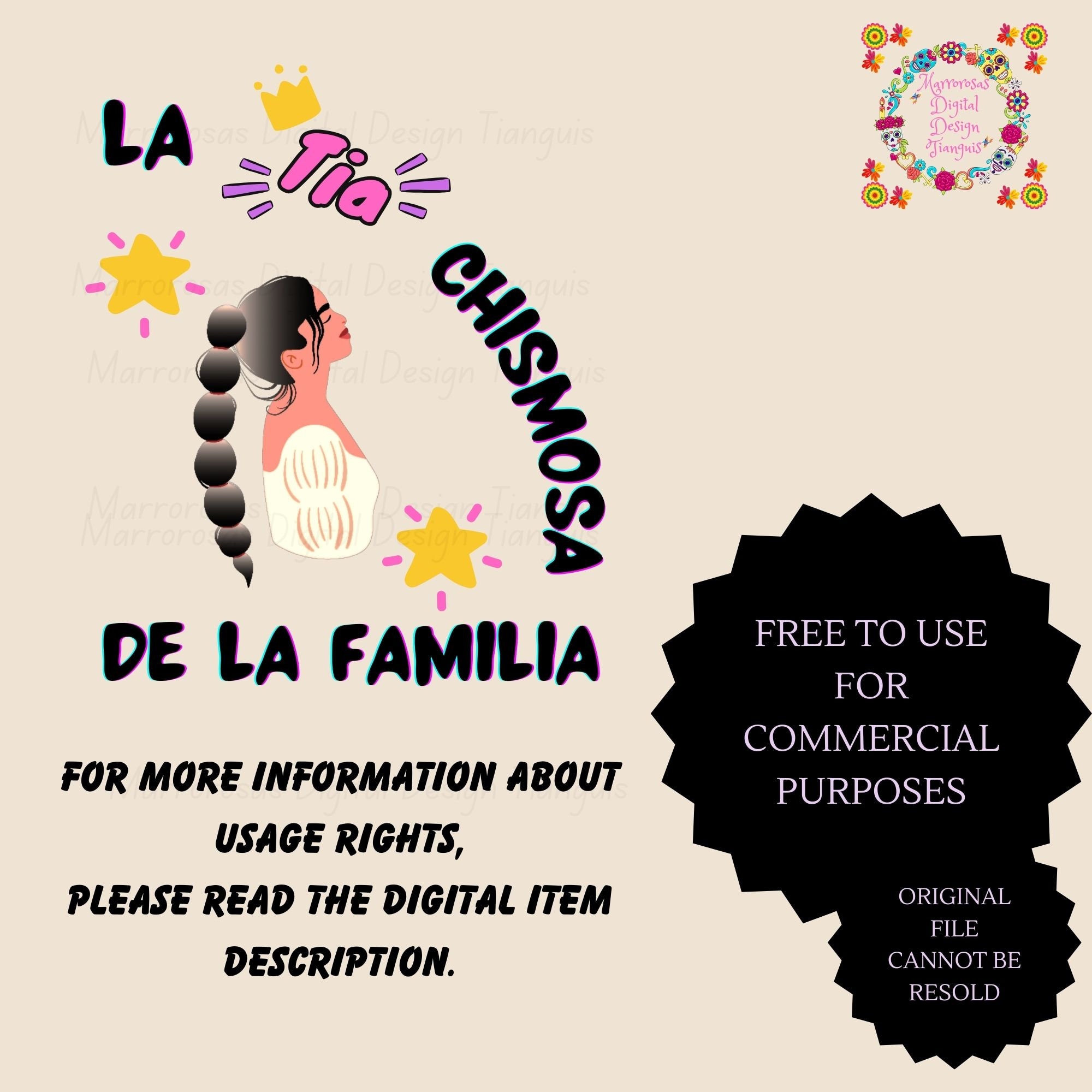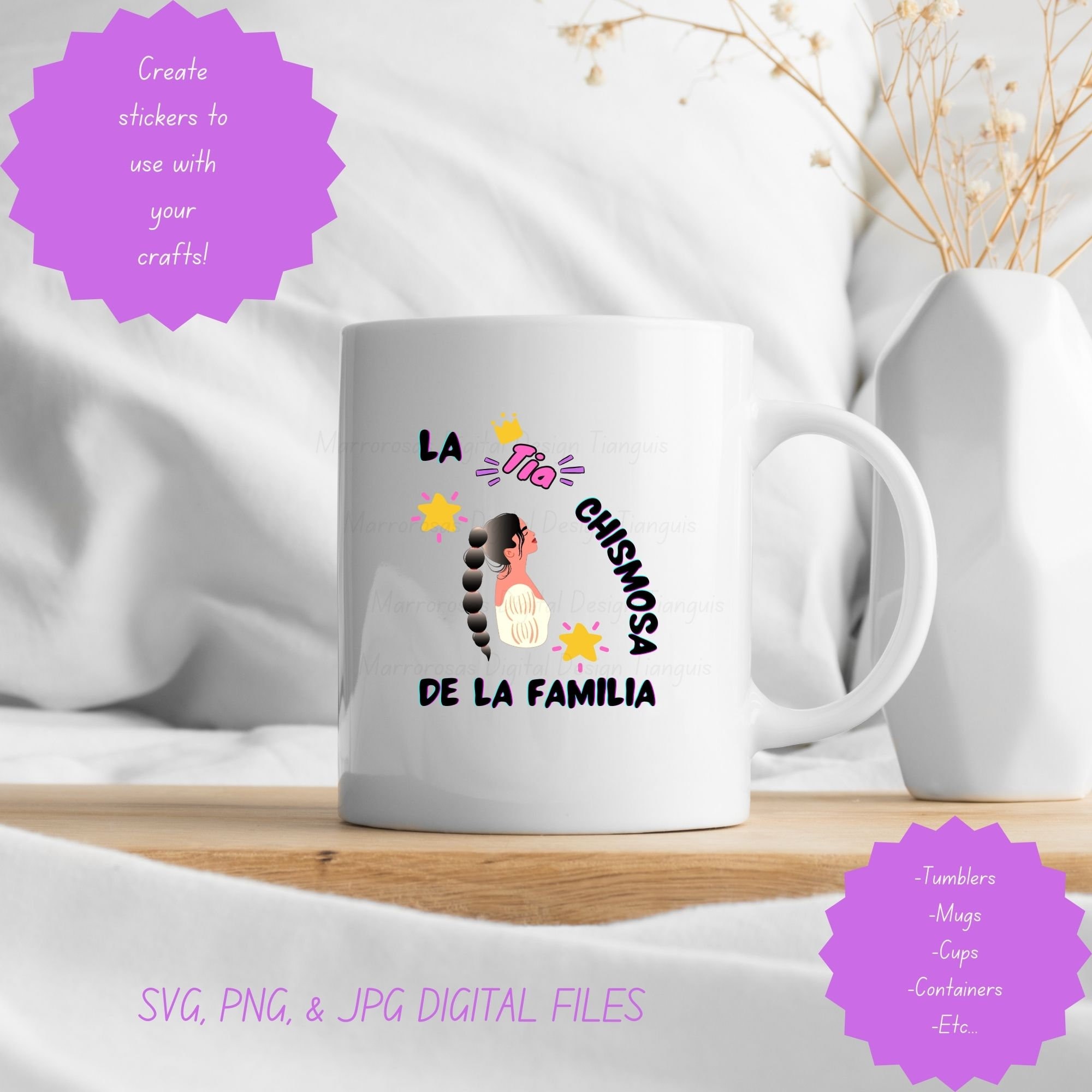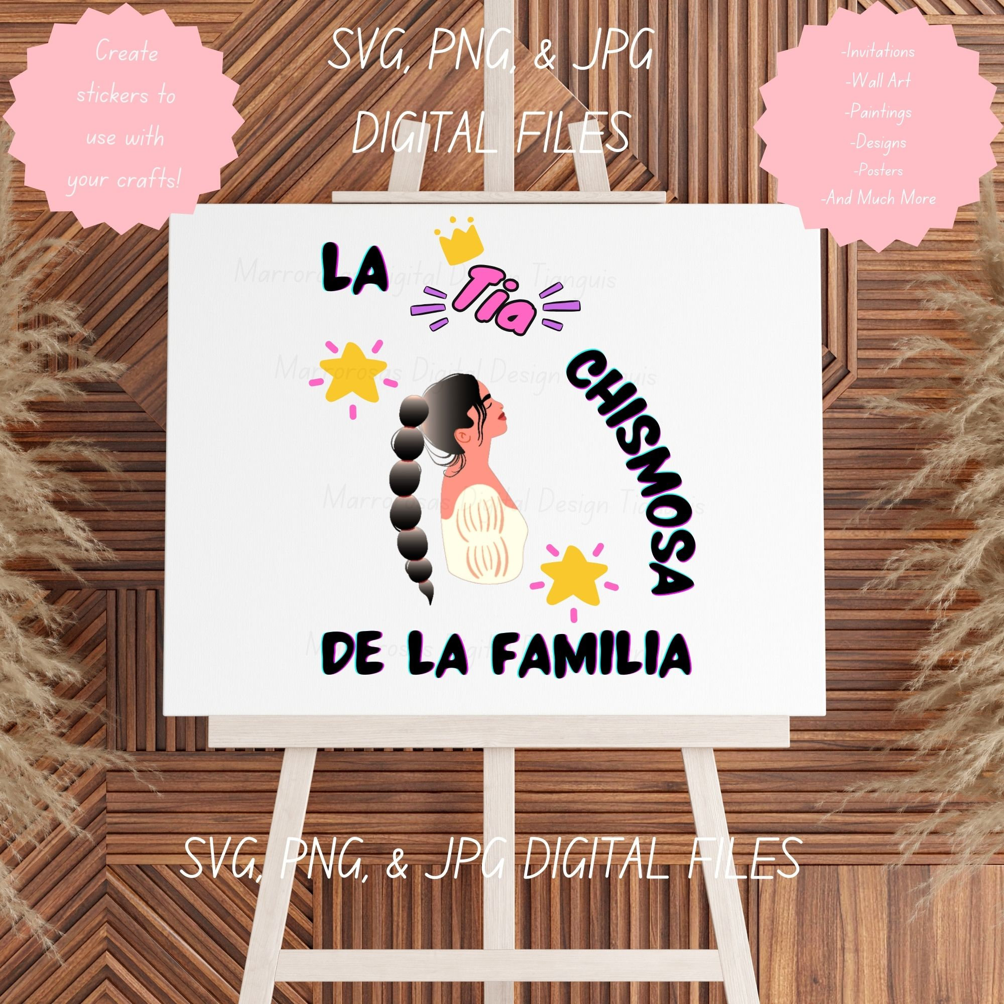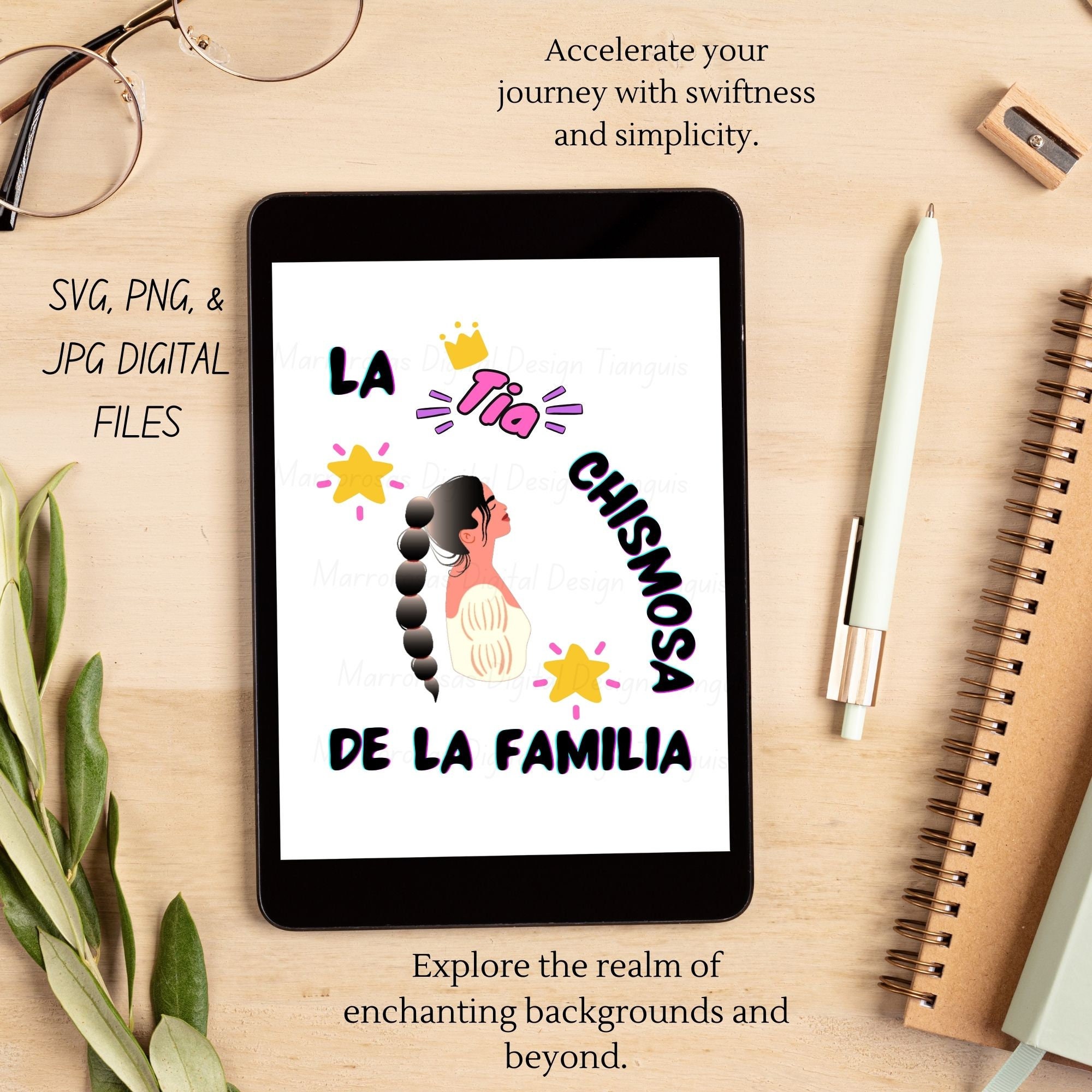 If you are looking for an authentic, adorable, and funny Latina tia chismosa latin Saying inspired digital design then this file is for you. La tia chismosa de la Familia is a very cute and lovable digital design/art that can be used in many different ways. Great for gifting either him or her. This digital design product comes in 3 different DIGITAL file types (PNG, SVG, JPG) to accommodate any of your needs. Files are resizable and printable!