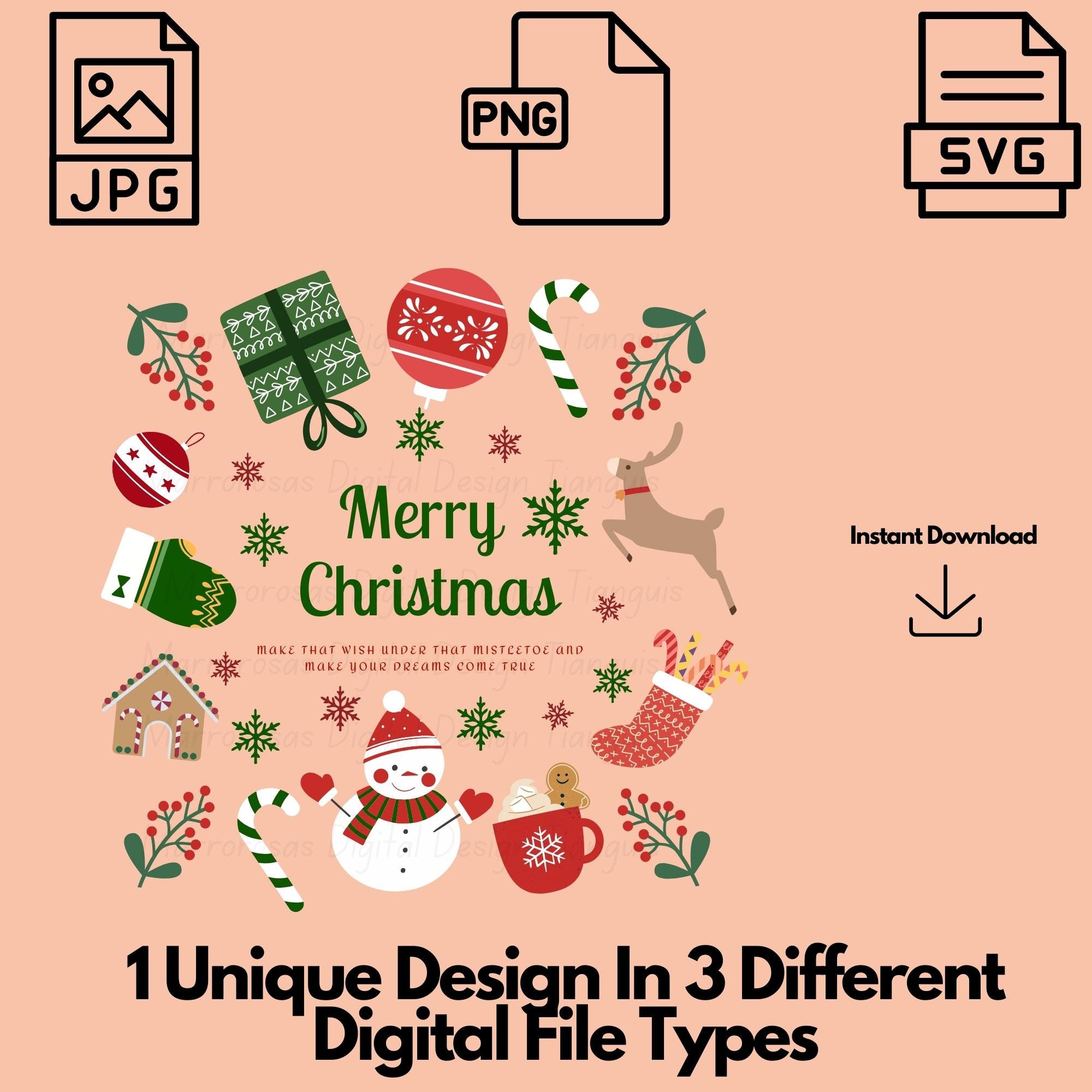 If you are looking for an authentic, colorful, and cute Christmas inspired digital design then this file is for you. Make that wish under that Mistletoe is a very cute, colorful, and original digital design/art that can be used in many different ways. Great for gifting either him or her. This digital design product comes in 3 different DIGITAL file types (PNG,JPG, SVG) to accommodate any of your needs. Files are resizable and printable!