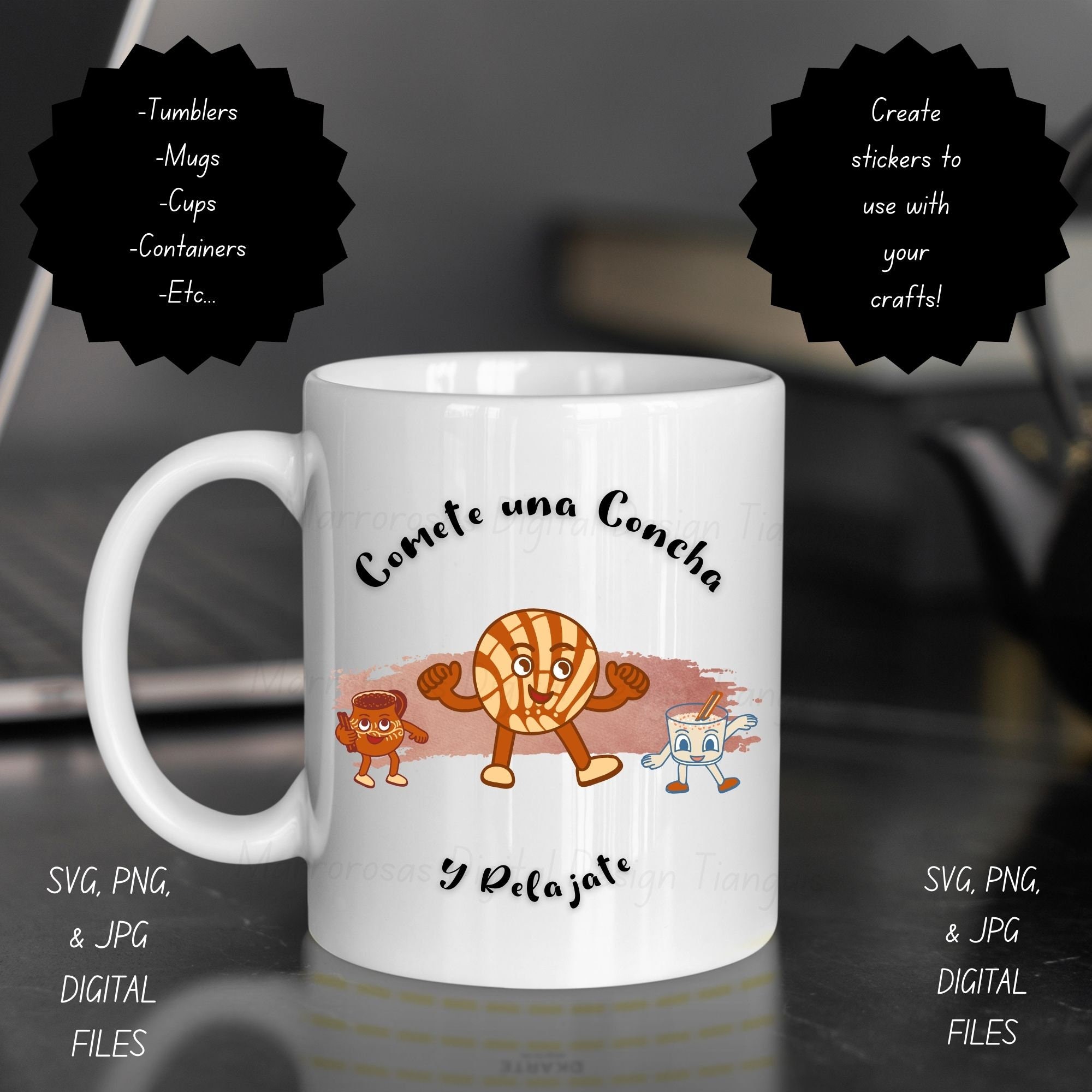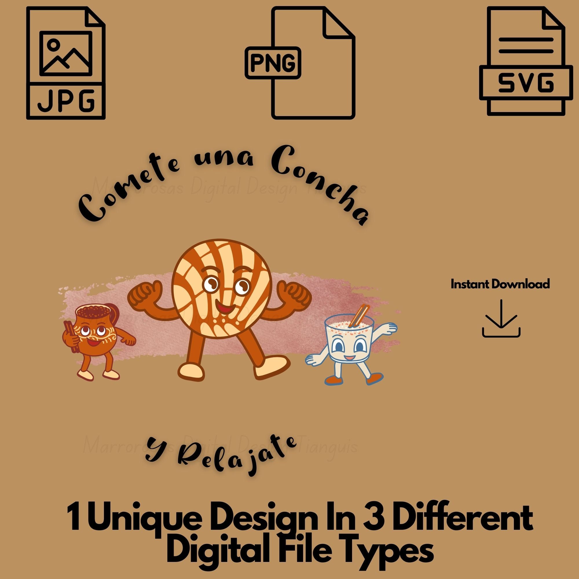 If you are looking for an authentic, colorful, and cute Concha bread inspired digital design then this file is for you. Comete tuna concha y Relajate is a very cute, colorful, and original digital design/art that can be used in many different ways. Great for gifting either him or her. This digital design product comes in 3 different DIGITAL file types (PNG,JPG, SVG) to accommodate any of your needs. Files are resizable and printable!