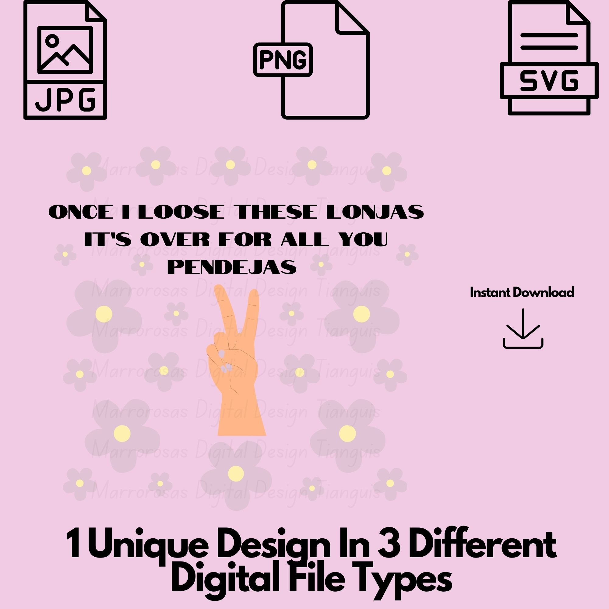 If you are looking for an authentic, original, creative Latin women inspired digital design then this file is for you. Once I Loose These Lonjas is a very funny latin inspired saying created to be a very original digital design/art that can be used in many different ways. Great for gifting either him or her. This digital design product comes in 3 different DIGITAL file types (PNG,JPG, SVG) to accommodate any of your needs. Files are resizable and printable!
