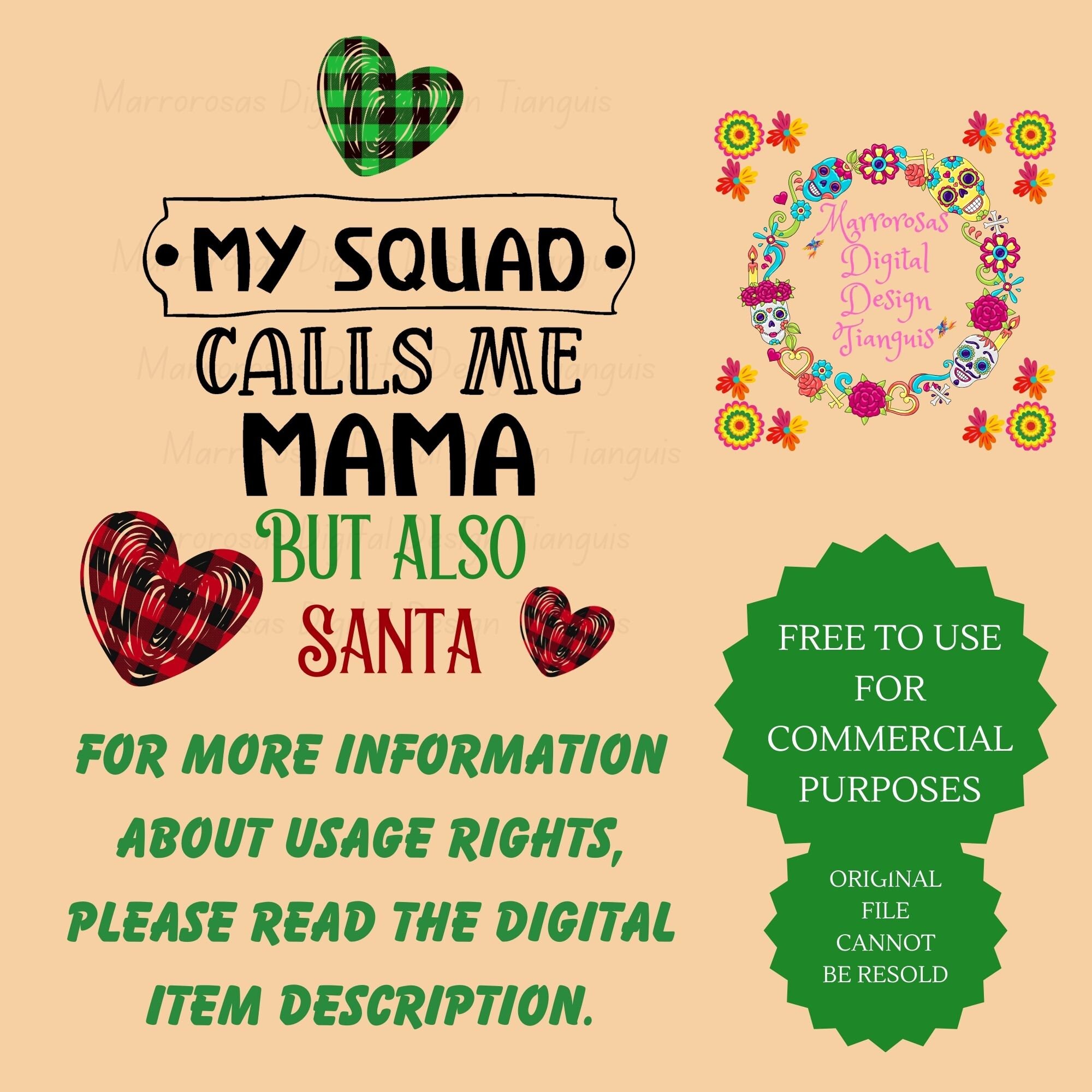 If you are looking for an authentic, colorful, and cute Christmas Mom inspired digital design then this file is for you. My squad calls me Mom is a very cute, colorful, and original digital design/art that can be used in many different ways. Great for gifting either him or her. This digital design product comes in 3 different DIGITAL file types (PNG,JPG, SVG) to accommodate any of your needs. Files are resizable and printable!