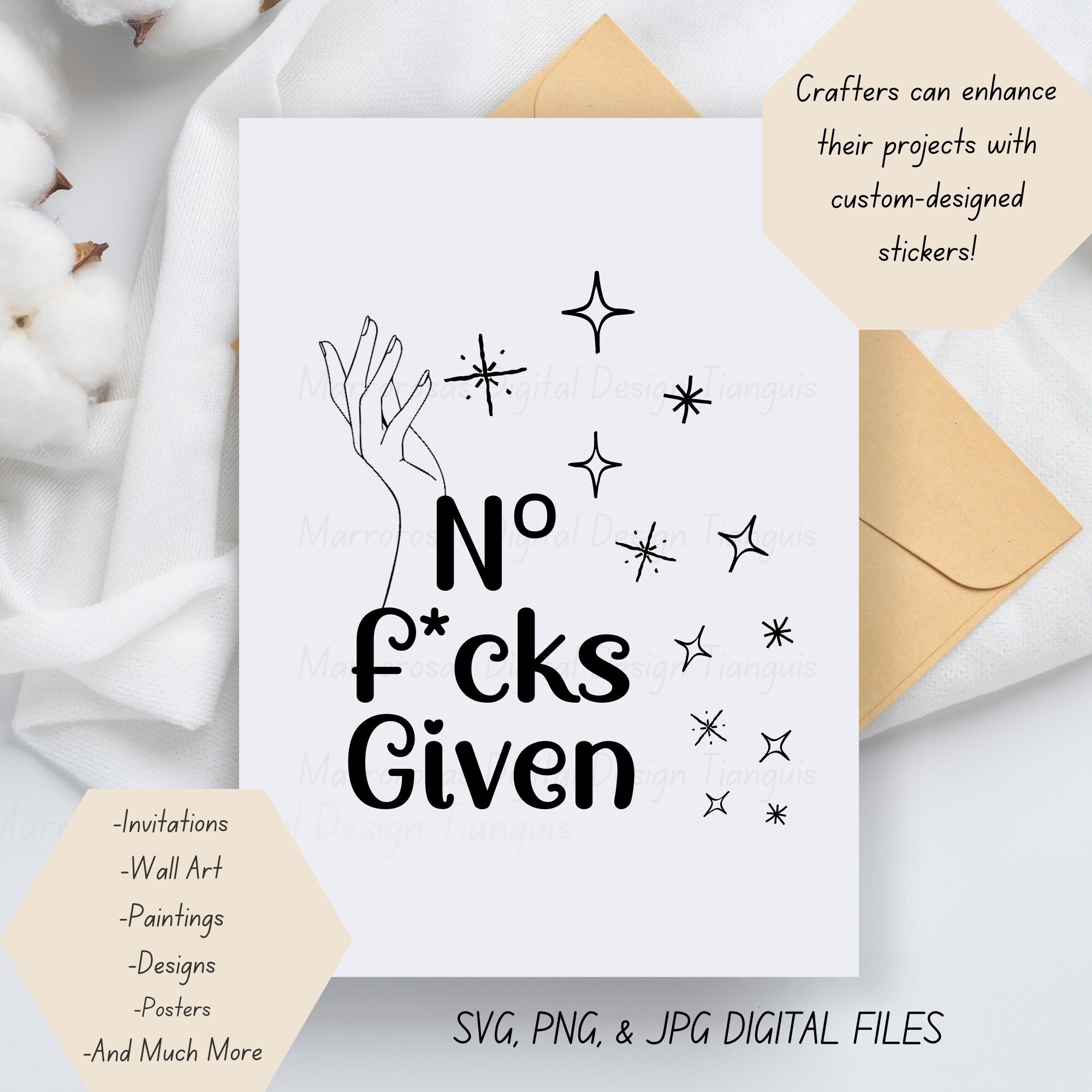 If you are looking for an authentic and original Motivational quote inspired digital design then this file is for you. No Fucks Given is an adorable cared for Motivational inspired design which represents the admiration towards ourselves which is created to be a very original digital design/art that can be used in many different ways. Great for gifting either him or her. This digital design product comes in 3 different DIGITAL file types (PNG,JPG, SVG) to accommodate any of your needs. Files are resizable and printable!
