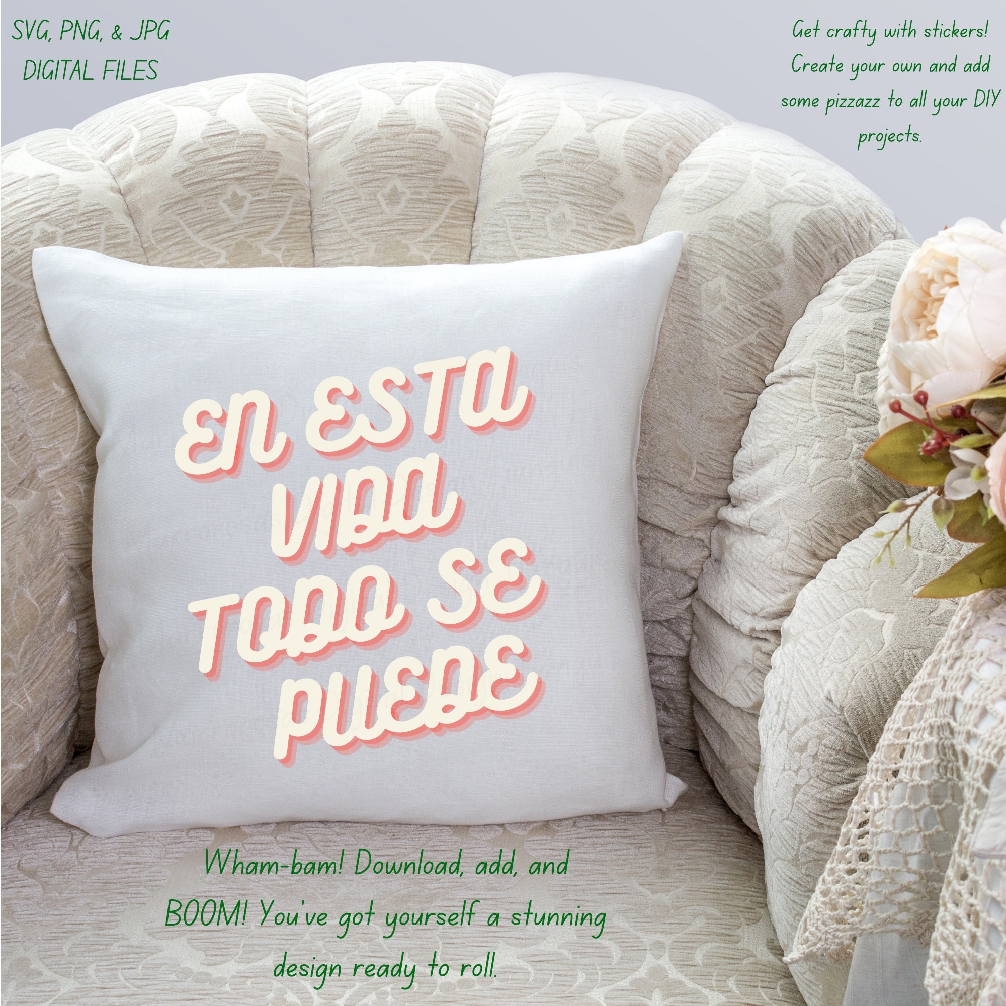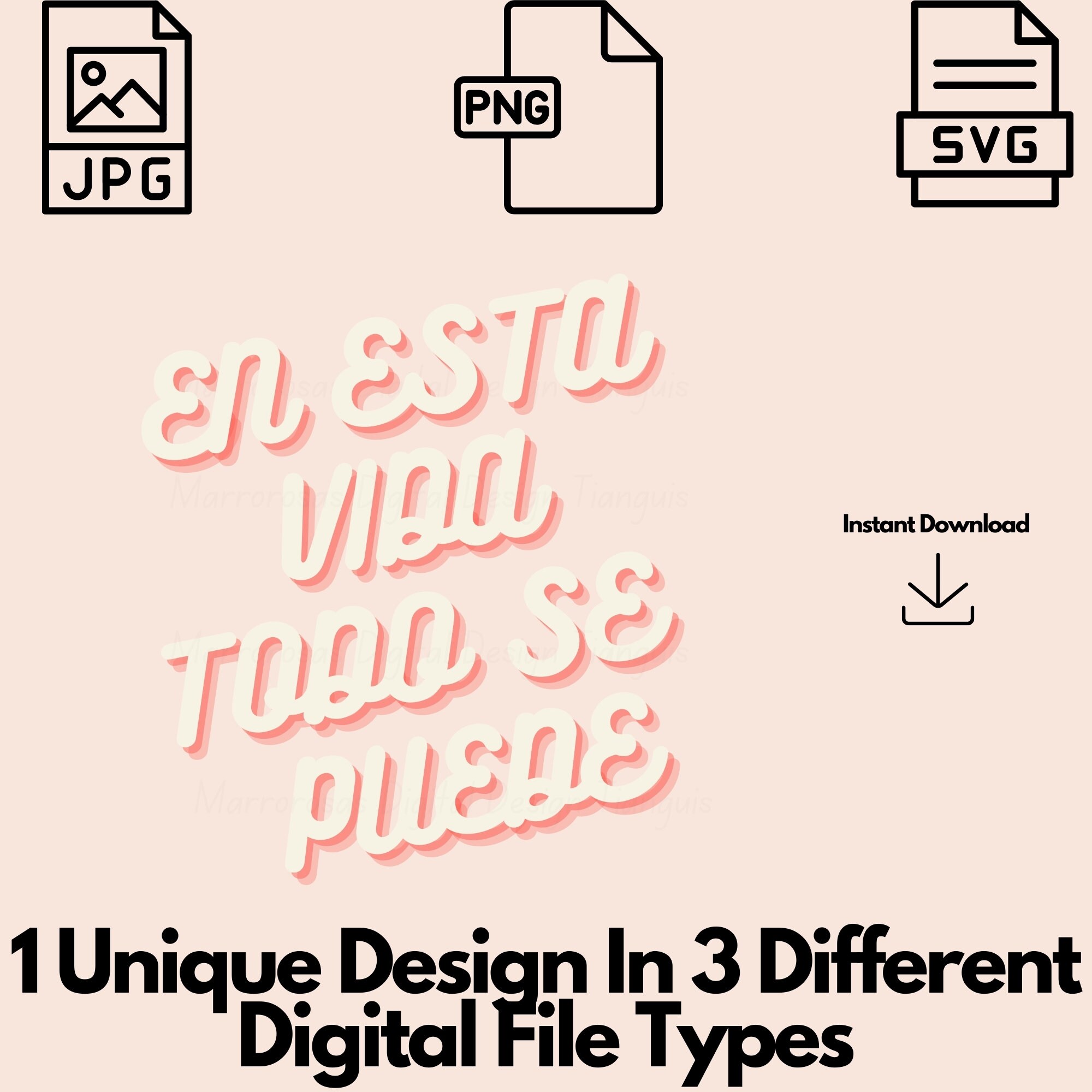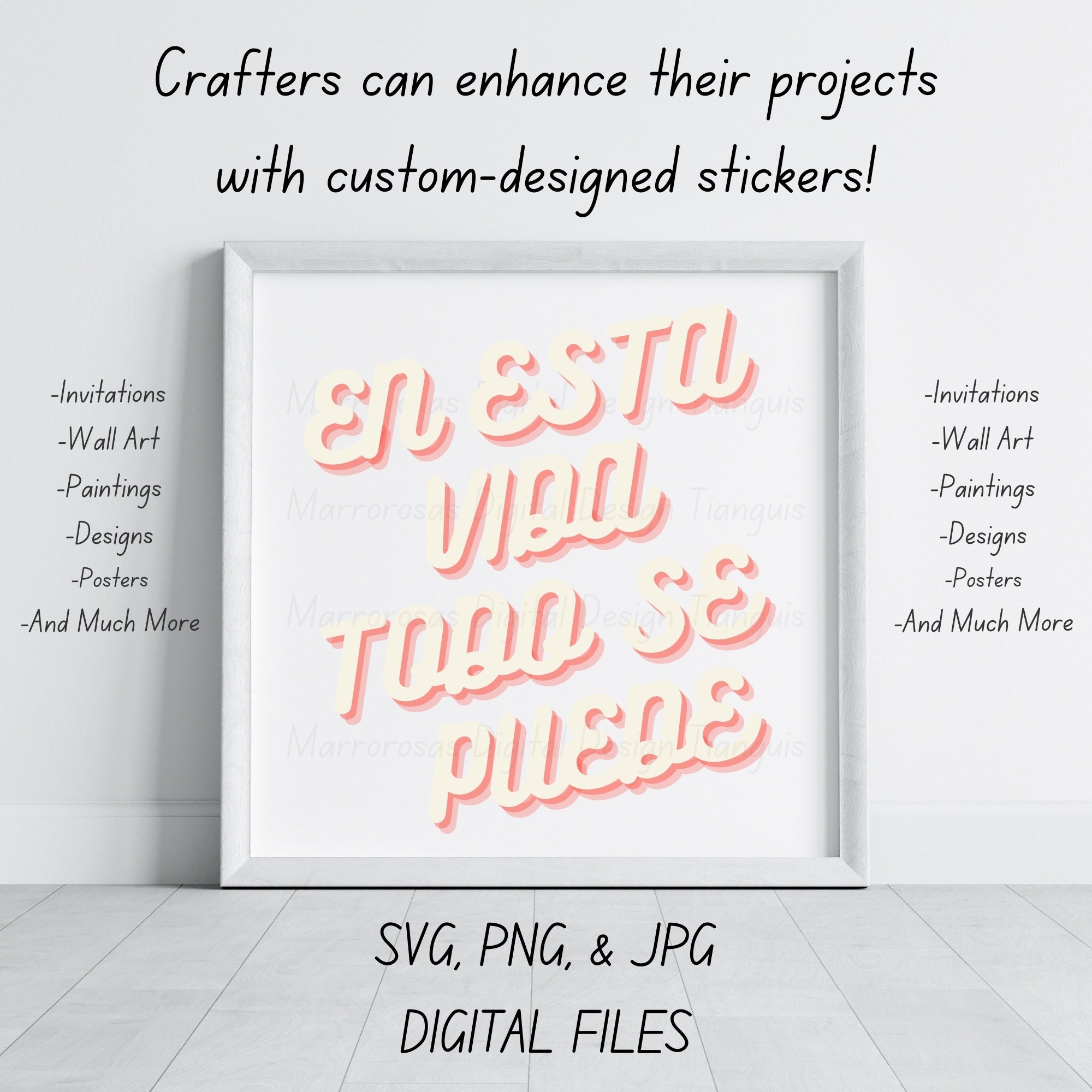 If you are looking for an authentic, adorable, colorful and cute Motivational and Inspirational digital design then these files are for you. En esta vida todo se puede is a very common latin saying that simply is very motivational and is used on a daily basis and is also a lovable digital design/art that can be used in several different crafting/printing ways. Great for gifting either him or her. This digital design product comes in 3 different DIGITAL file types sizes (PNG,JPG,SVG) to accommodate any of your needs. Files are resizable and printable!