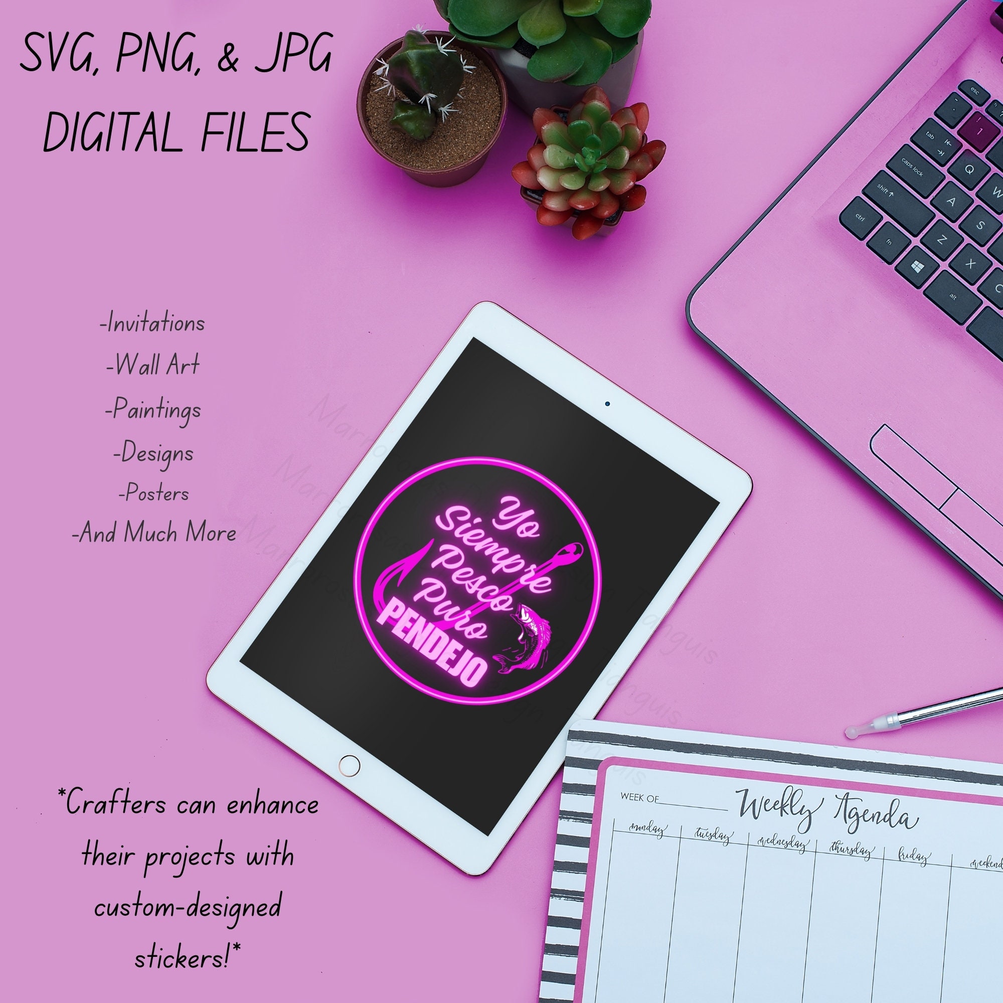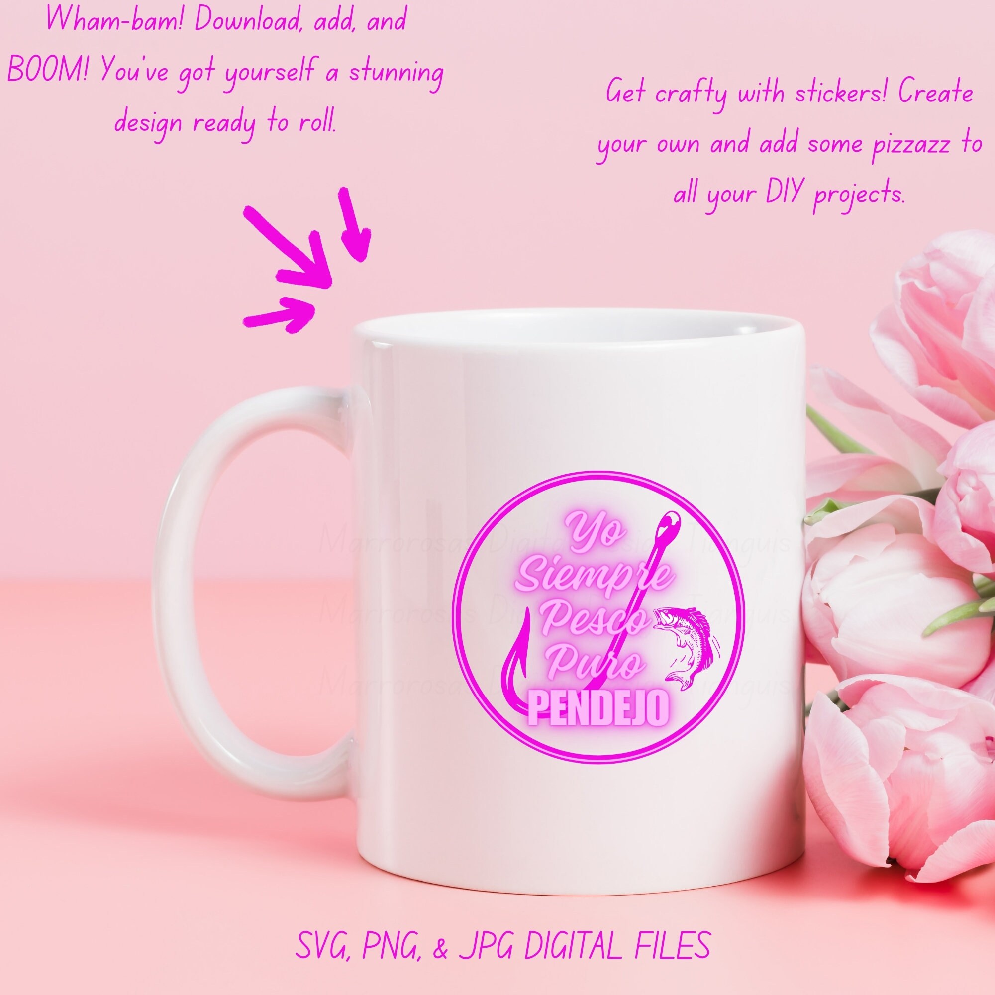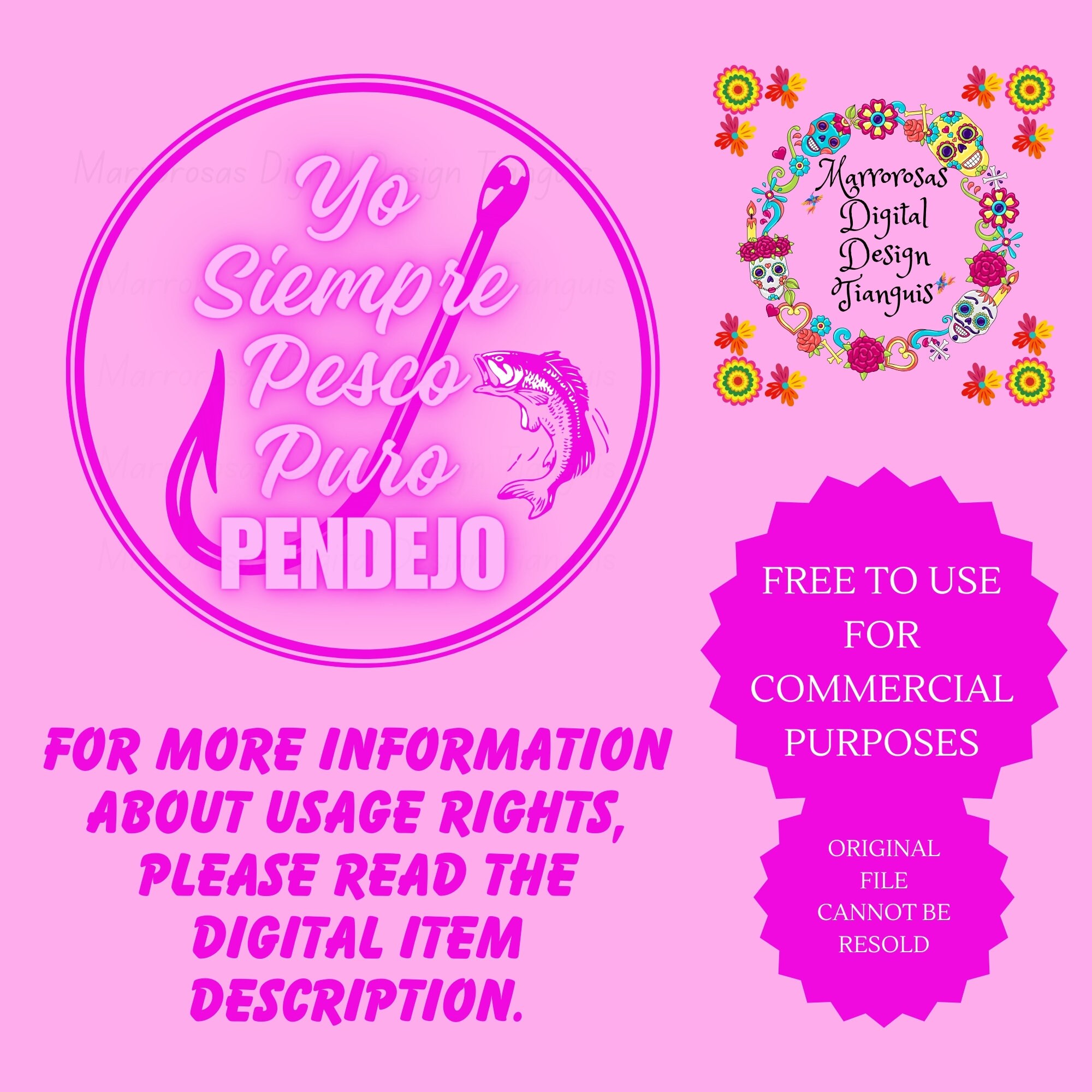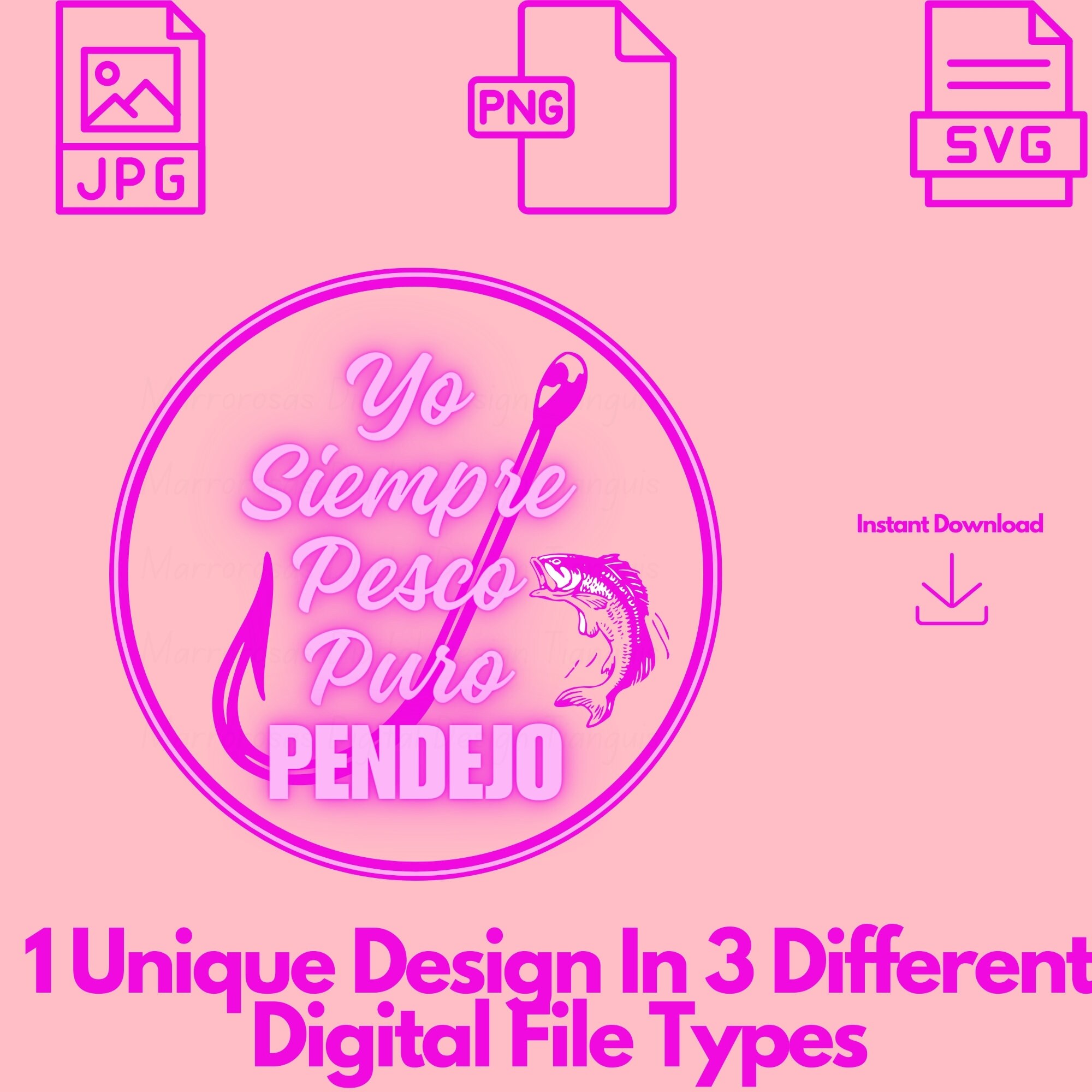 If you are looking for an authentic, funny, colorful and cute Mexican Latina Saying digital design then these files are for you. Yo Siempre Pesco Puro Pendejo is a very funny common latin saying that is used on a daily basis and is also a very unique colorful digital design/art that can be used in several different crafting/printing ways. Great for gifting either him or her. This digital design product comes in 3 different DIGITAL file types sizes (PNG,JPG,SVG) to accommodate any of your needs. Files are resizable and printable!