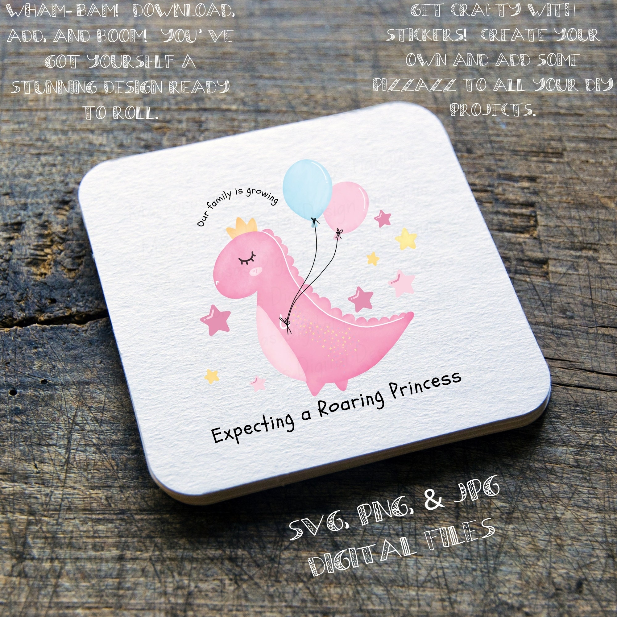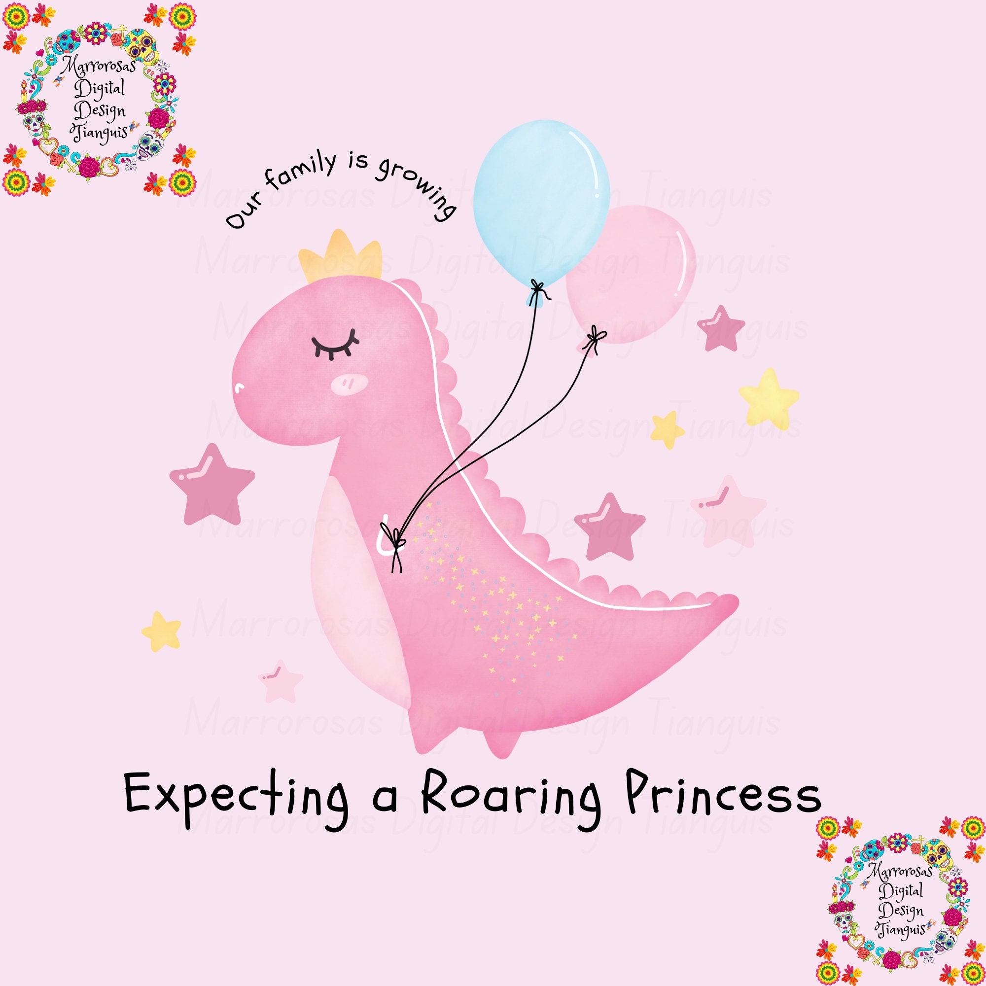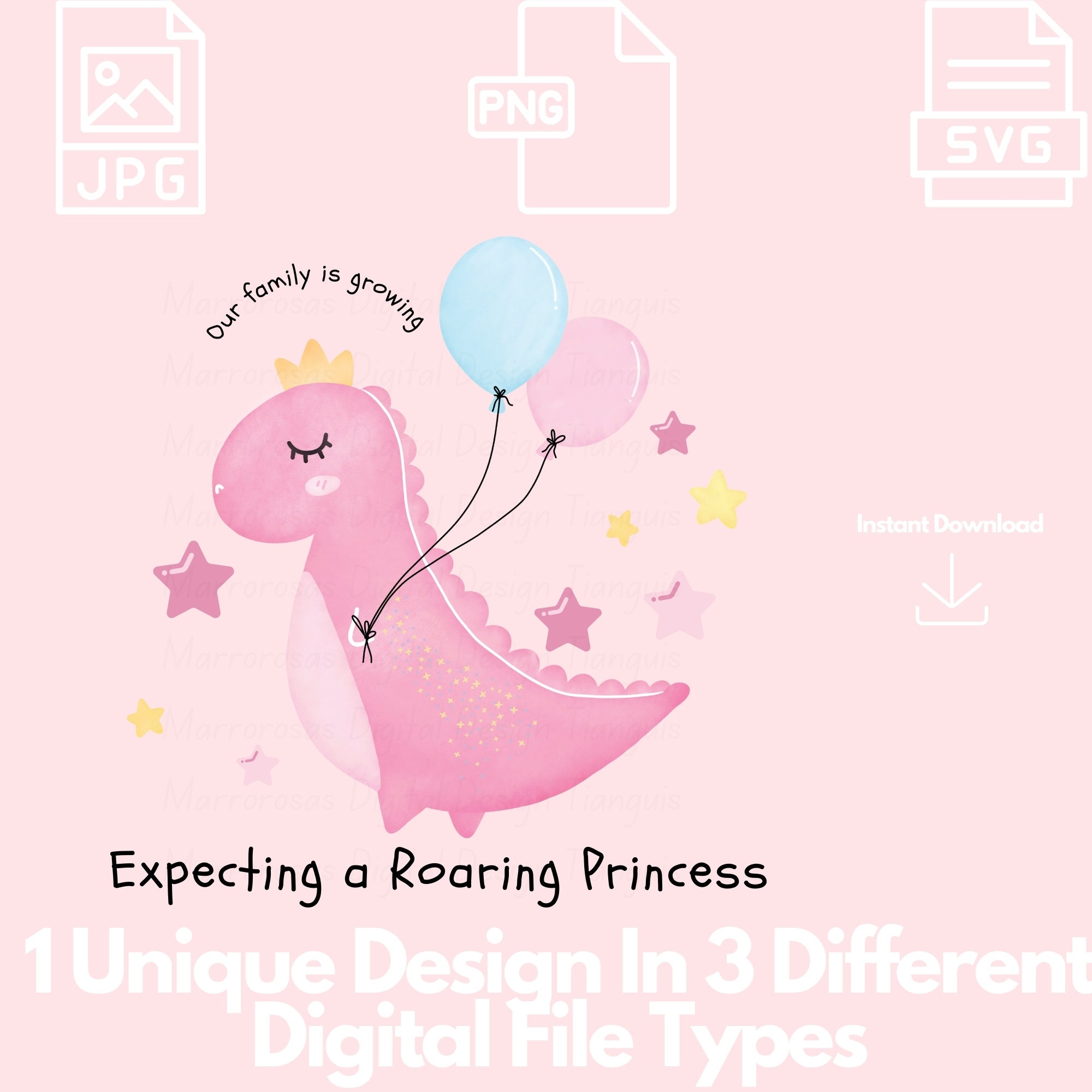 Expecting a Roaring Princess Dinosaur SVG PNG JPG (Digital File)