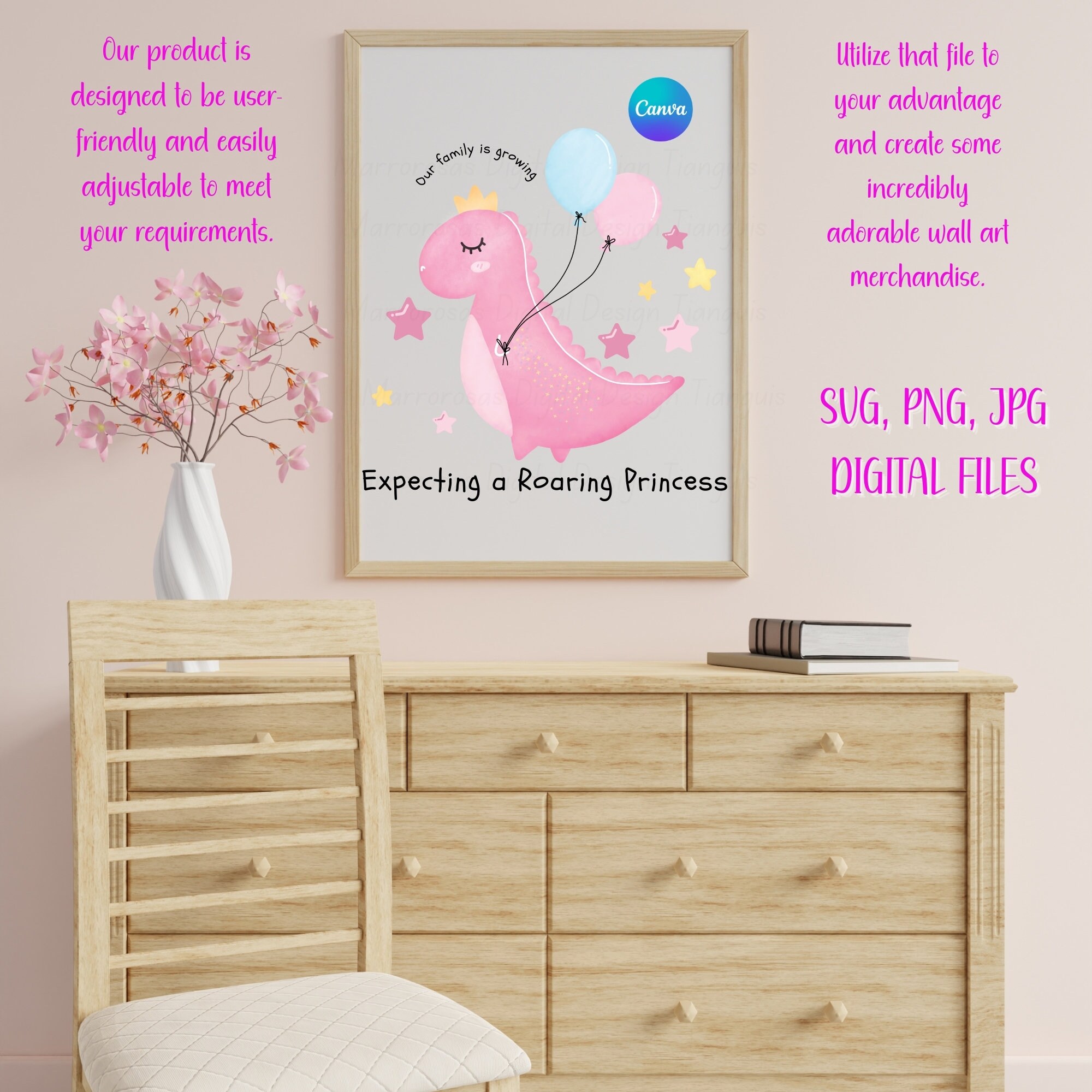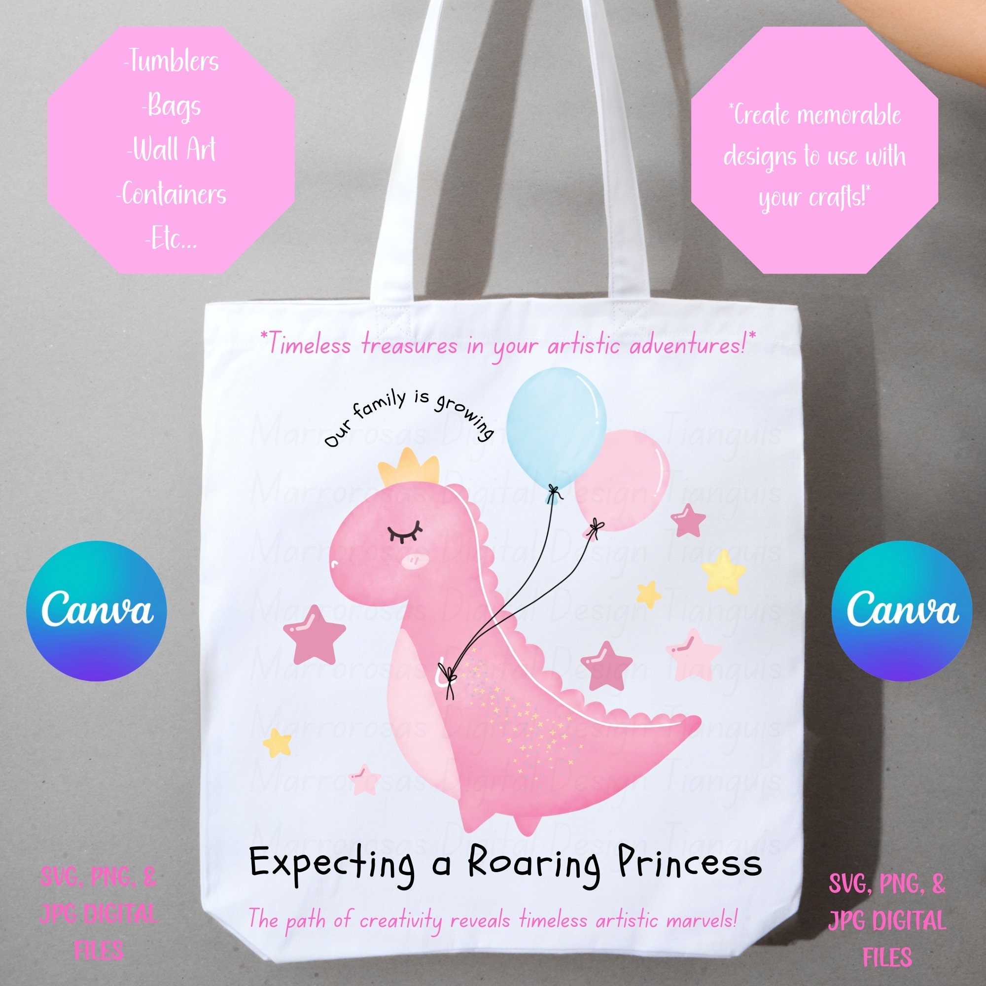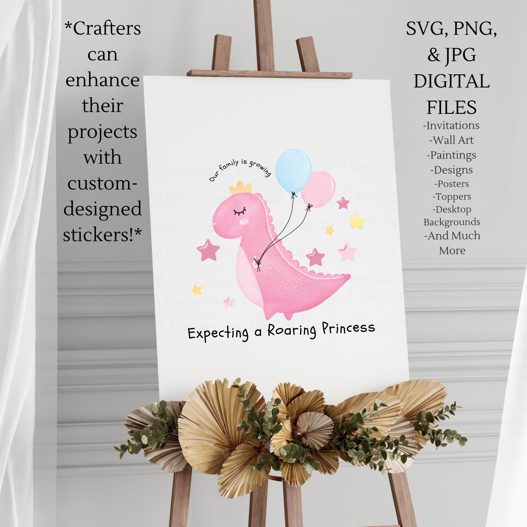 Expecting a Roaring Princess Dinosaur SVG PNG JPG (Digital File)