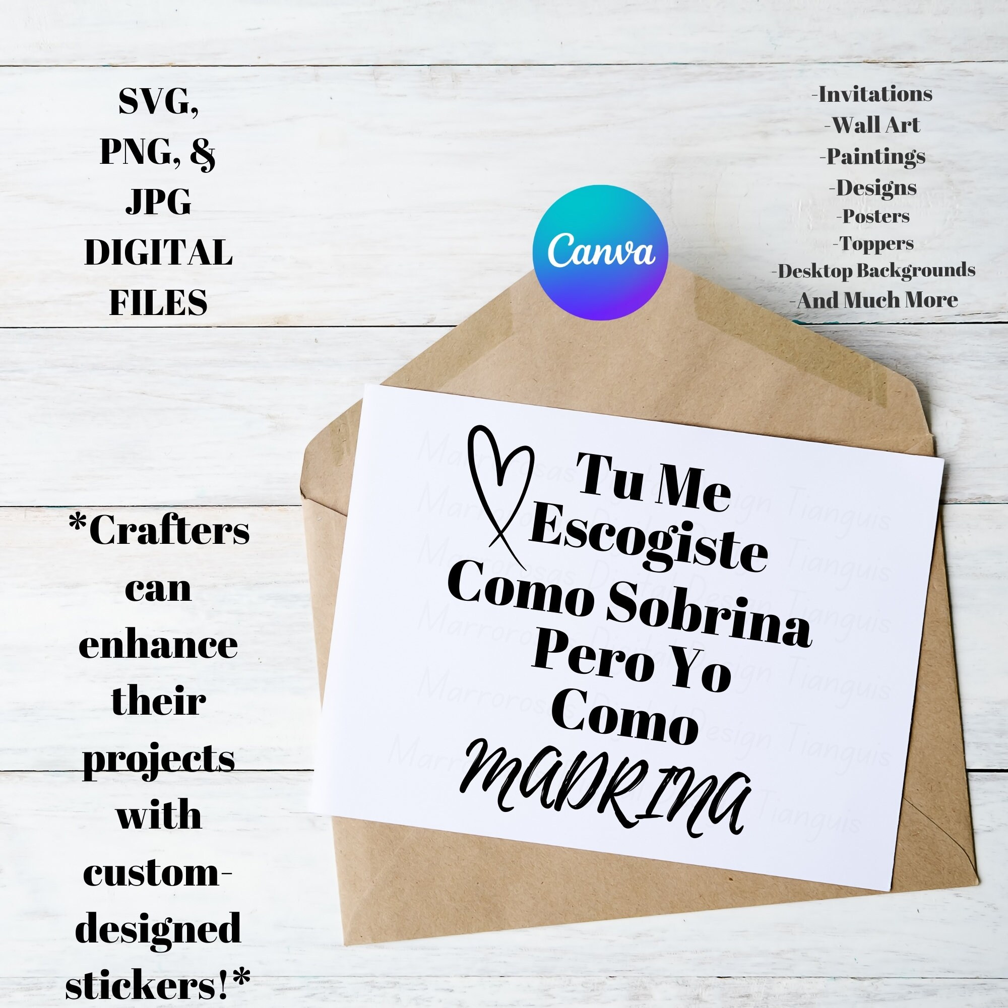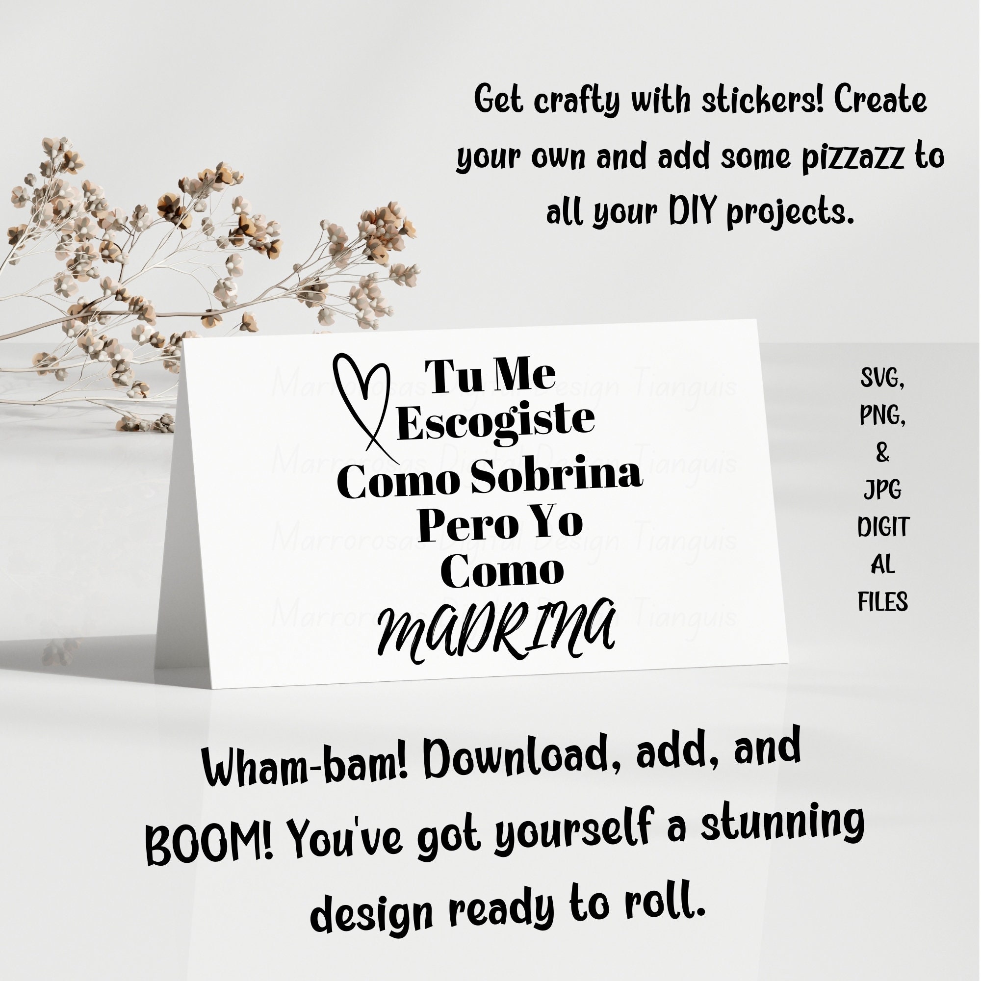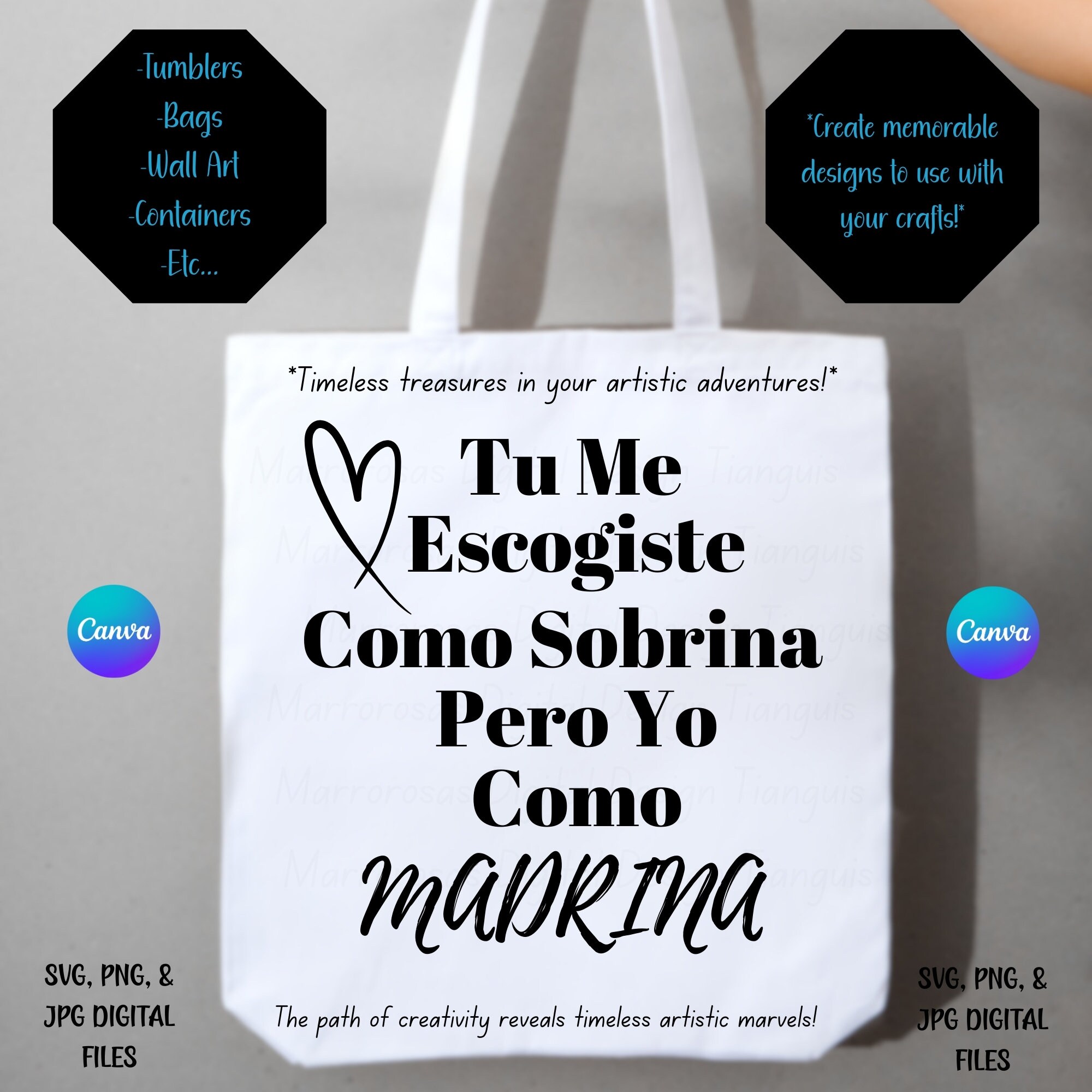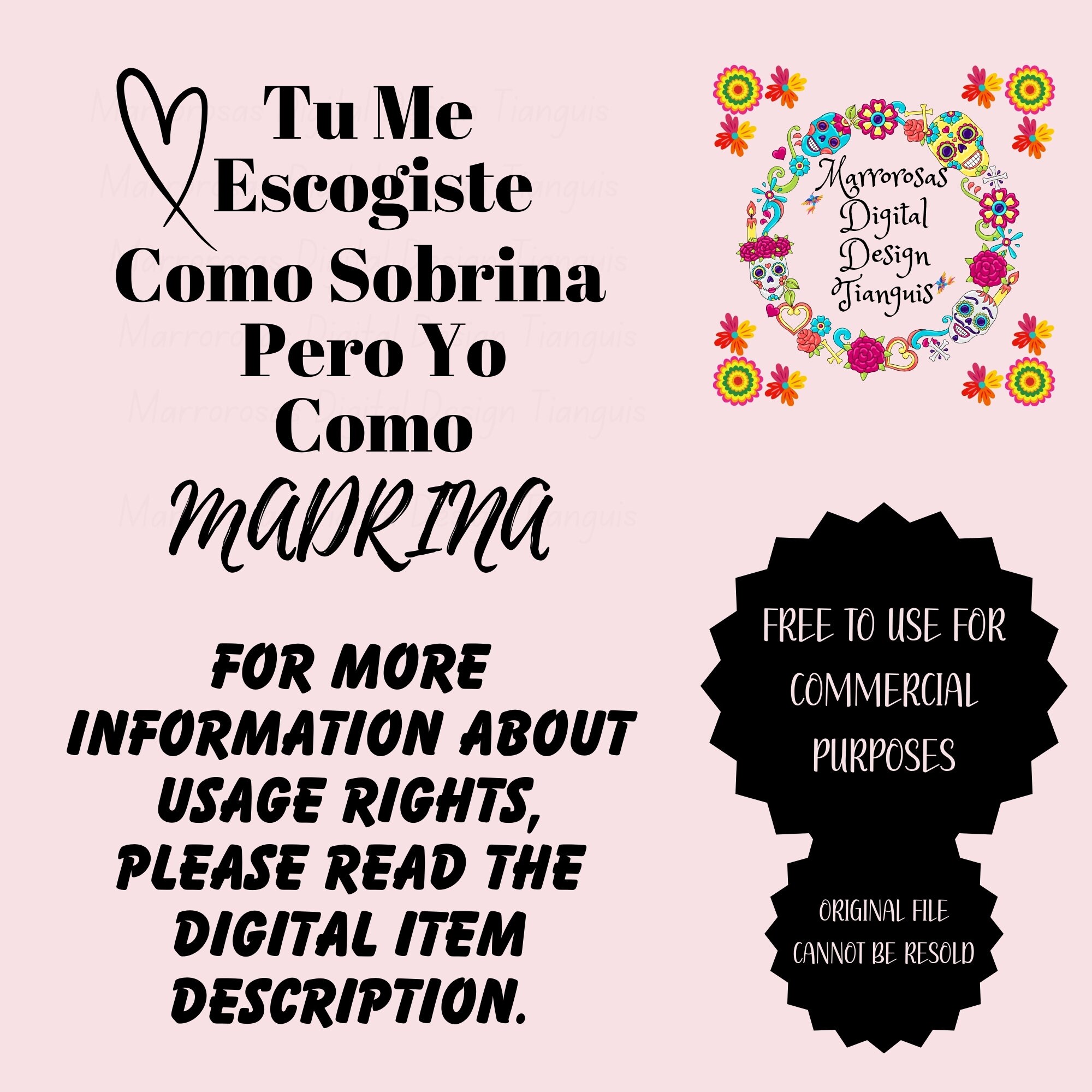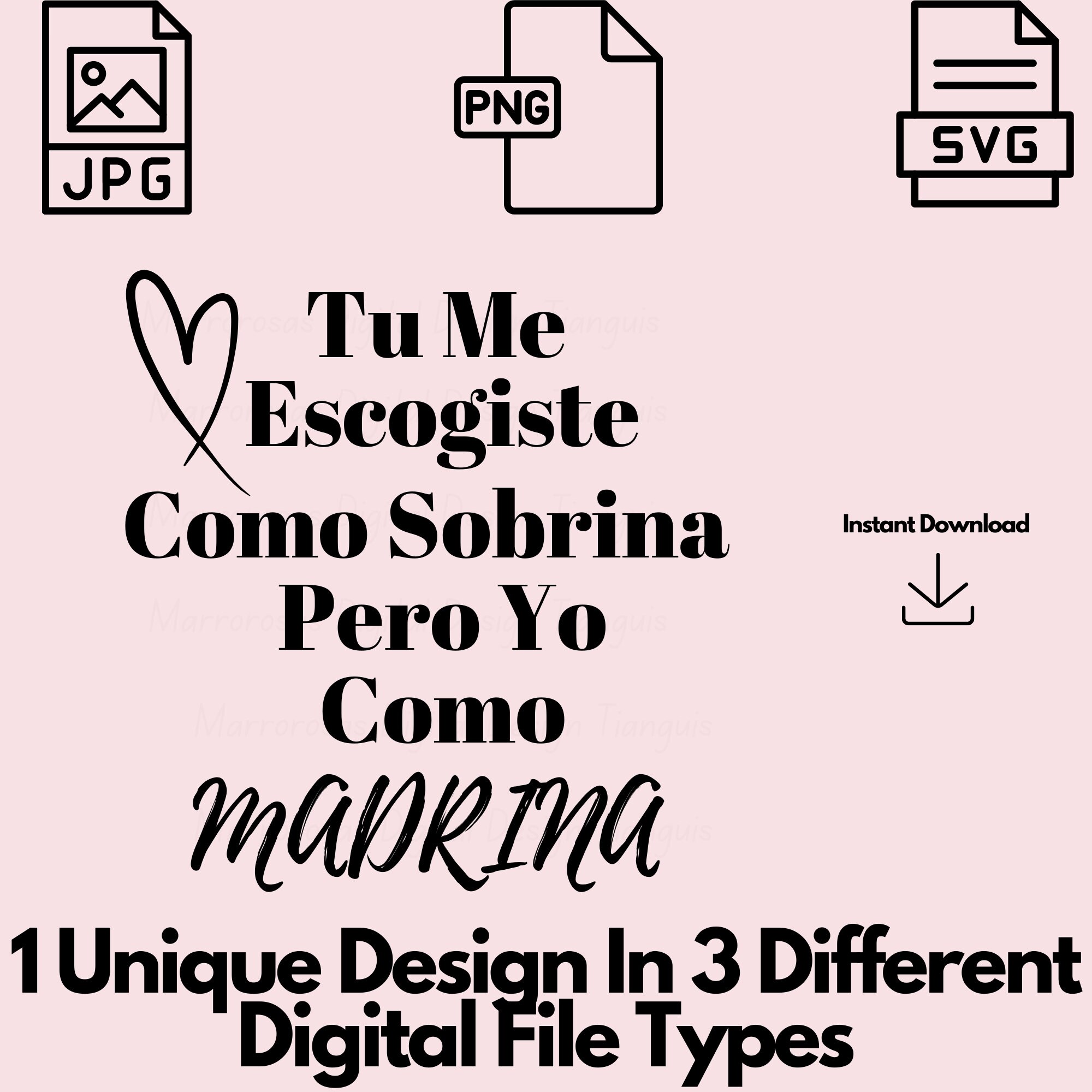 If you are looking for an Authentic, Adorable, Colorful and Very Esthetic Godmother/Madrina gift idea then this digital design is for you. Tu Me Escogiste Madrina is a very adorable way to ask friends or family to be your children Godmother/Madrina used on a daily basis digital design/art that can be crafted in several different ways. Great for gifting either him or her. This digital design product comes in 3 different DIGITAL file types sizes (PNG,JPG,SVG) to accommodate any of your needs. Files are resizable and printable!