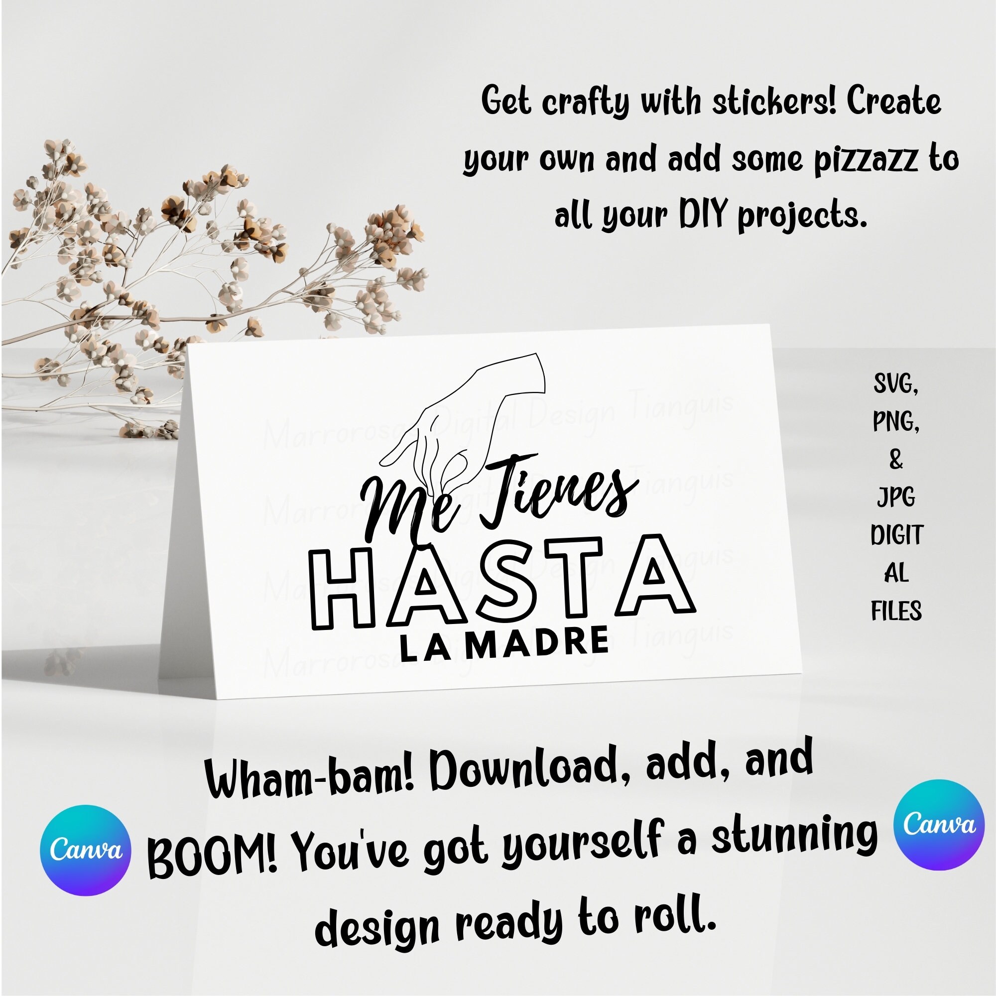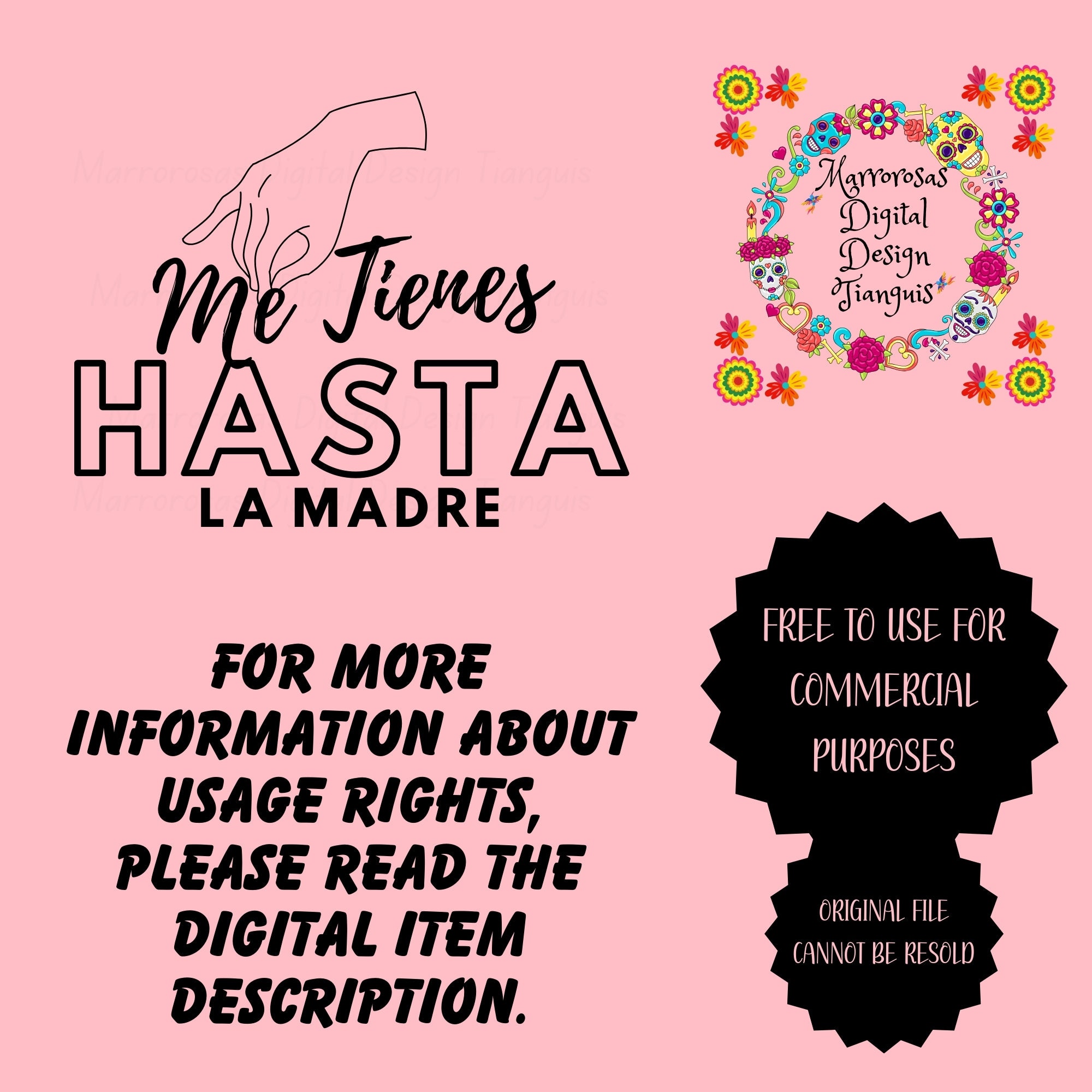 If you are looking for an authentic, adorable, and very esthetic Mexican Latin Saying gift idea then this digital design is for you. Me tienes hasta la madre is a very funny latin saying used on a daily basis on our Latin household by every Latin mother. This digital design/art can be crafted in several different ways. Great for gifting either him or her. This digital design product comes in 3 different DIGITAL file types sizes (PNG,JPG,SVG) to accommodate any of your needs. Files are resizable and printable!