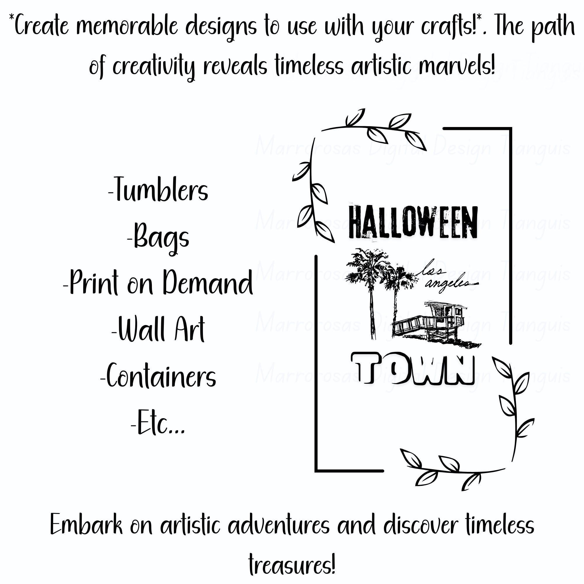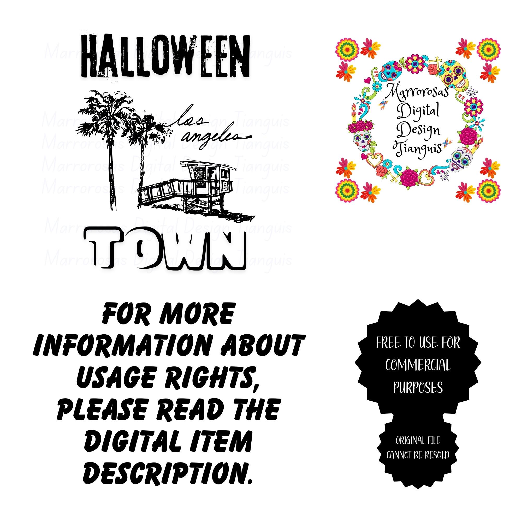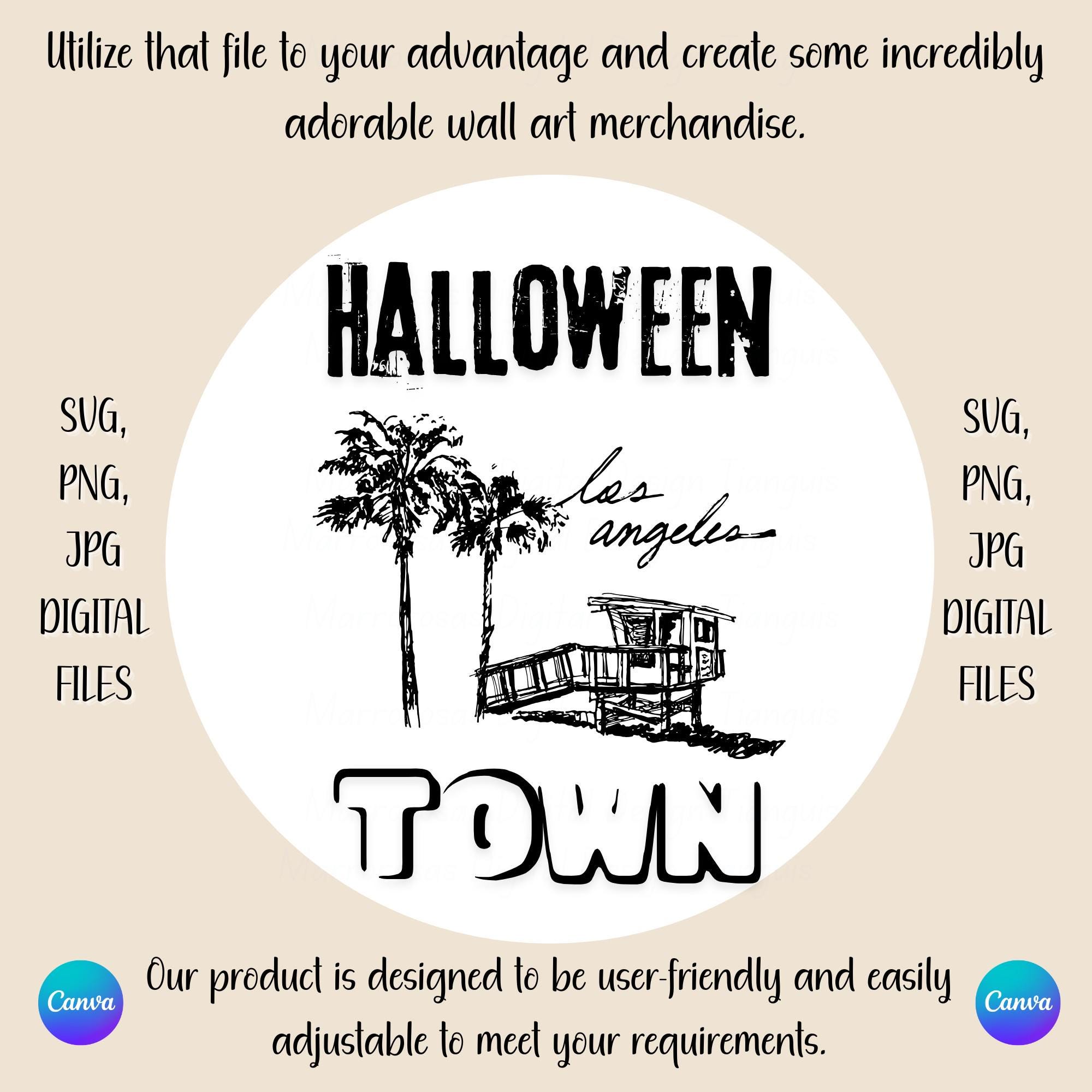 If you are looking for an authentic, creative, and cute design then this digital design file is for you. Halloween Town (Los Angeles) is a Holiday (Halloween Era) that simply is used by our fellow friends, family, etc and is also a cute funny digital design/art that can be used in several different crafting/printing ways. Great for gifting either him or her. This digital design product comes in 3 different DIGITAL file types sizes (PNG,JPG,SVG) to accommodate any of your needs. Files are resizable and printable!