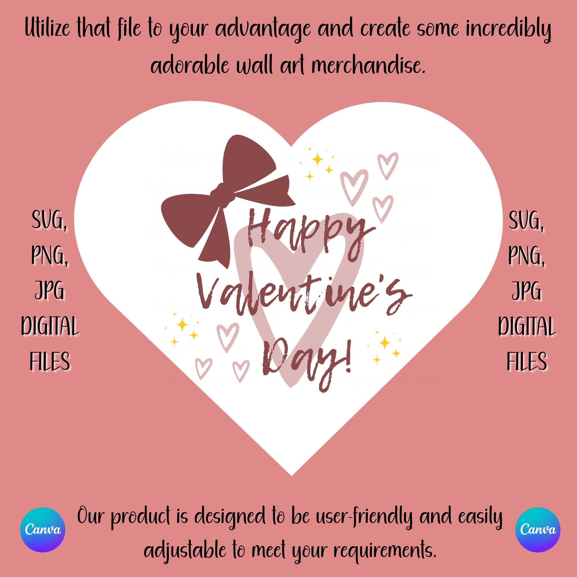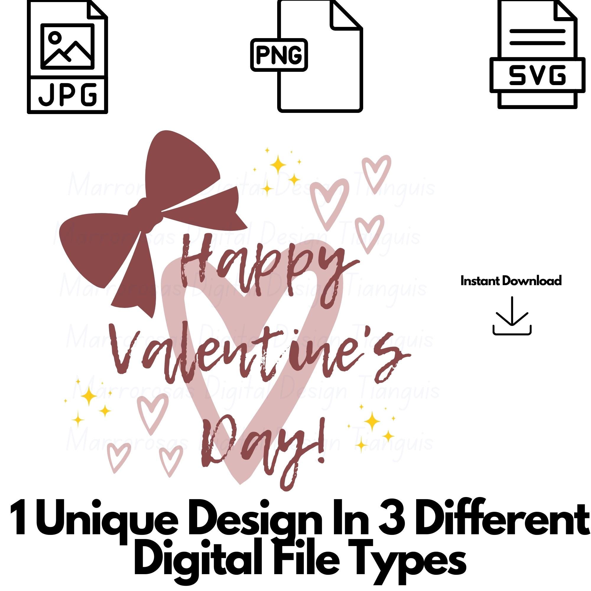If you are looking for an authentic, creative, and cute design then this digital design file is for you. Happy Valentine's Day Bow is a Holiday (Valentine's) that simply is used by our fellow friends, family, etc and is also a cute funny digital design/art that can be used in several different crafting/printing ways. Great for gifting either him or her. This digital design product comes in 3 different DIGITAL file types sizes (PNG,JPG,SVG) to accommodate any of your needs. Files are resizable and printable!