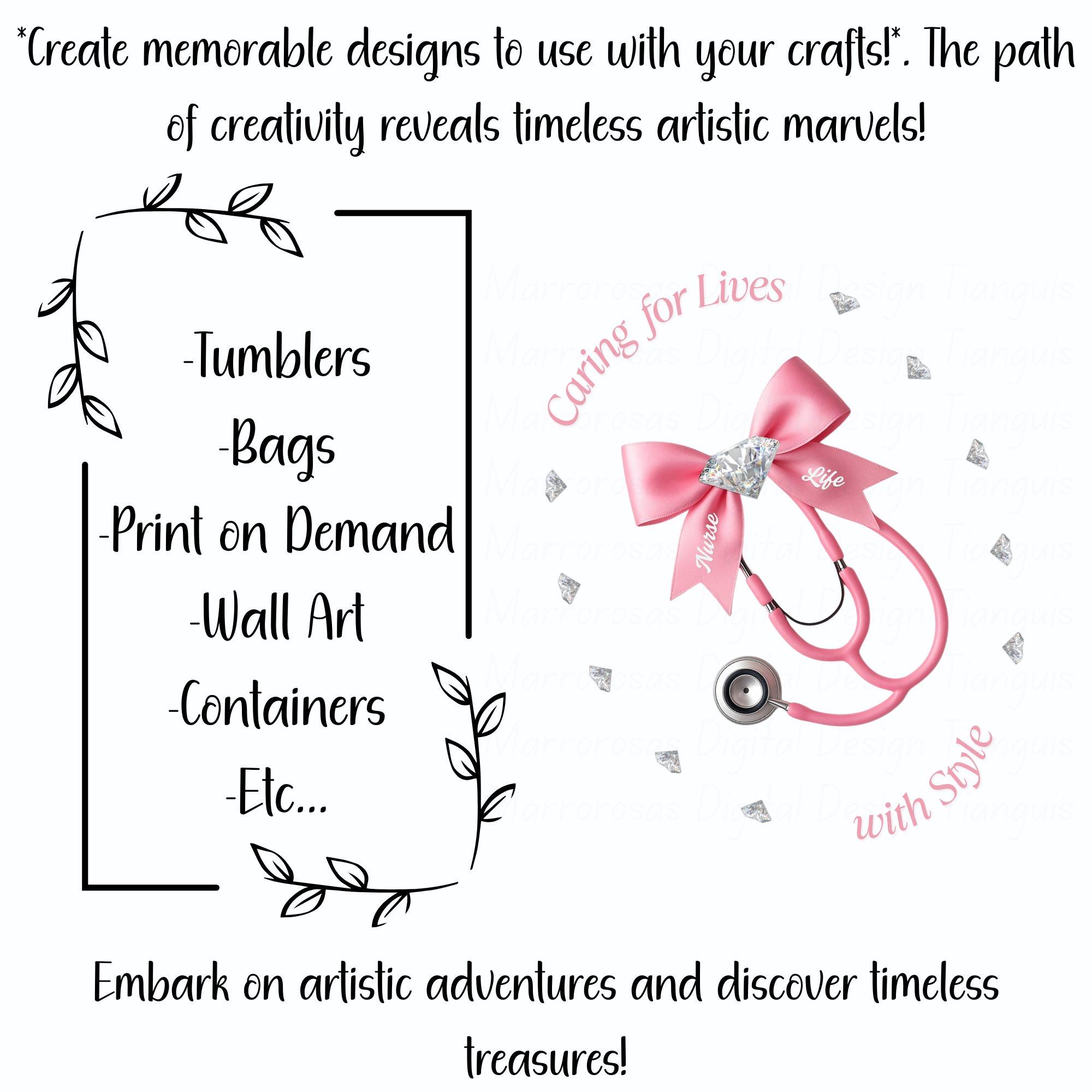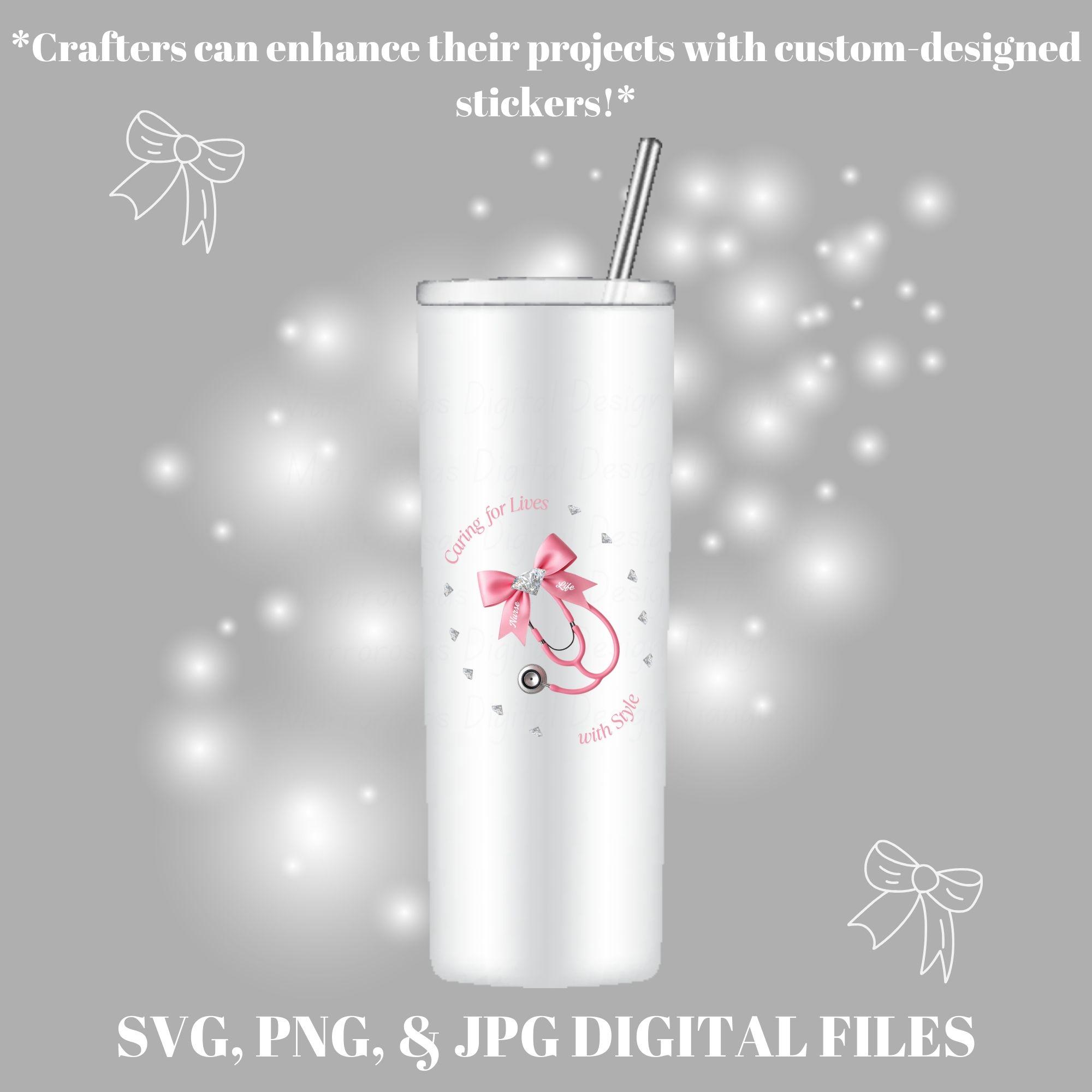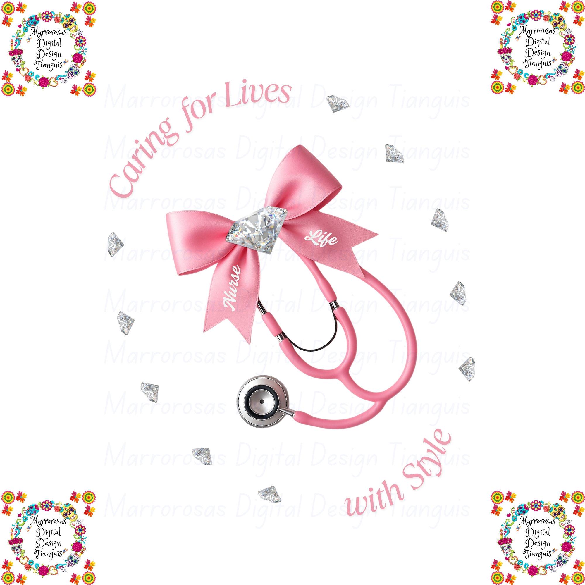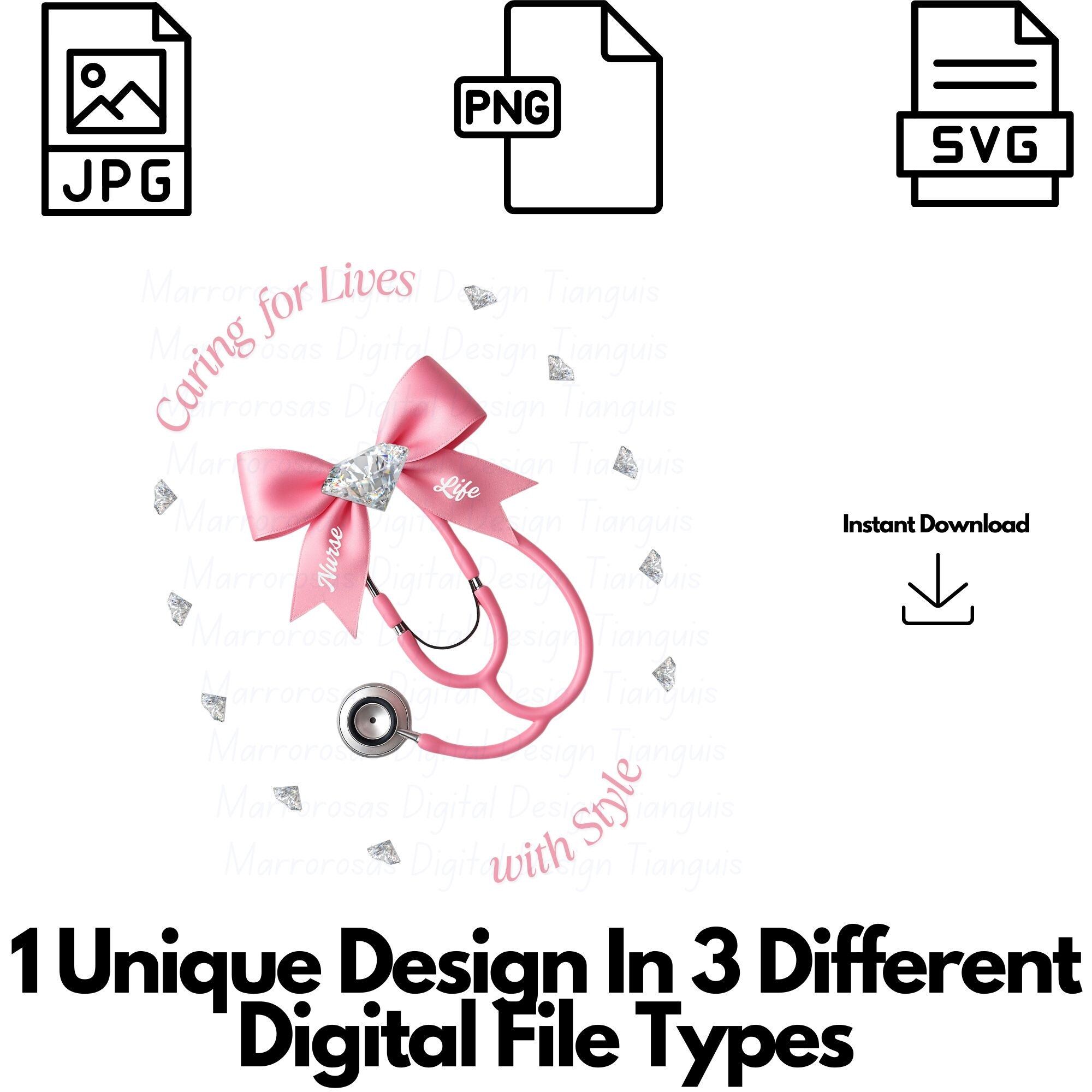 Caring for lives with style svg, nurse svg, stethoscope svg, medical field, pink bow, cancer awareness svg, cancer svg png, diamond, support