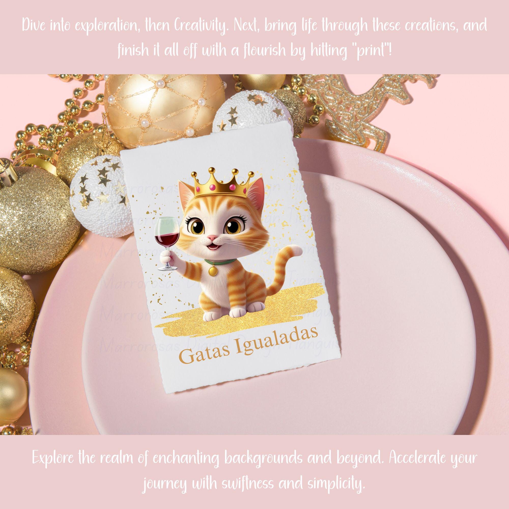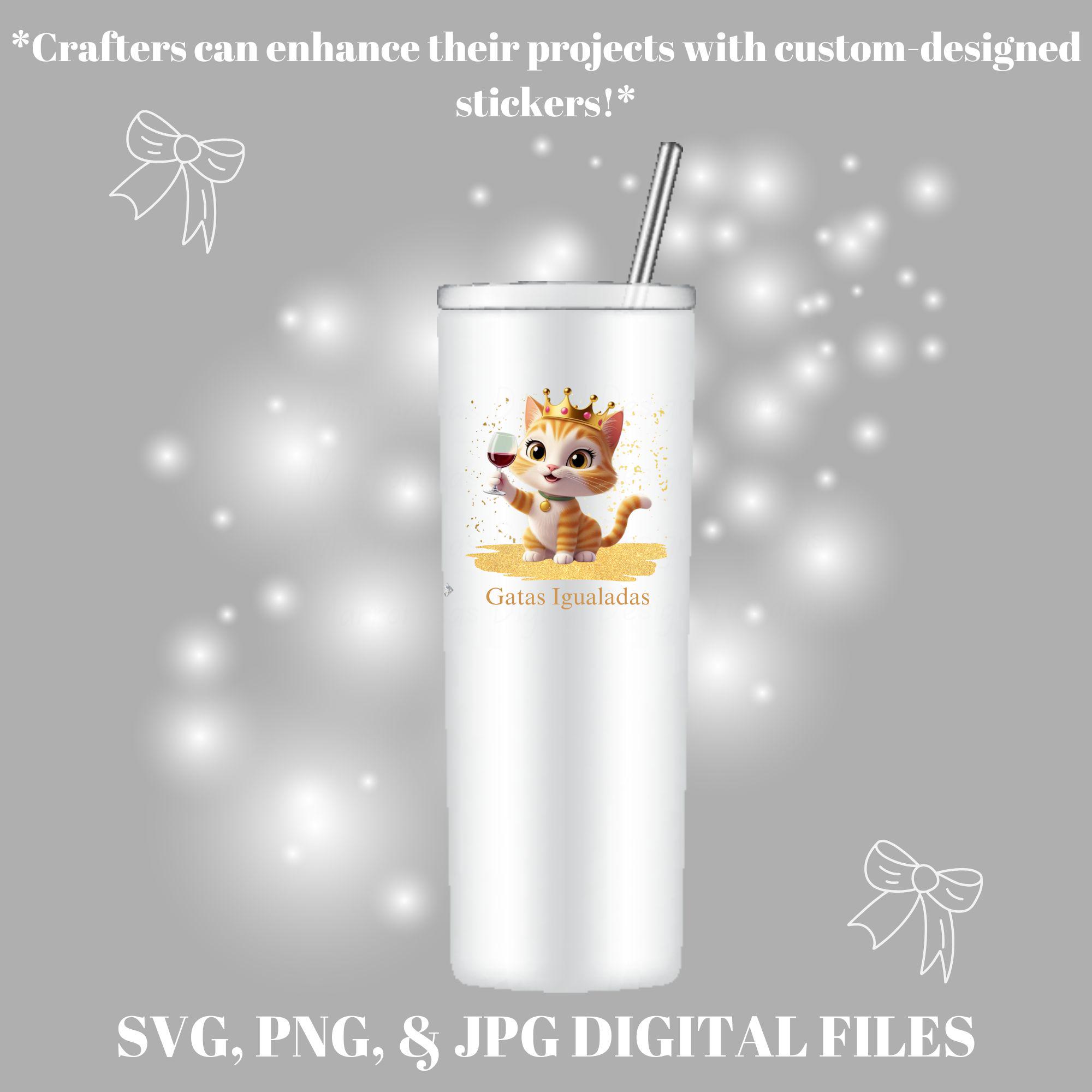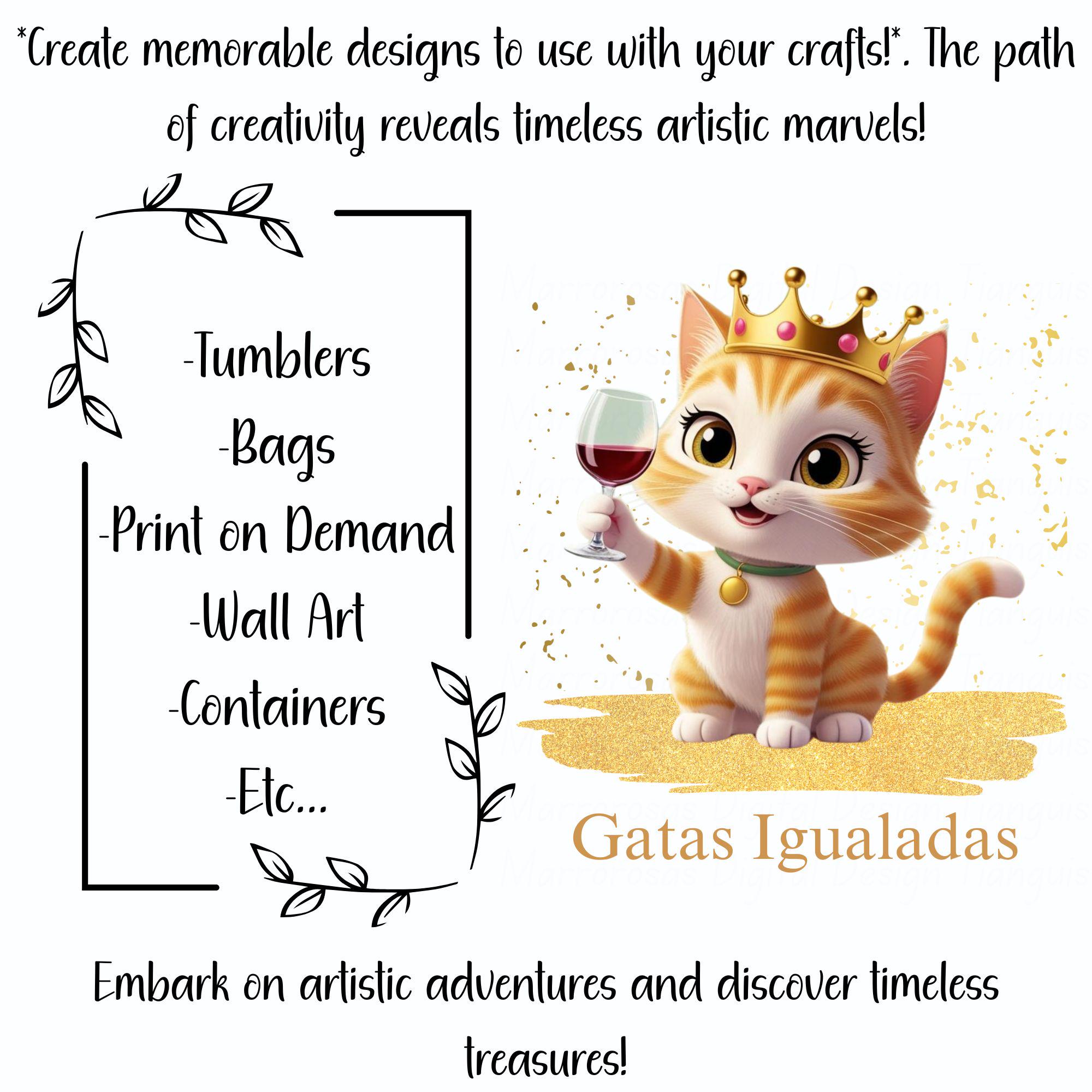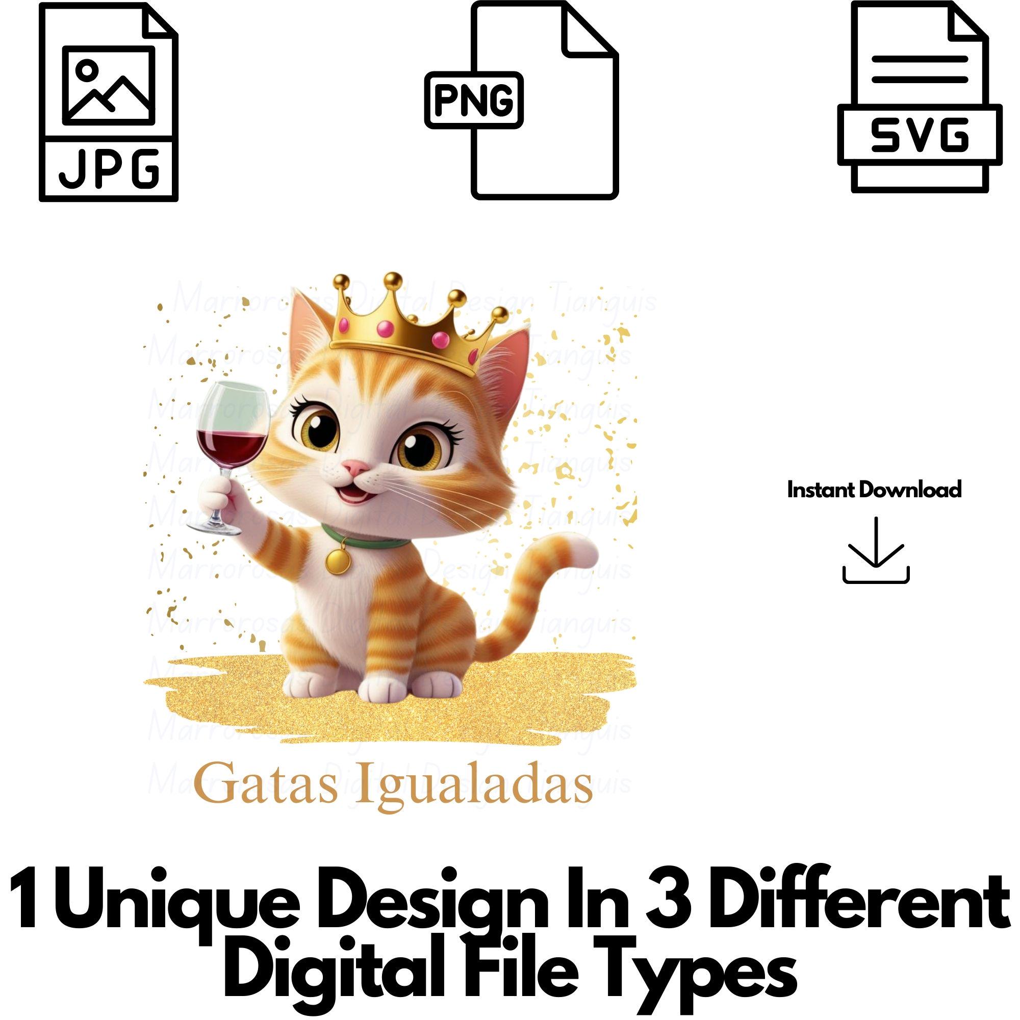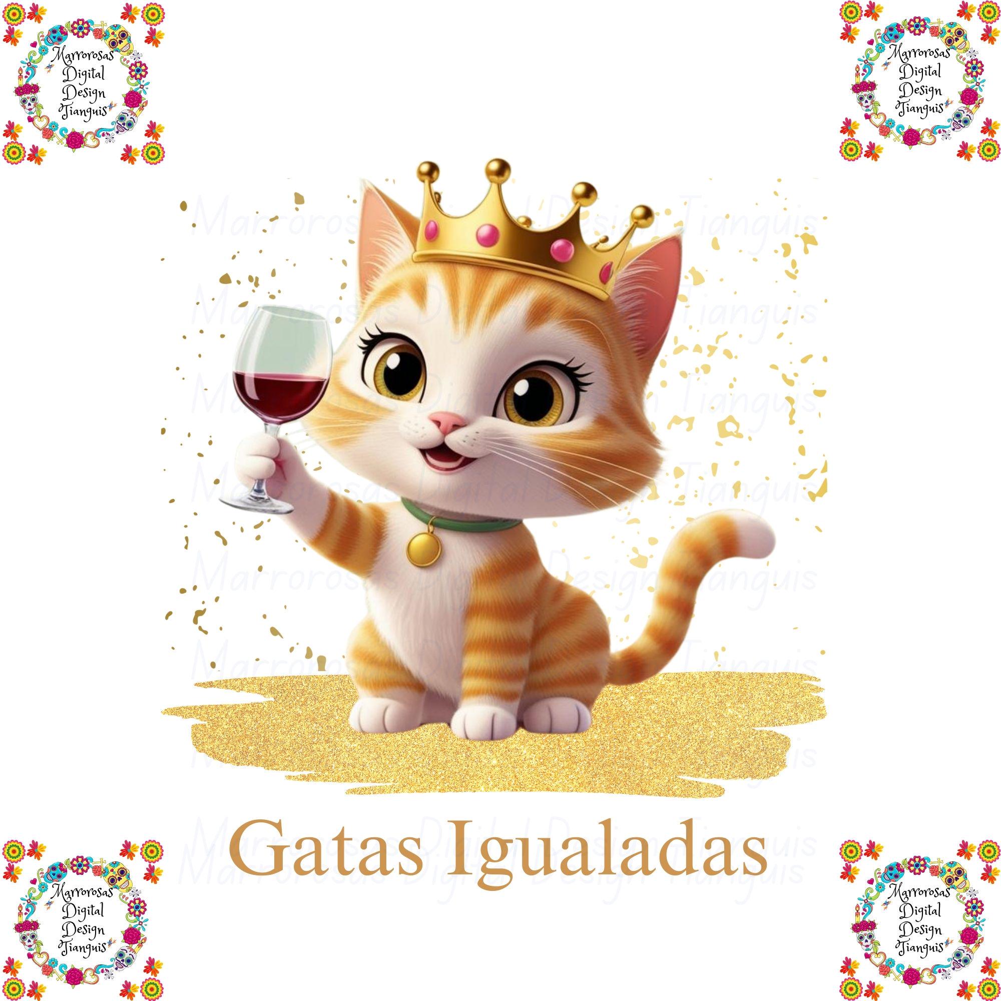 Gatas Igualadas svg, cat svg, Mother's Day, Mother's Day gifts, wine, crown png, mother svg, for her gifts, gata, queen svg, gold and pink