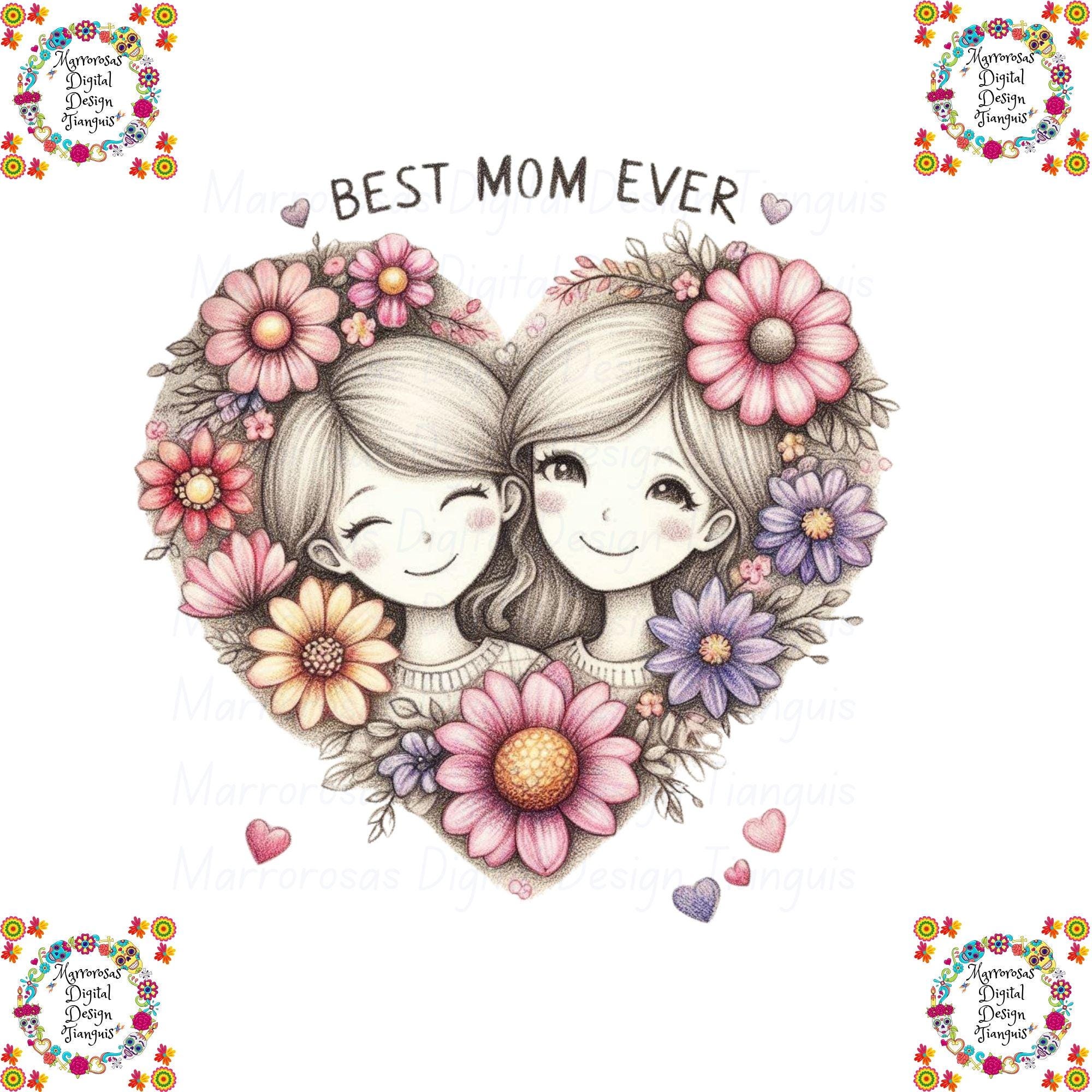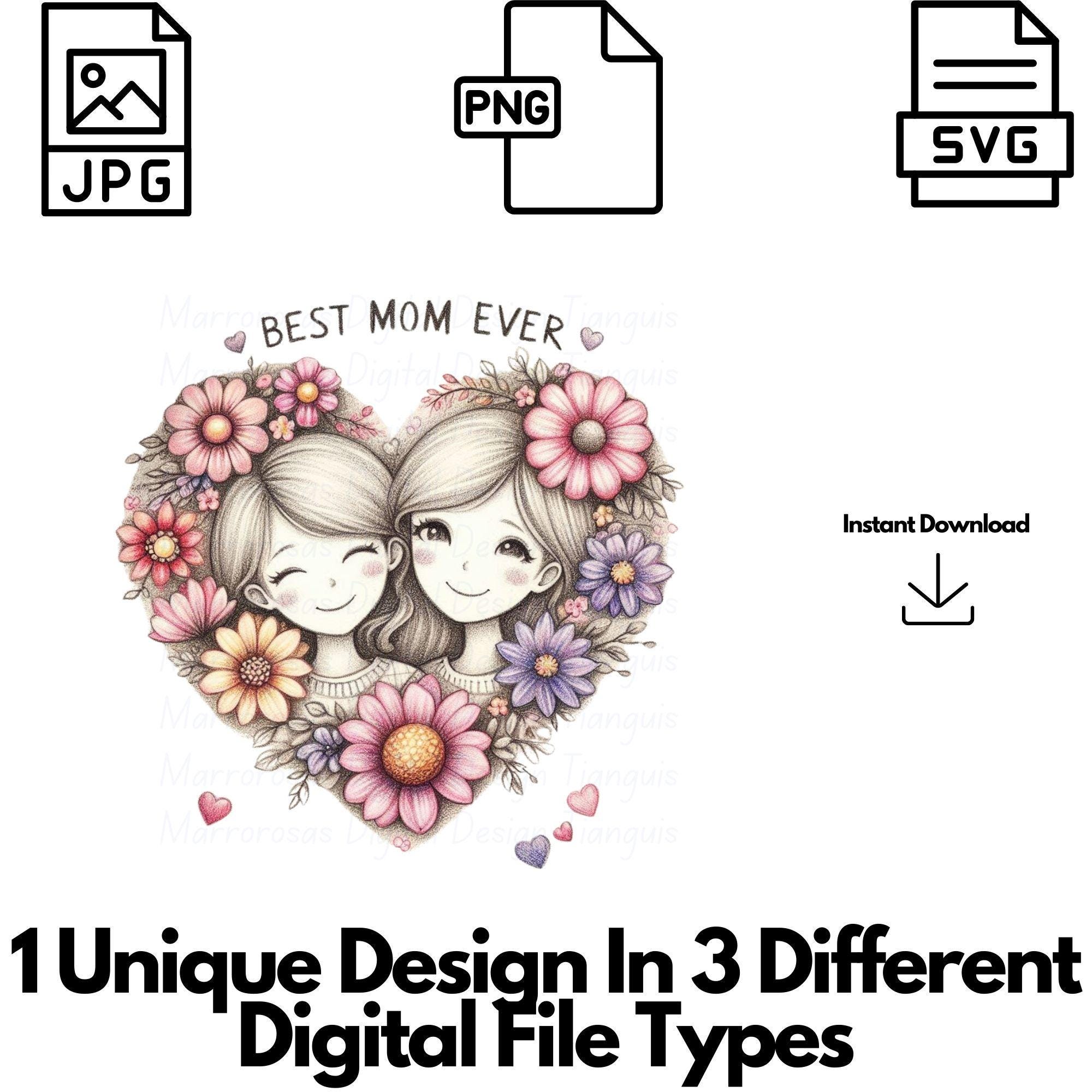 Mother and Daughter Flower Heart, Daughter, Mother's Day, Mother's Day gifts, Gifts for her, Flowers svg, mother svg, heart, best mom ever
