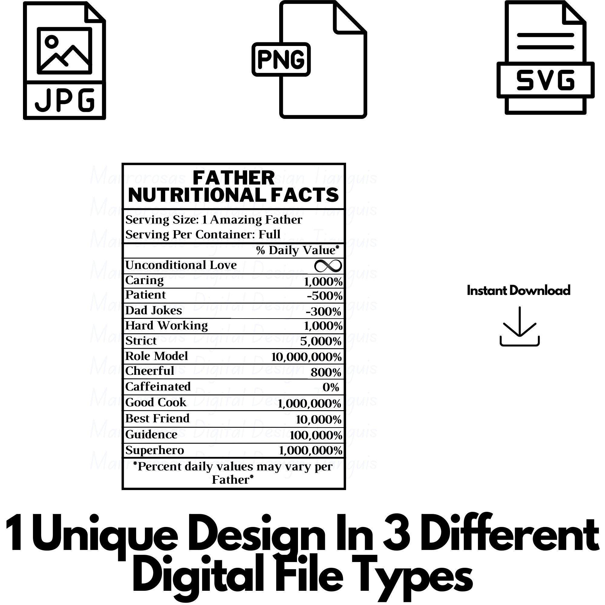 - 1 JPEG Father Nutritional Facts Label File (2000x2000)
