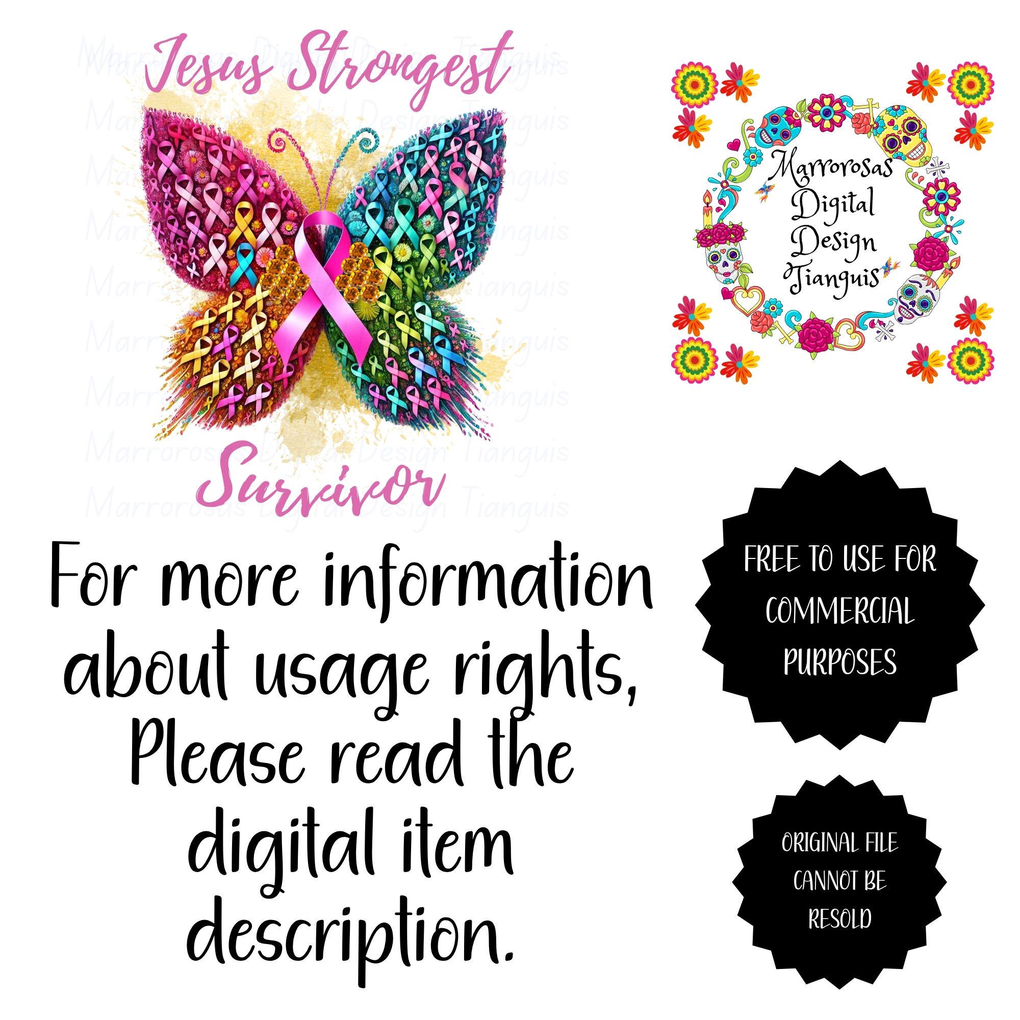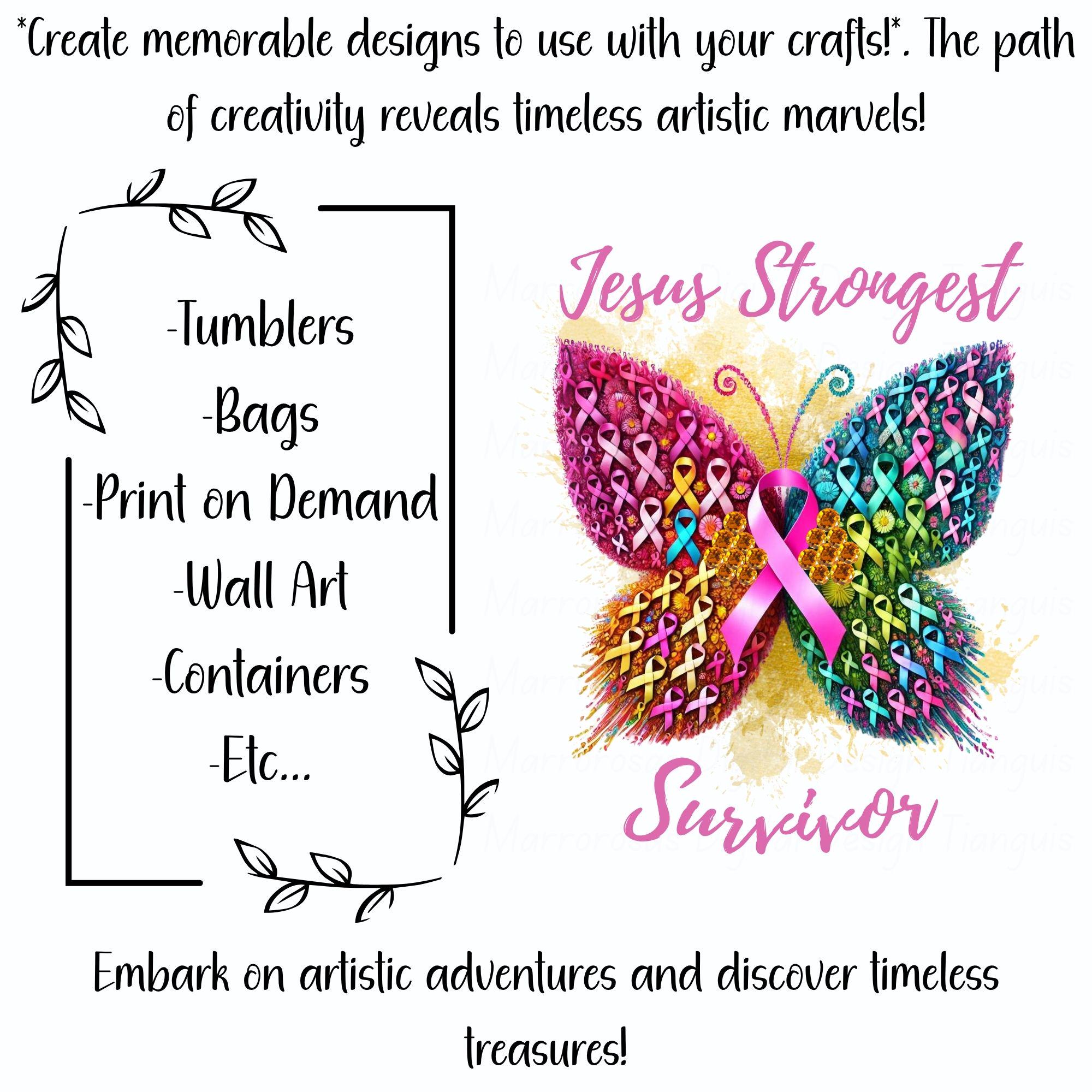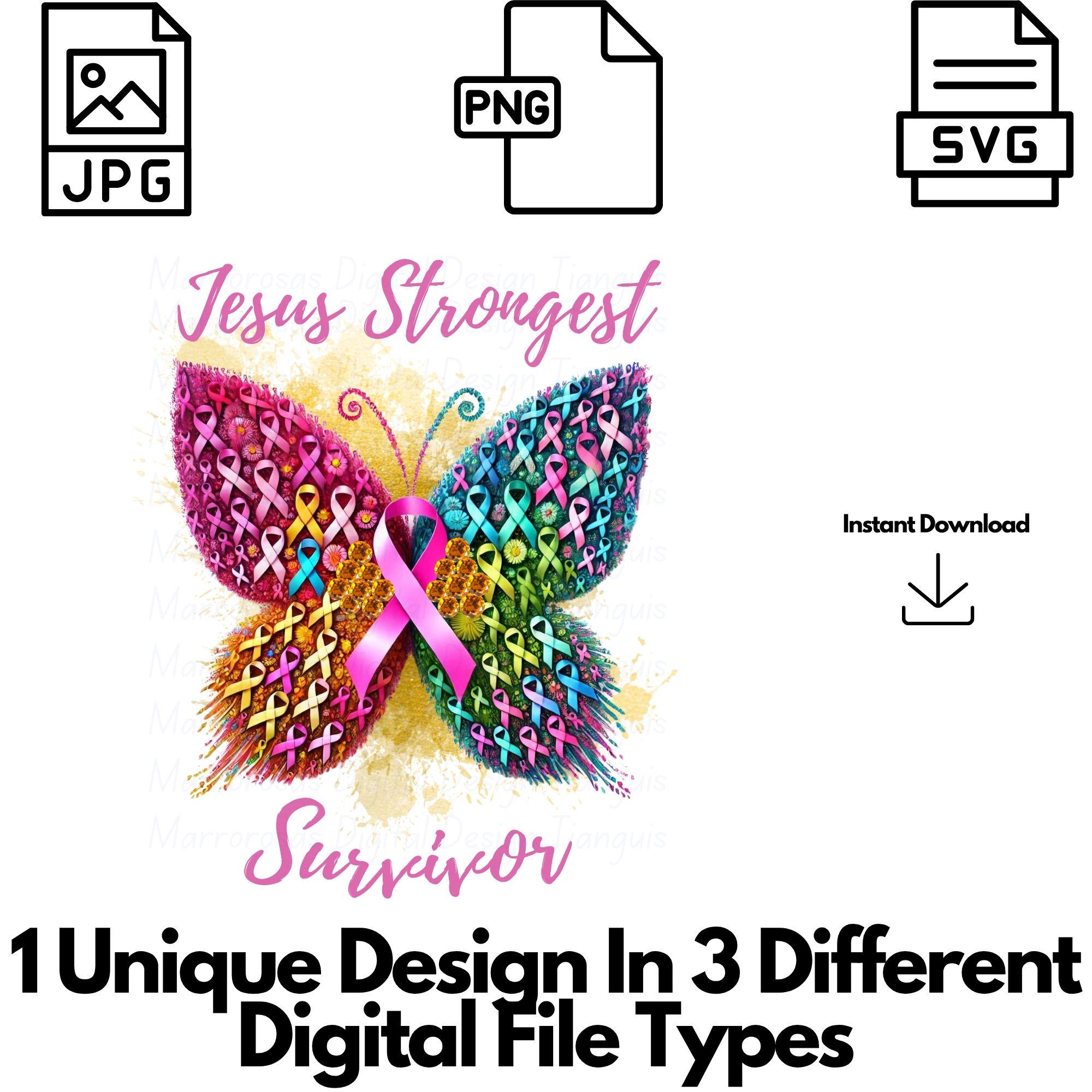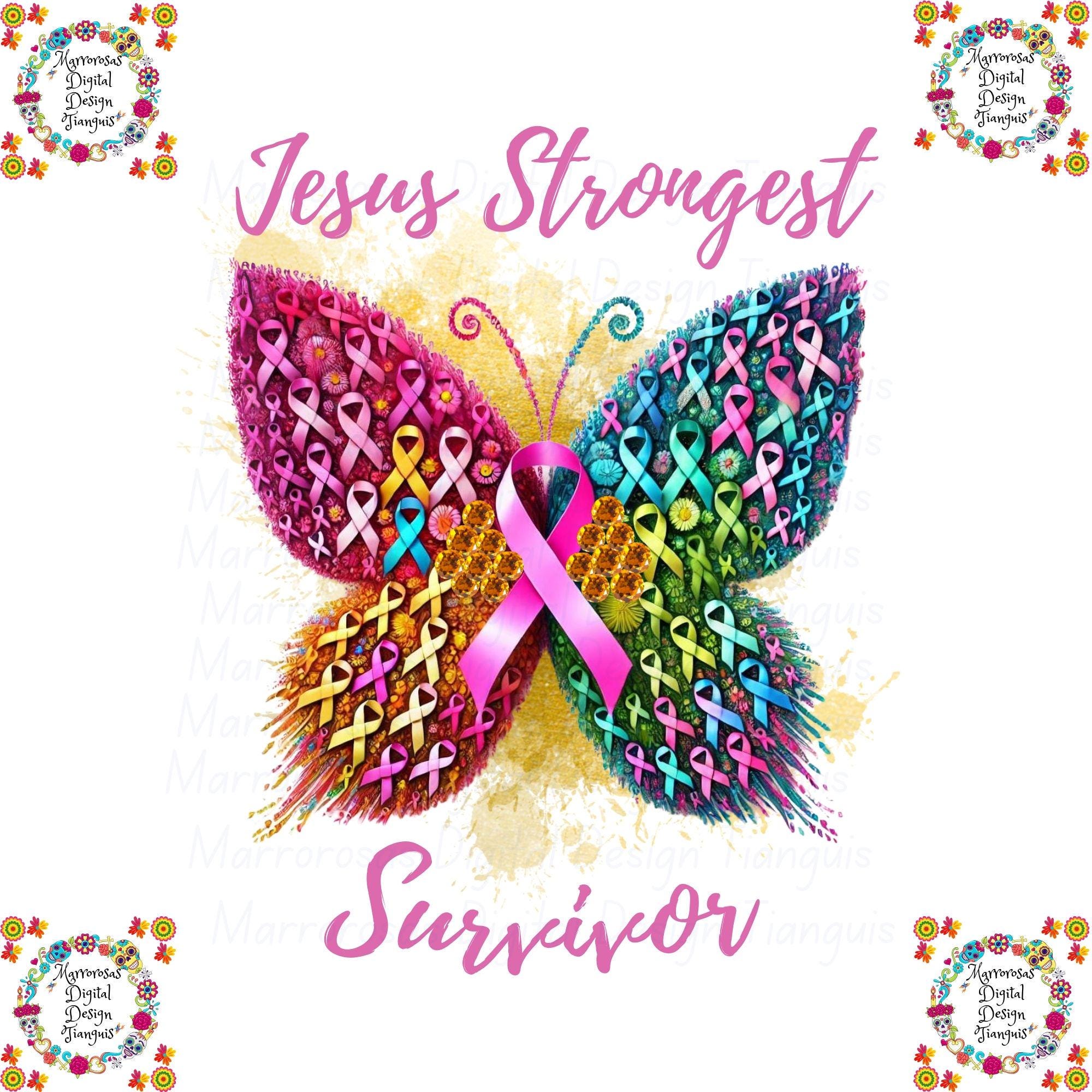 Jesus Strongest Survivor Cancer Awareness SVG: Butterfly Flower Design (Digital File)
