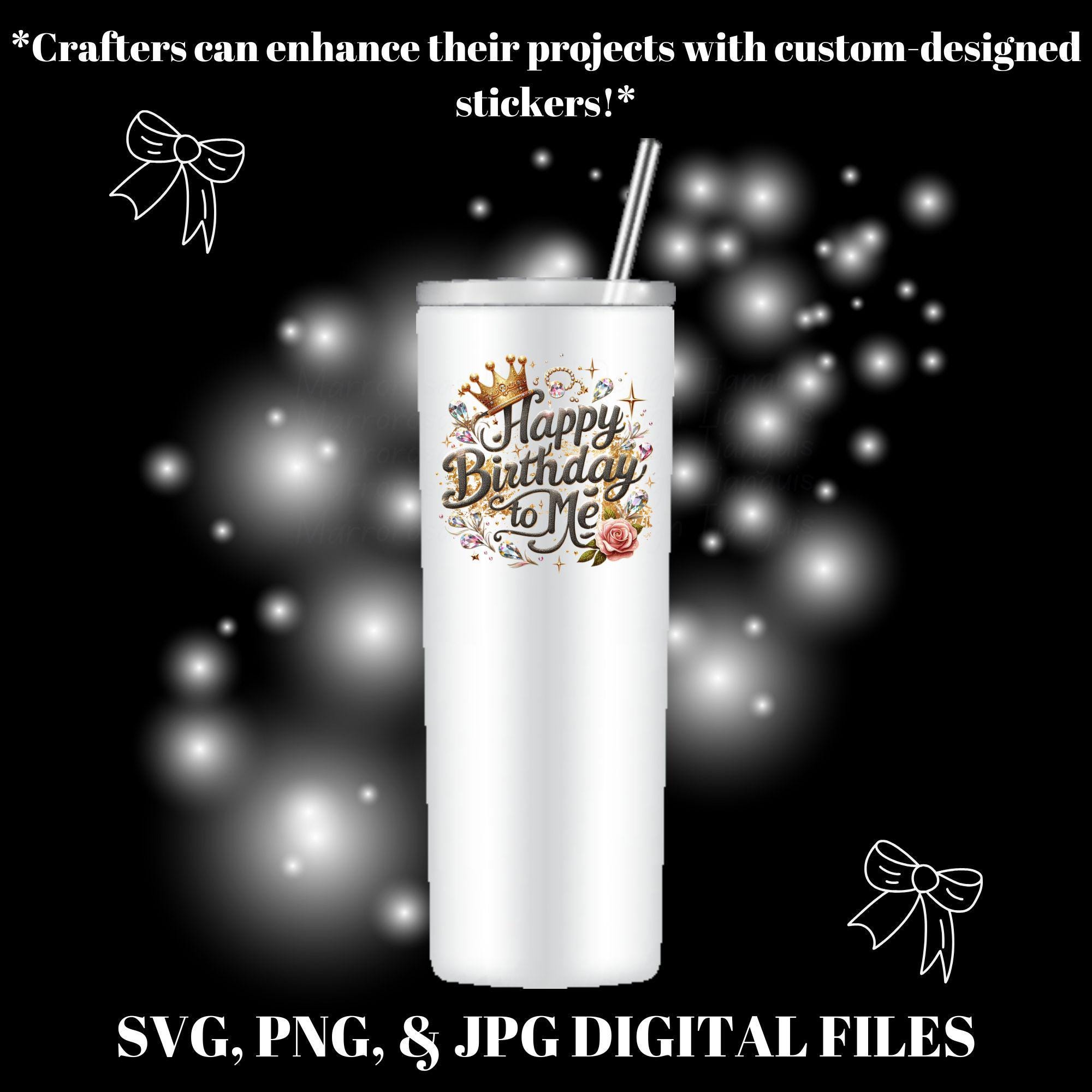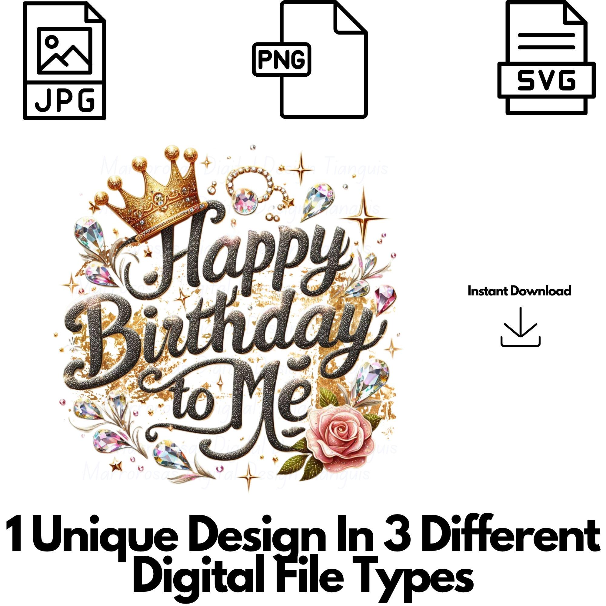Happy birthday to me, happy birthday svg, for me svg, gifts for her, happy birthday digital gifts, crown svg, crystals svg, digital product