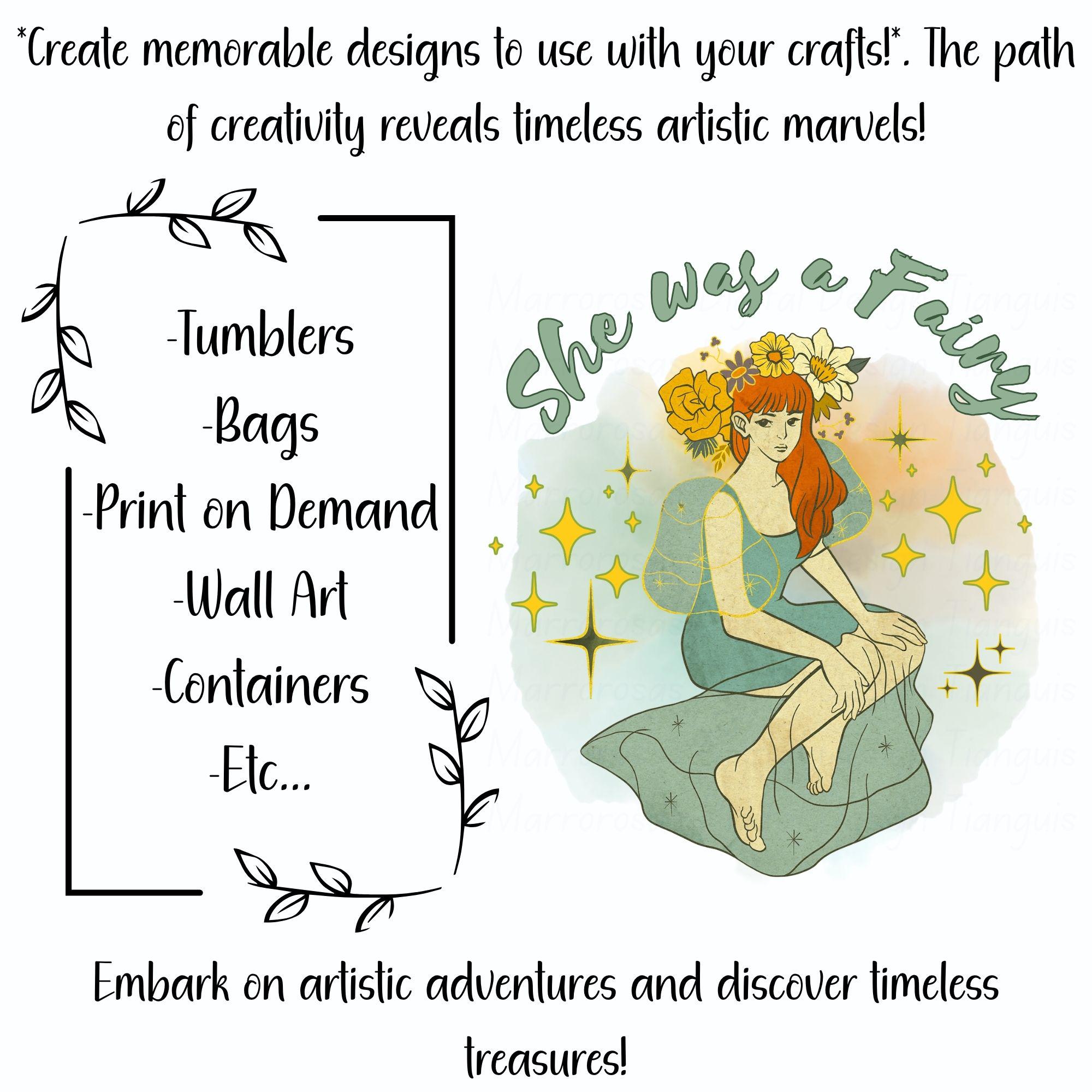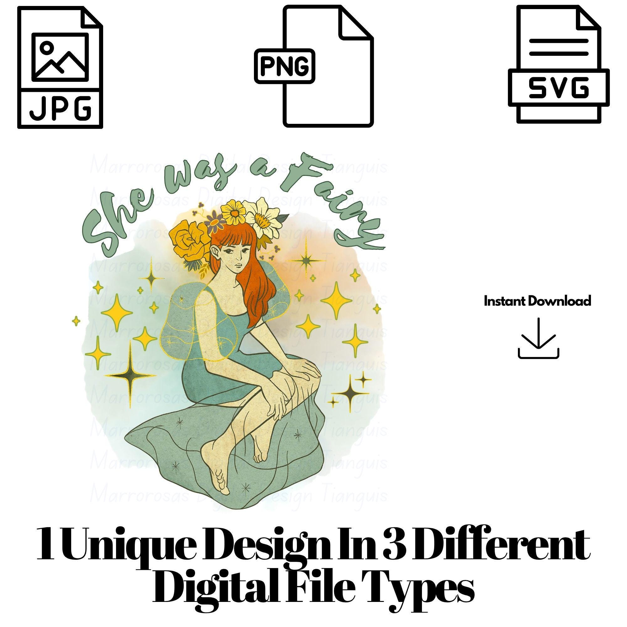 If you are looking for an authentic, cute, creative, and fairy inspired digital design then this file is for you. She was a fairy is a very cute and lovable digital design/art that can be used in many different ways. Great for gifting either him or her. This digital design product comes in 3 different DIGITAL file types (PNG, SVG, & JPG) to accommodate any of your needs. Files are resizable and printable!