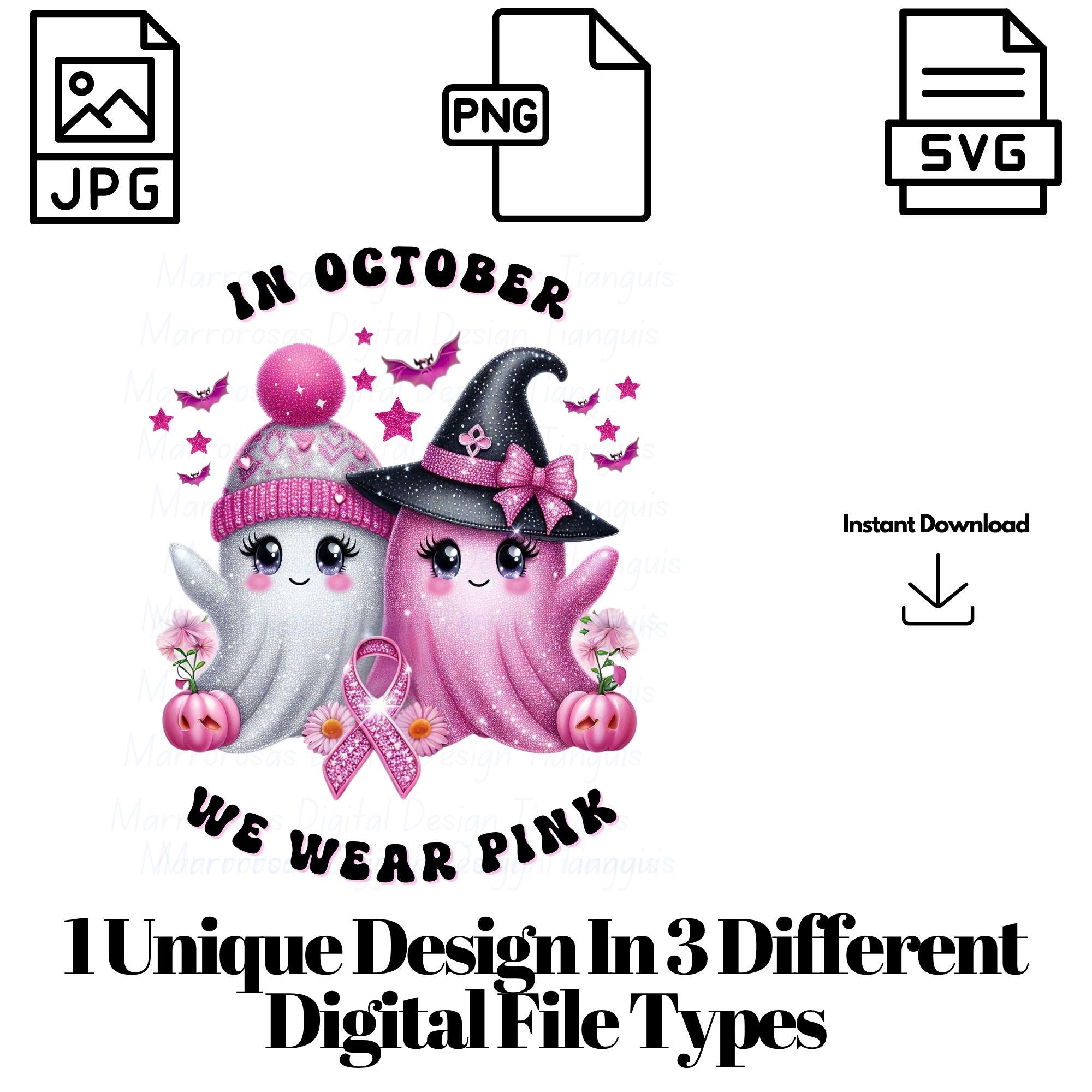 We wear pink, cancer svg, we wear pink svg png, digital, ghost design, halloween svg, boo svg png, pumpkins, witch svg png jpeg, cancer