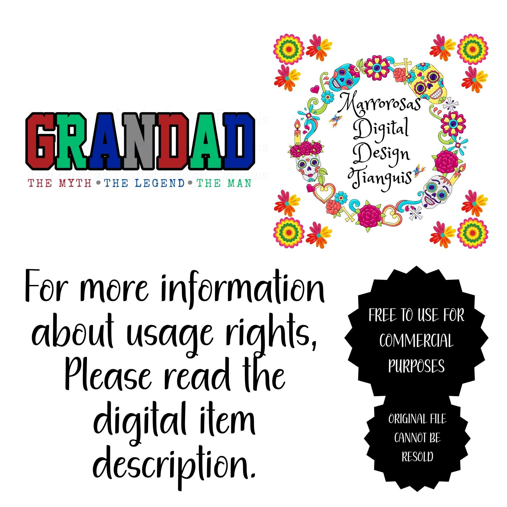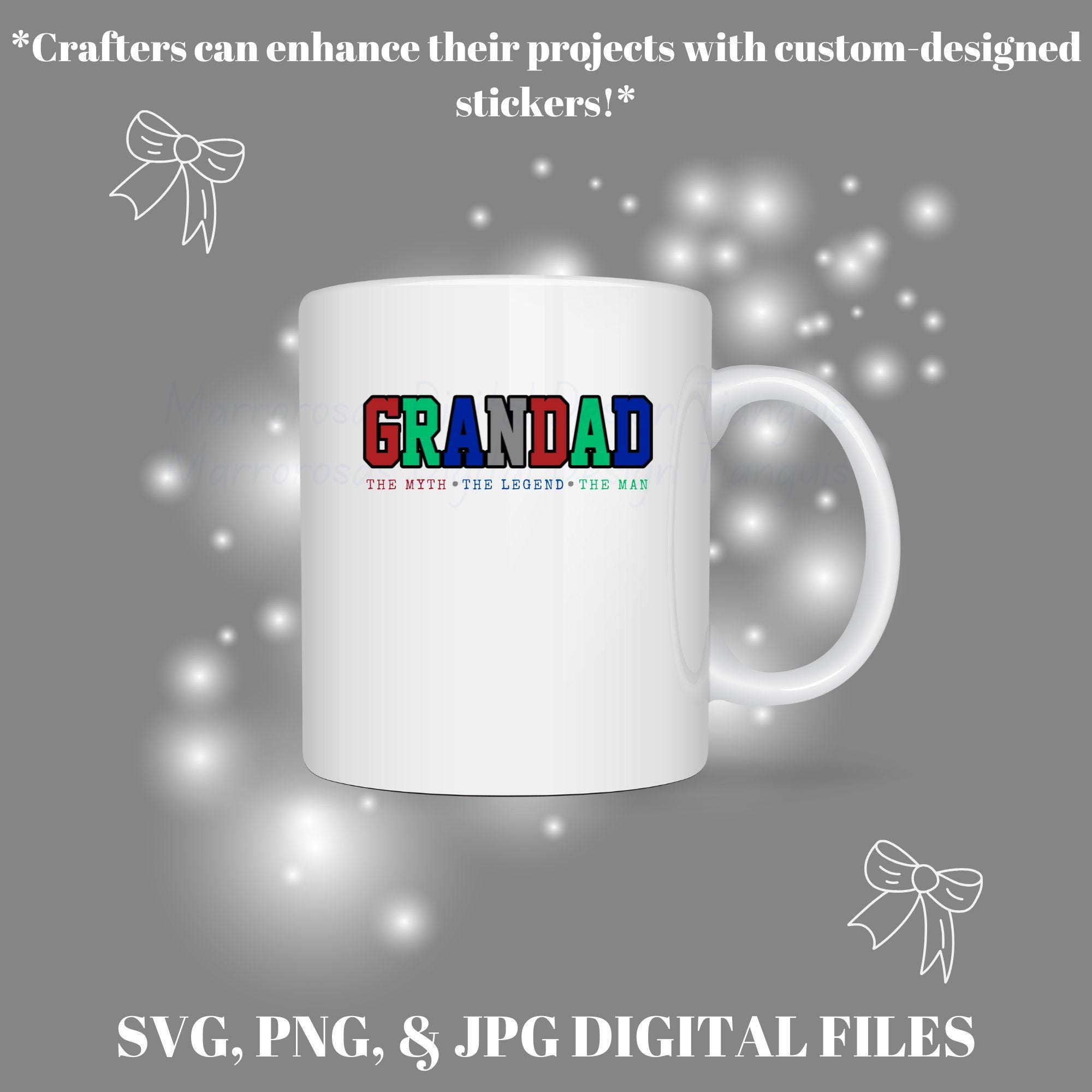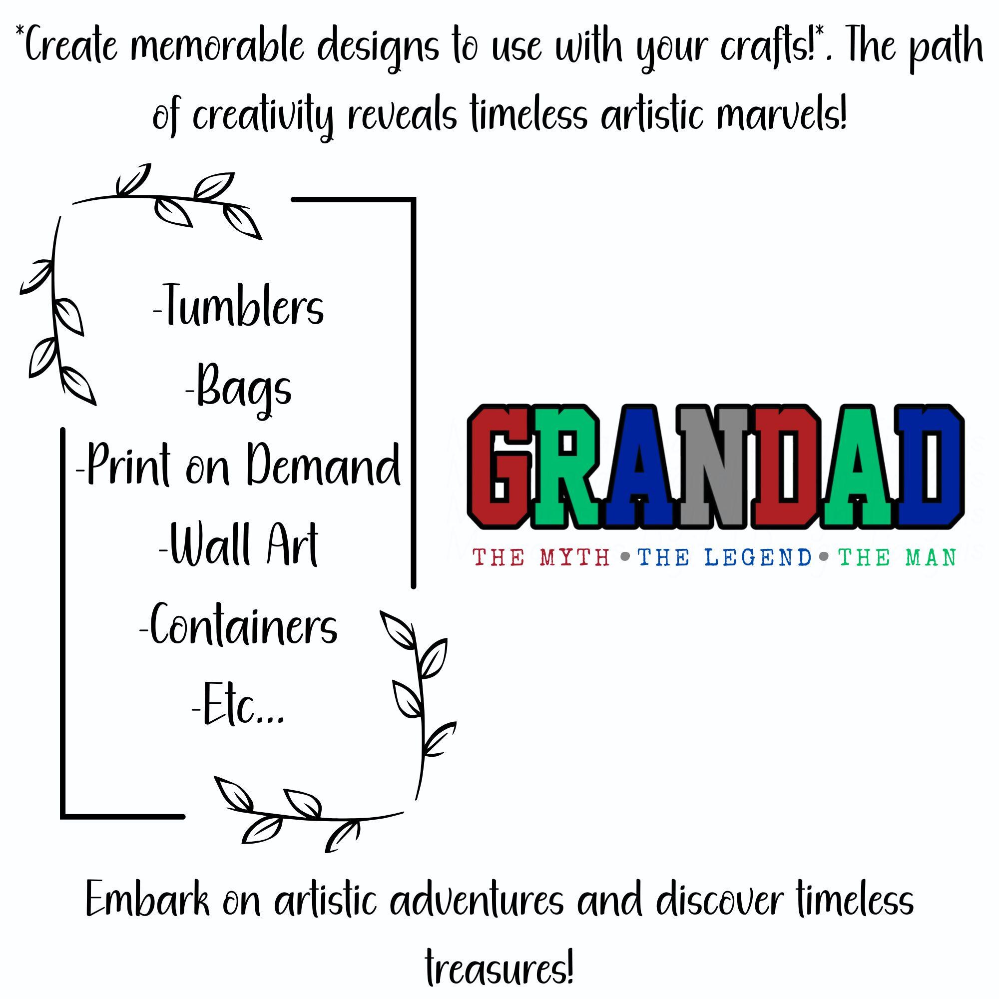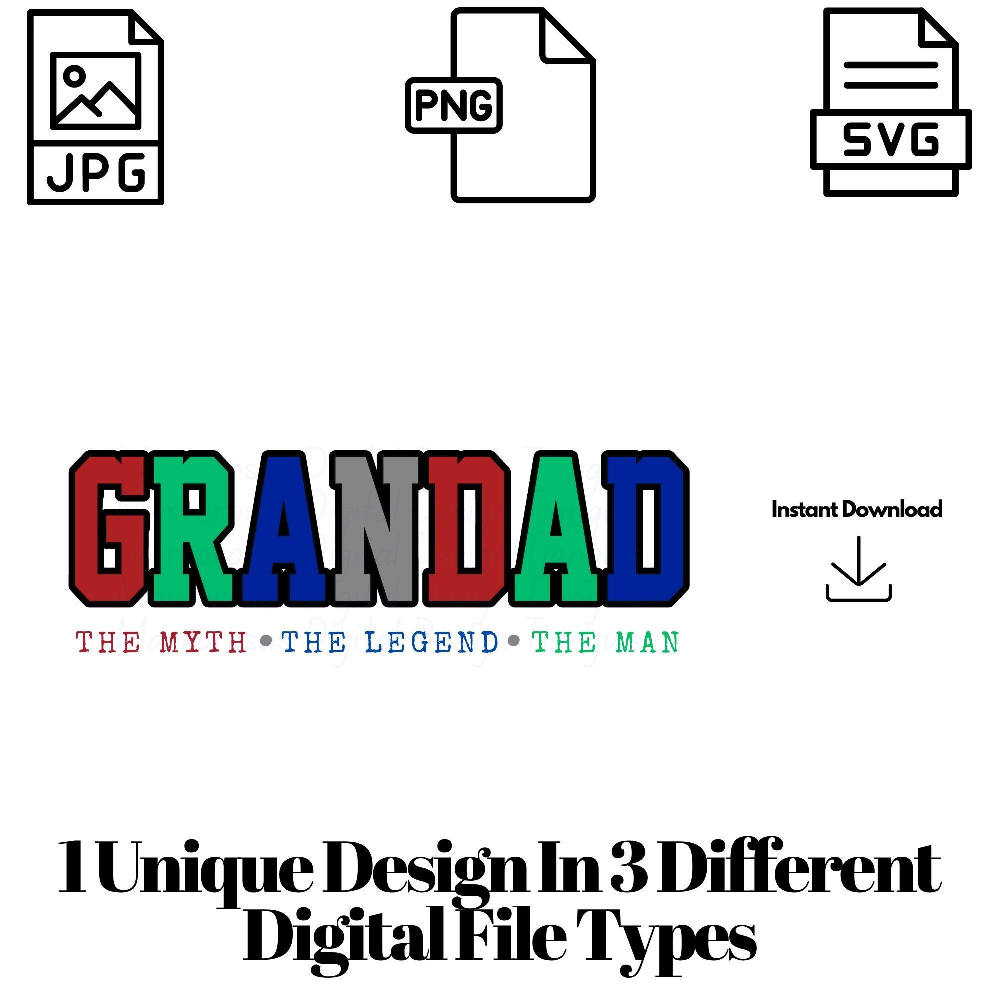 If you are looking for an authentic, creative, and Grandad inspired digital design then this file is for you. Grandad the myth legend man is a very cute and lovable digital design/art that can be used in many different ways. Great for gifting either him or her. This digital design product comes in 3 different DIGITAL file types (PNG, SVG, & JPG) to accommodate any of your needs. Files are resizable and printable!