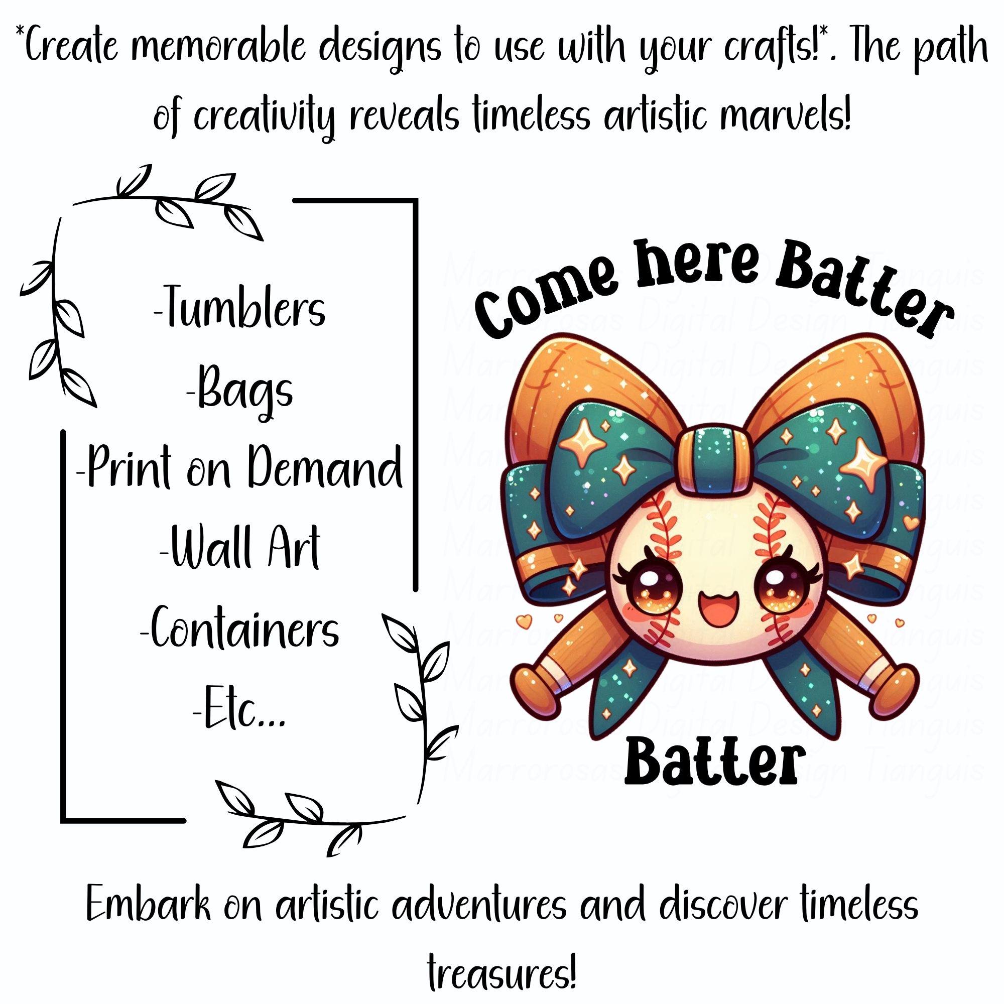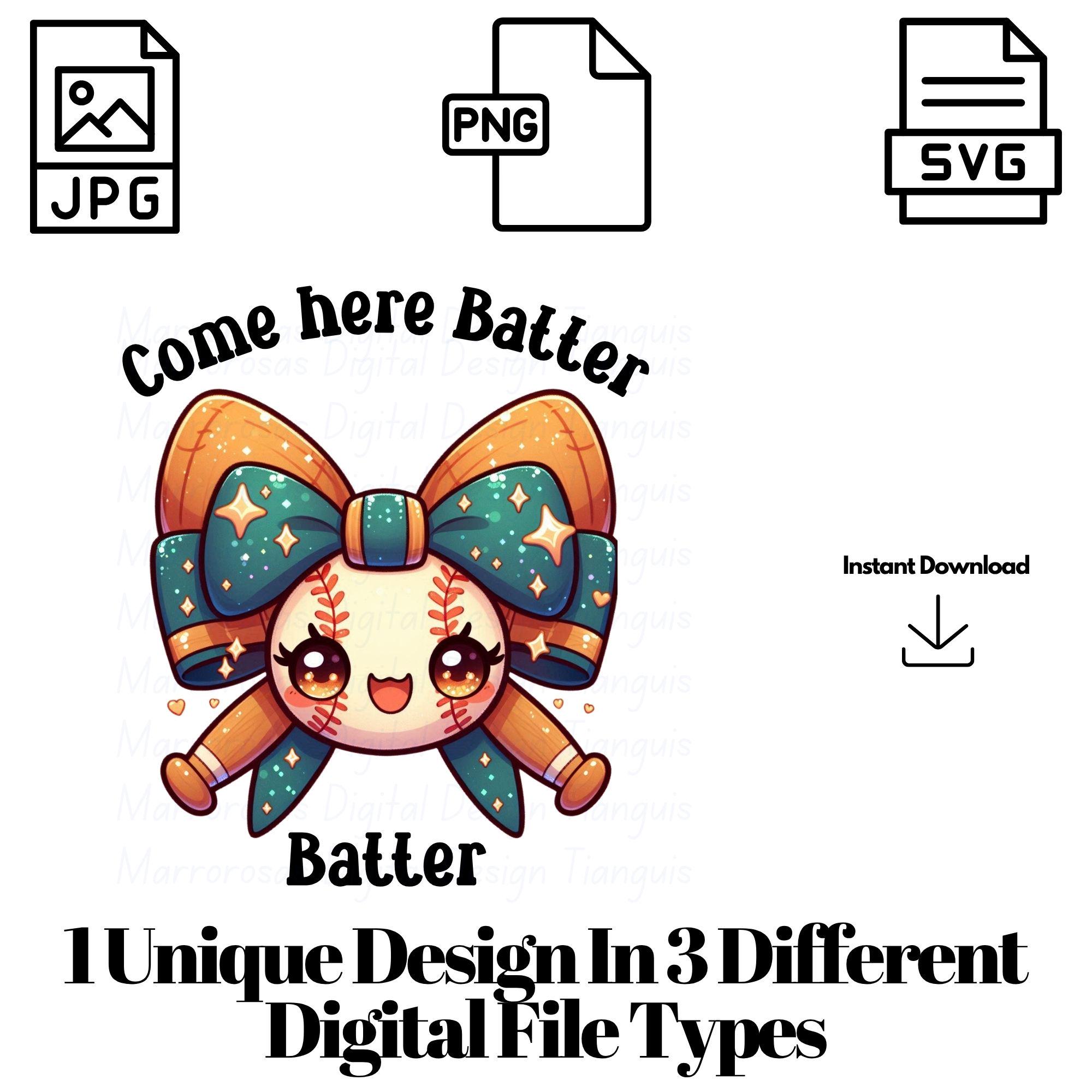 Come Here Batter Baseball Design: SVG, PNG, JPG (Digital Download)