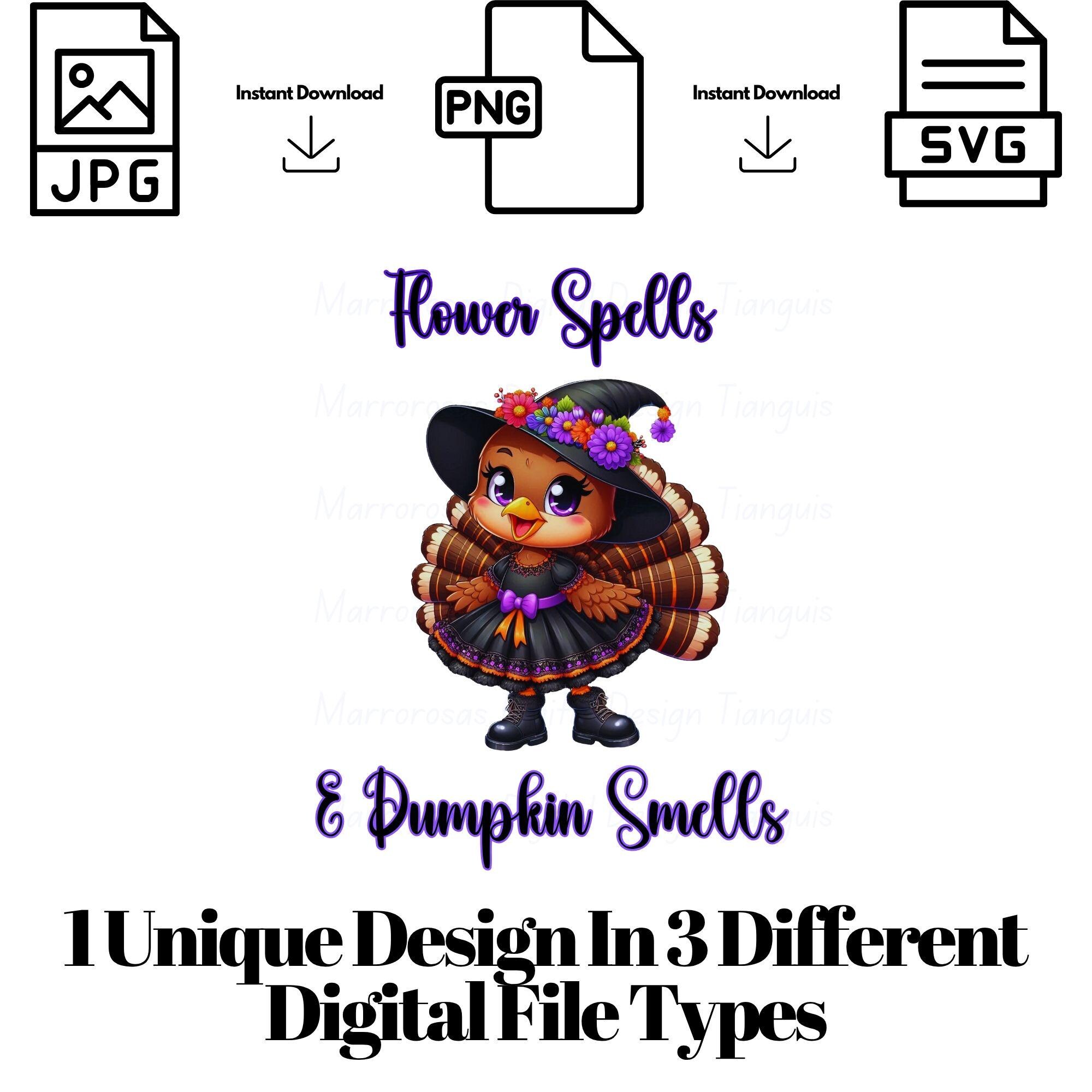 Flower Spells & Pumpkin Smells SVG PNG: Halloween Thanksgiving Design (Digital Files)