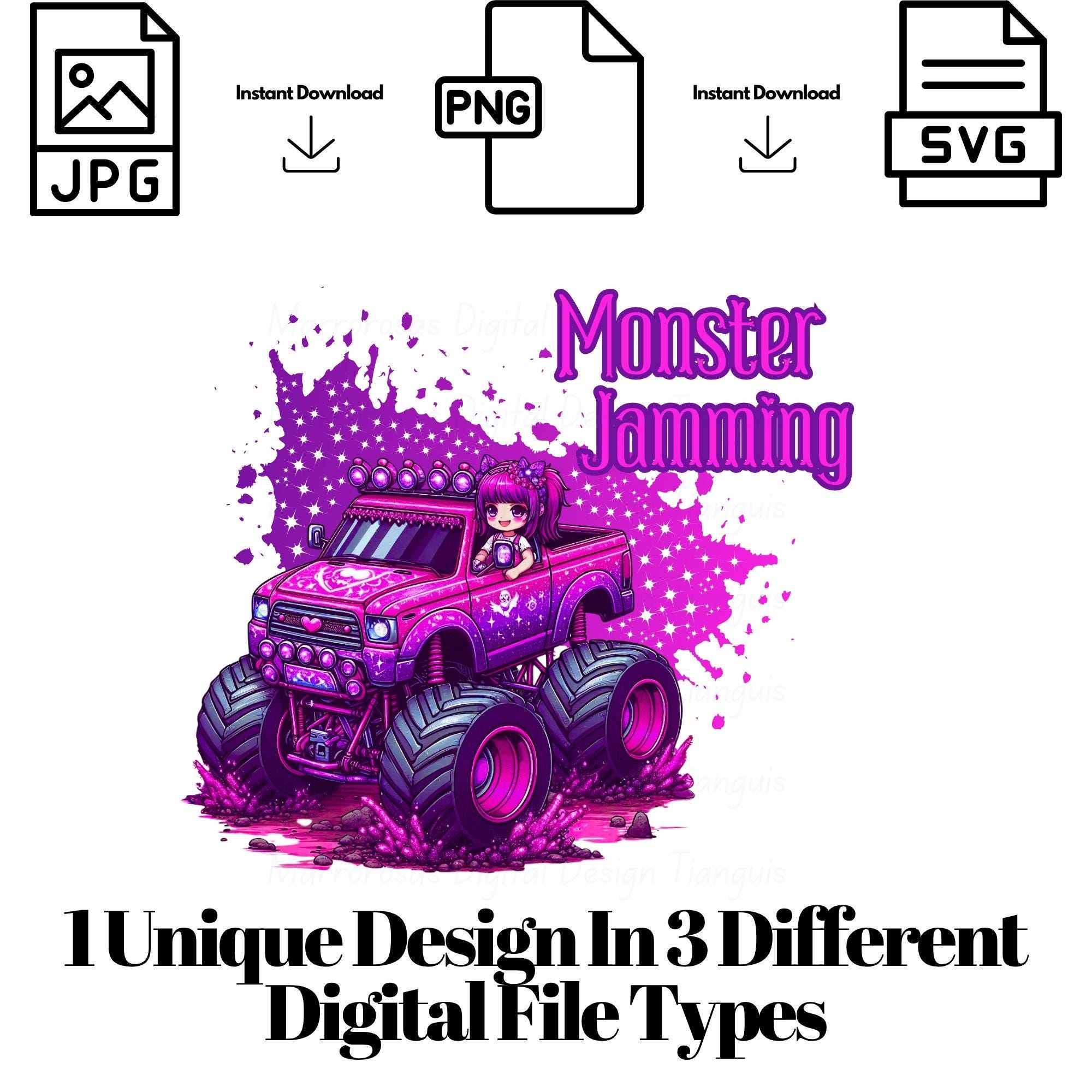 If you are looking for an authentic, adorable, and cute Monster truck inspired digital design then this file is for you. Monster jamming anime is a very cute and lovable digital design/art that can be used in many different ways. Great for gifting either him or her. This digital design product comes in 3 different DIGITAL file types (PNG, SVG, JPG) to accommodate any of your needs. Files are resizable and printable!