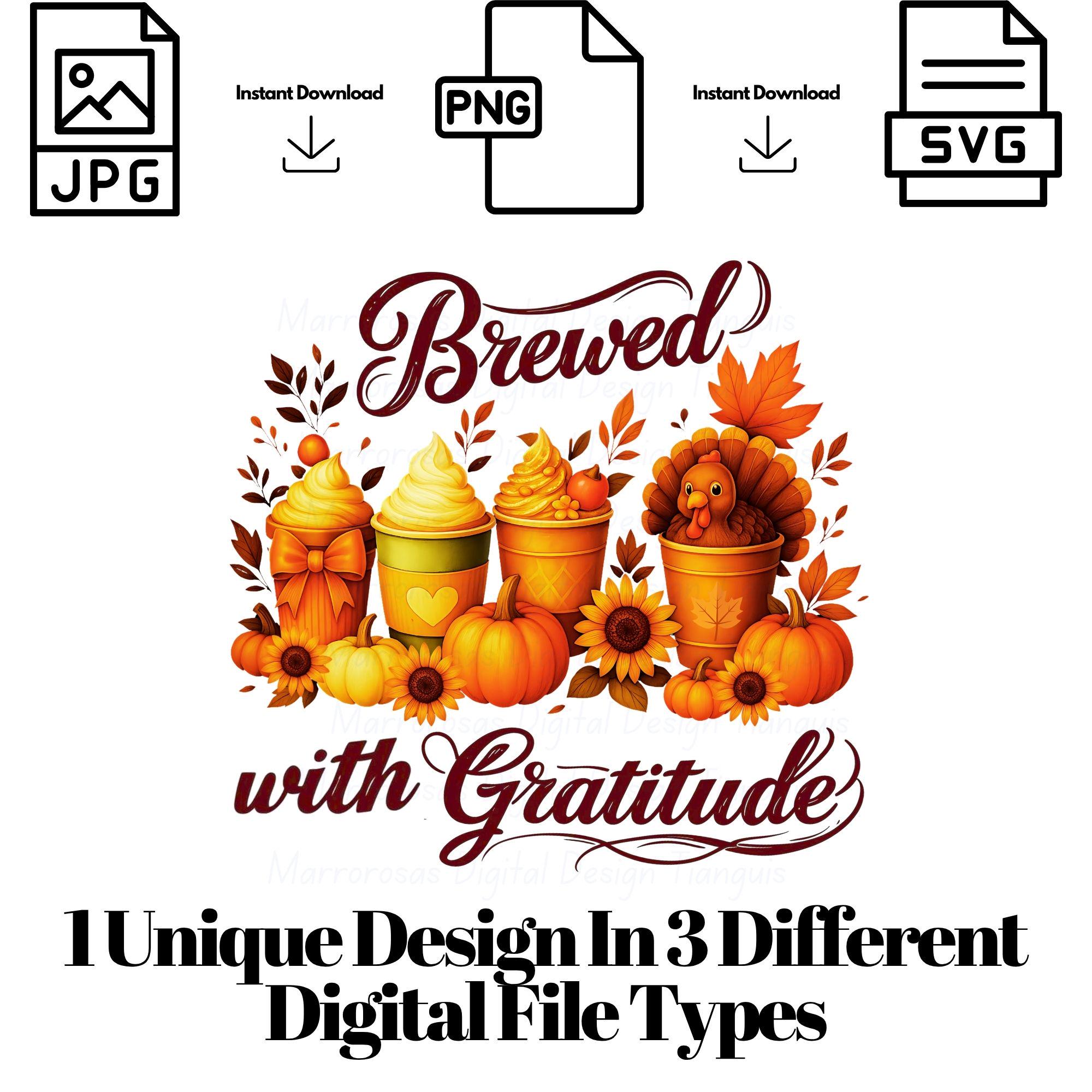 Brewed with Gratitude SVG: Thanksgiving Latte Design (Digital File)