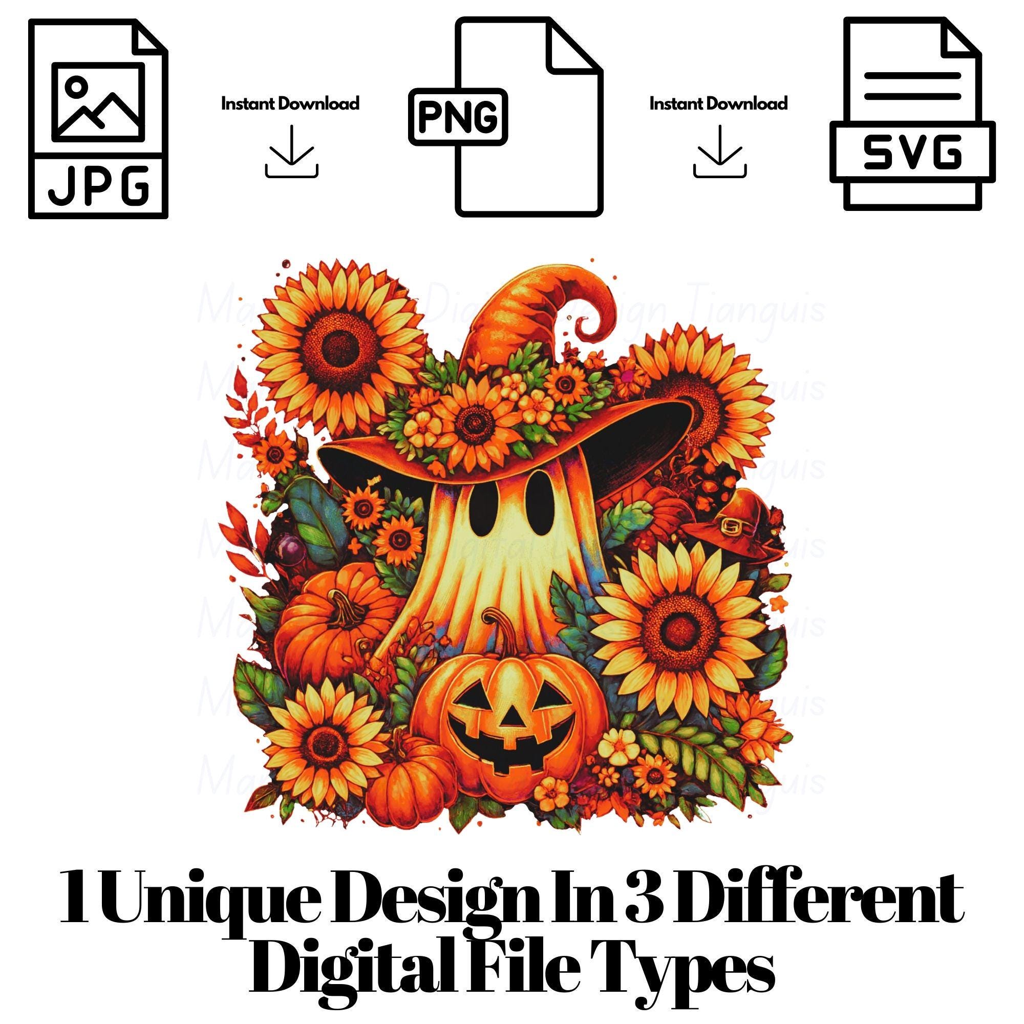 Boos and Blooms, halloween svg, sunflower svg, cute ghost svg, fall pumpkin designs, fall designs, fall season svg, halloween flower designs