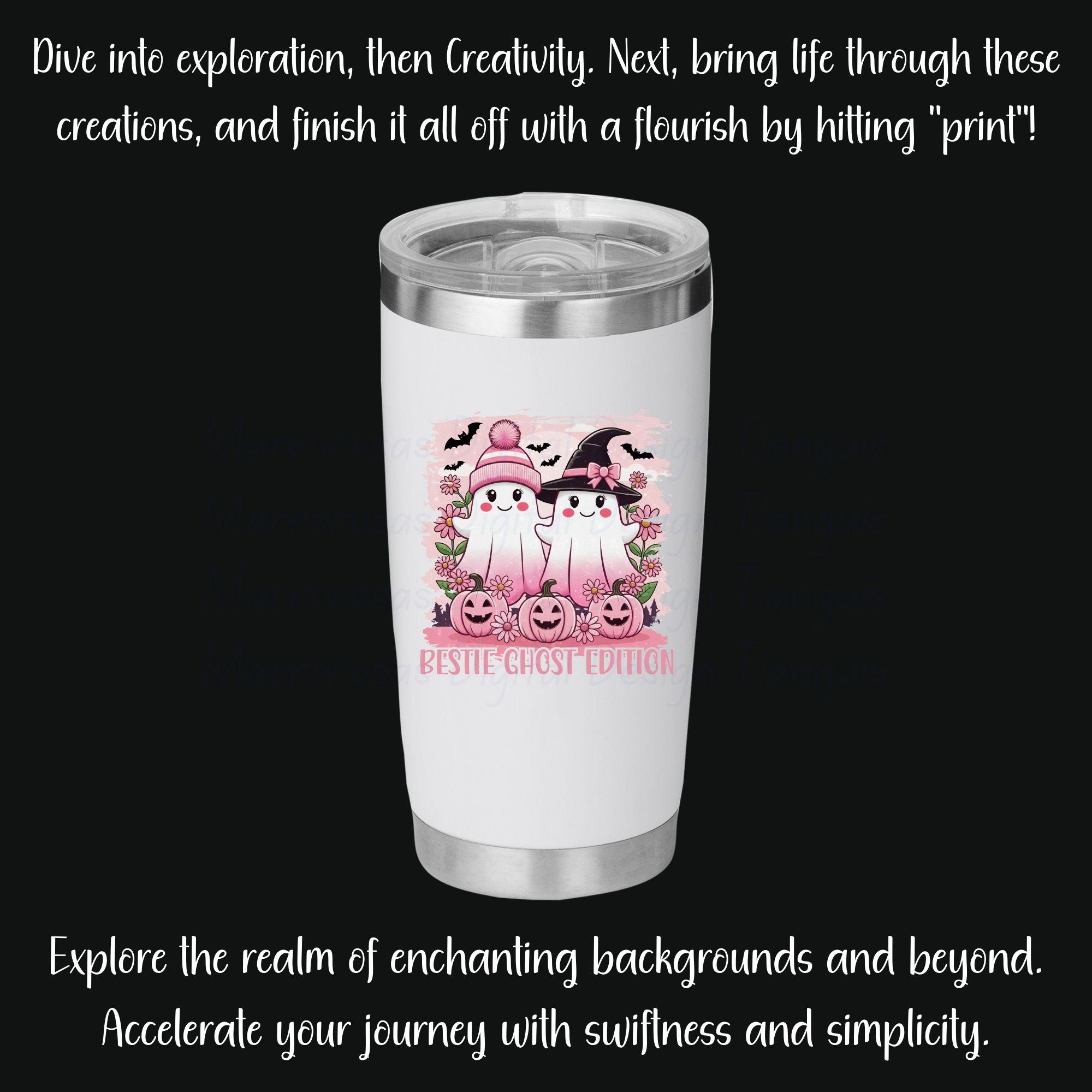 Bring a touch of spooky sweetness to your collection with this adorable pastel Halloween digital design! This artwork features two smiling ghost besties dressed in style—one wearing a cozy pink beanie and the other a witch hat with a pink bow. Surrounded by cheerful daisies, pastel jack-o’-lanterns, fluttering bats, and a whimsical Halloween village silhouette, this design radiates both cute and festive charm. The bold matching pink lettering “Bestie Ghost Edition” adds a playful and trendy vibe, making it the perfect design for friends, siblings, or anyone who loves fun and pastel Halloween décor. Ideal for sublimation, heat transfer, stickers, t-shirts, hoodies, mugs, tote bags, and seasonal printables, this digital file is a must-have for crafters and small shop owners looking to offer something unique and irresistibly cute.