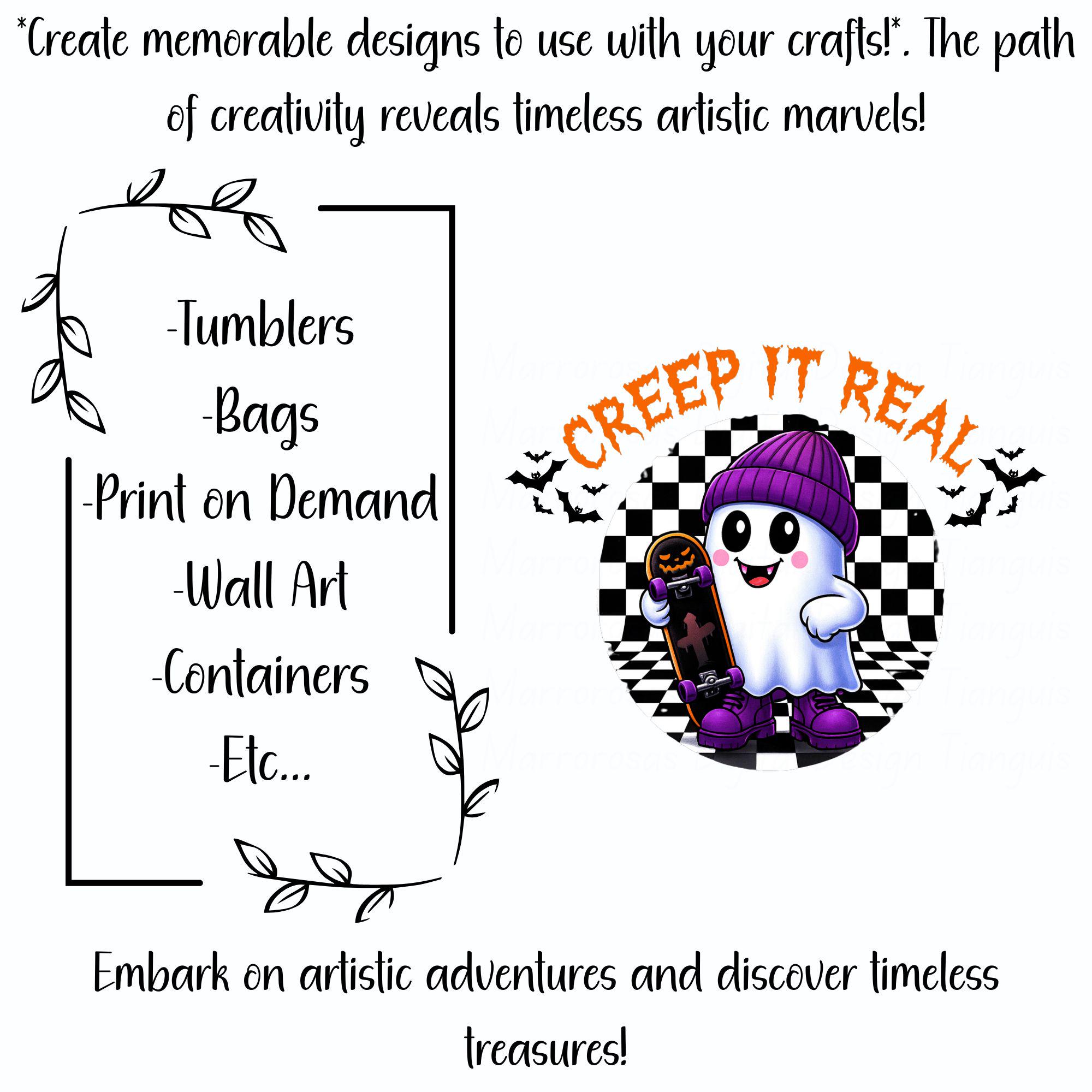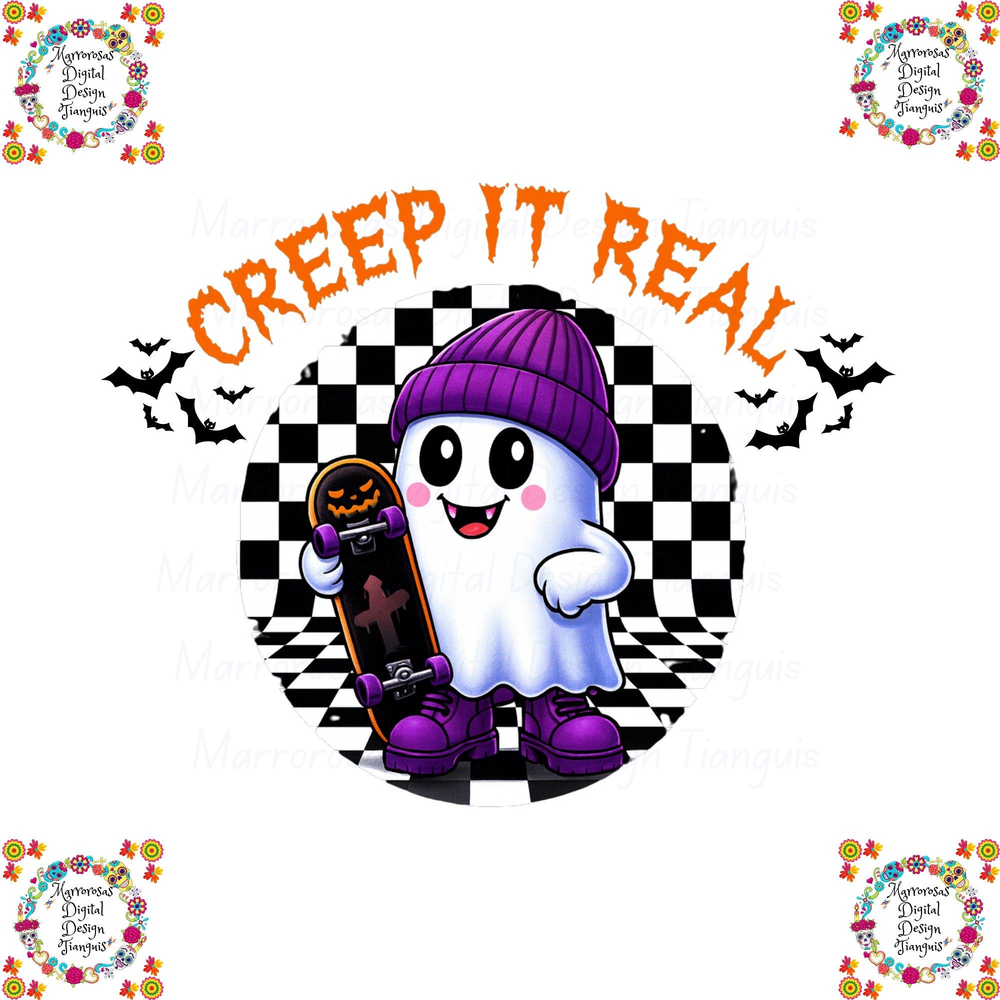 Bring a playful Halloween vibe to your wardrobe or décor with this “Creep It Real” Ghost Skateboard Digital Design. This high-resolution PNG file (transparent background) features a super-cute ghost rocking a purple beanie, matching boots, and a Halloween skateboard, all set against a bold black-and-white checkered circle. Crisp orange lettering spells out Creep It Real for the perfect mix of spooky and fun. If you are looking for an authentic Fall/Halloween inspired digital design then this file is for you. Ghostly skating is a very cute and lovable digital design/art that can be used in many different ways. Great for gifting either him or her. This digital design product comes in 3 different DIGITAL file types (PNG, SVG, & JPG) to accommodate any of your needs. Files are resizable and printable!