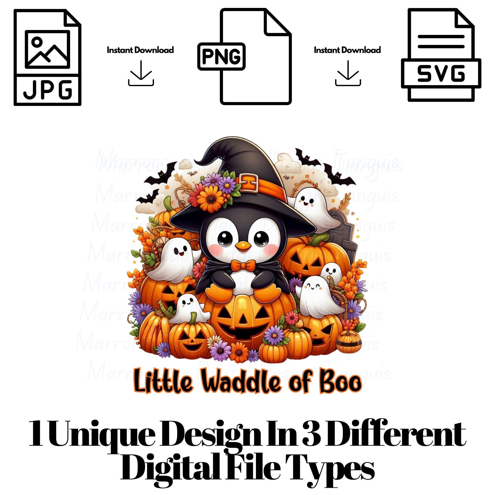 Little waddle of boo svg, penguin svg, Halloween penguin witch, Halloween, Halloween design, Boo svg, pumpkin patch, bats svg, sunflower