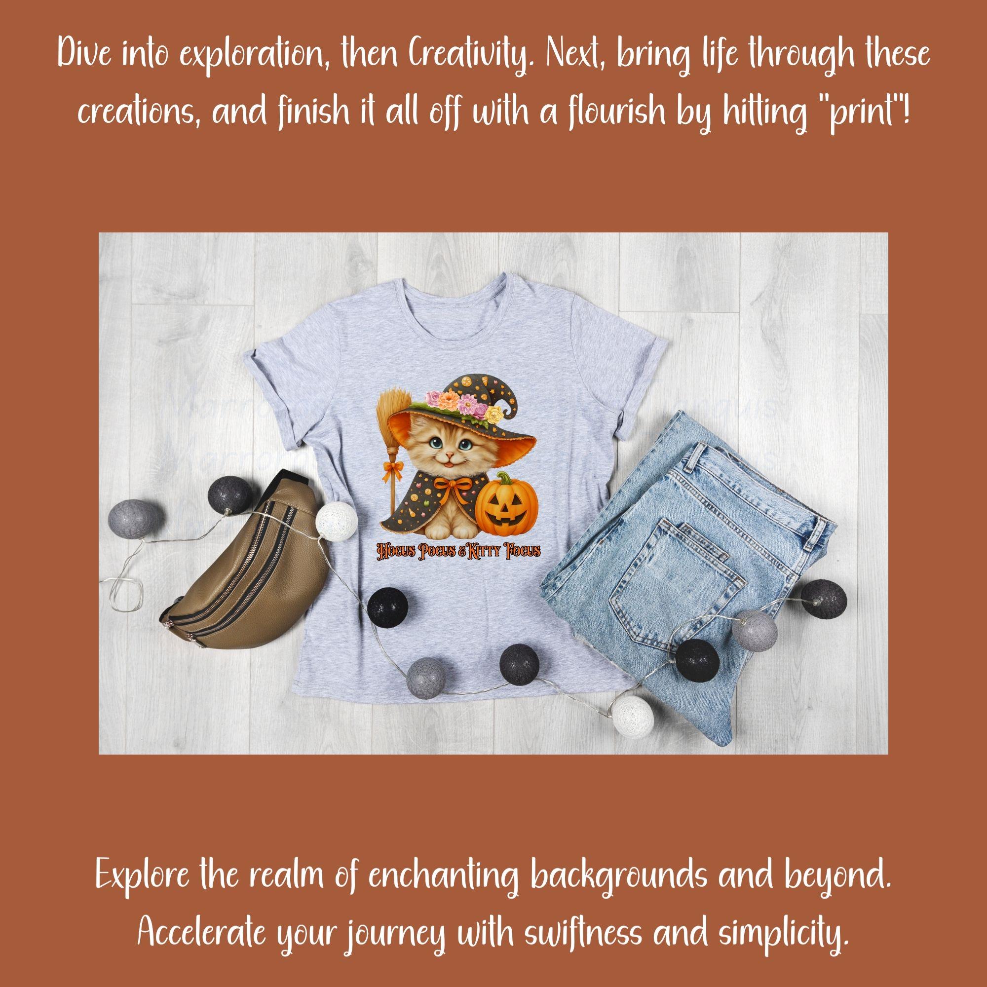 Bring some meowgical charm to your Halloween wardrobe with this irresistibly cute “Hocus Pocus & Kitty Focus” T-shirt! 🐱✨ This design features an adorable fluffy kitten dressed as a little witch, complete with a floral witch hat, candy-dotted cape, pumpkin sidekick, and the playful phrase “Hocus Pocus & Kitty Focus” in a vintage-style Halloween font. It’s the perfect mix of sweet, spooky, and whimsical — making it a must-have for Halloween lovers of all ages! Whether you’re trick-or-treating, attending a fall festival, or just cozying up with pumpkin spice, this shirt adds a magical, lighthearted touch to any outfit.
