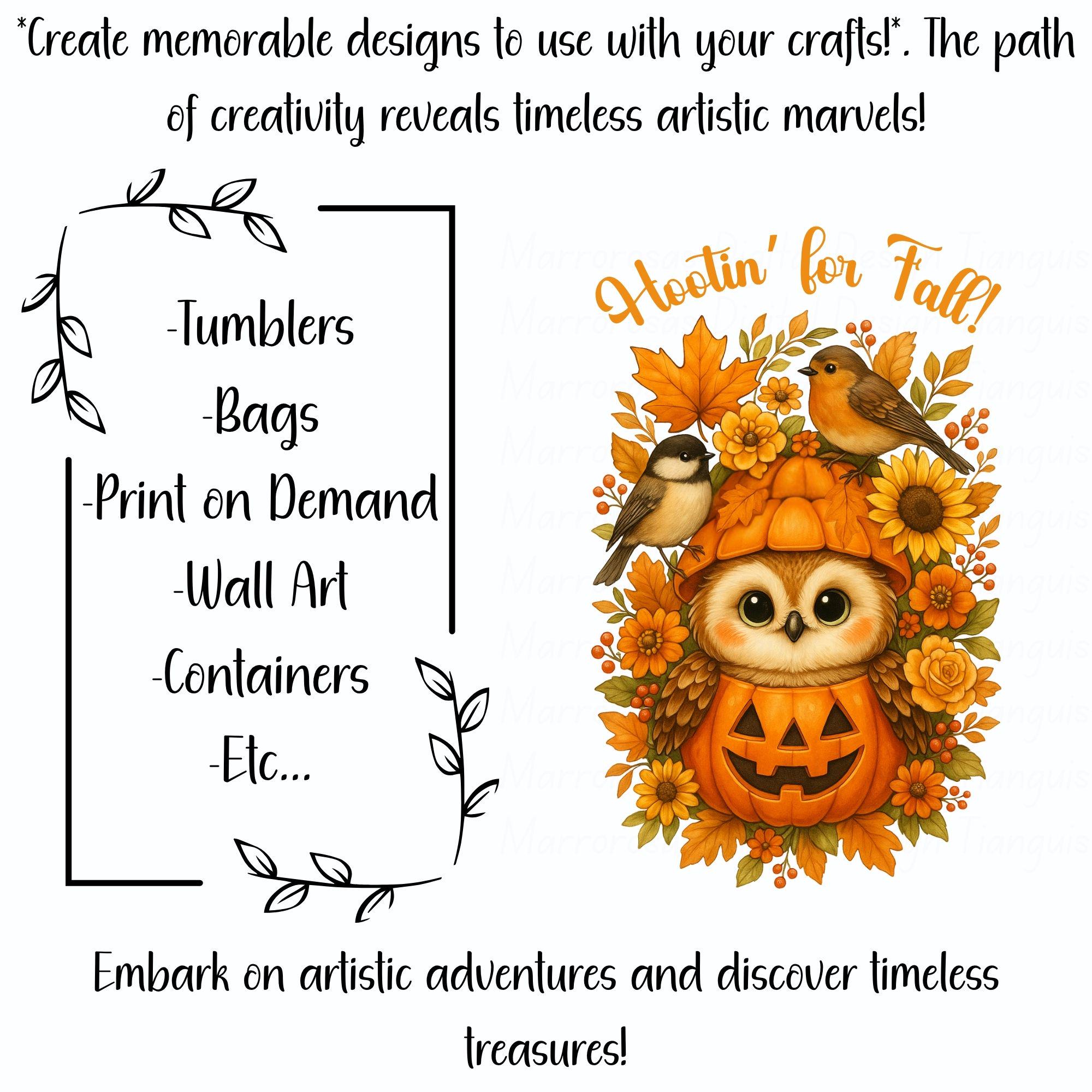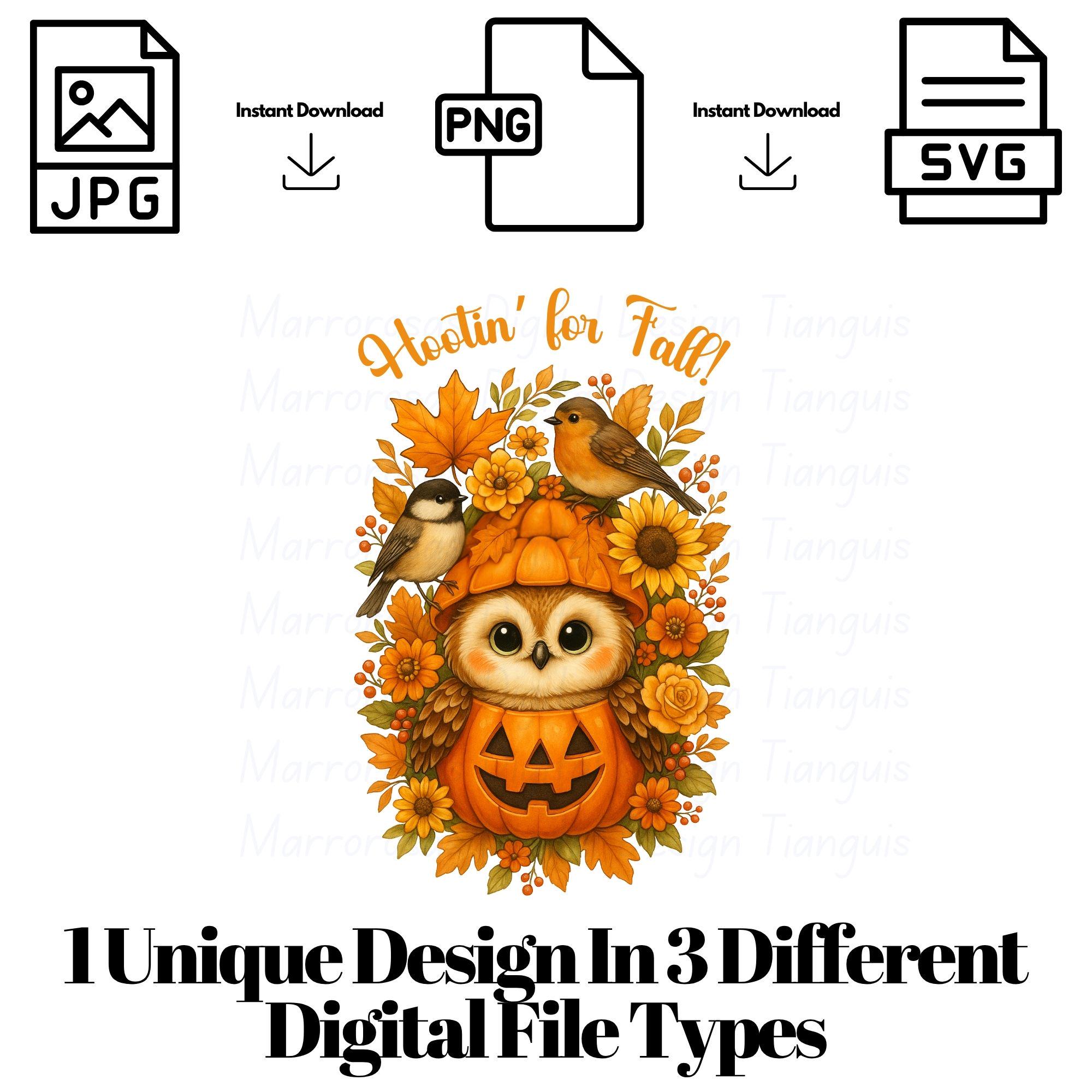 This design is perfect for creating seasonal apparel, wall art, stickers, mugs, tote bags, greeting cards, or digital prints. Whether you’re crafting for kids, decorating your home, or designing festive products for your shop, this cute fall owl adds a delightful touch of sweetness and whimsy to every project... Hootin' for Fall is a very cute and lovable digital design/art that can be used in many different ways. Great for gifting either him or her. This digital design product comes in 3 different DIGITAL file types (PNG, SVG, & JPG) and also 1 PDF File to accommodate any of your needs. Files are resizable and printable!
