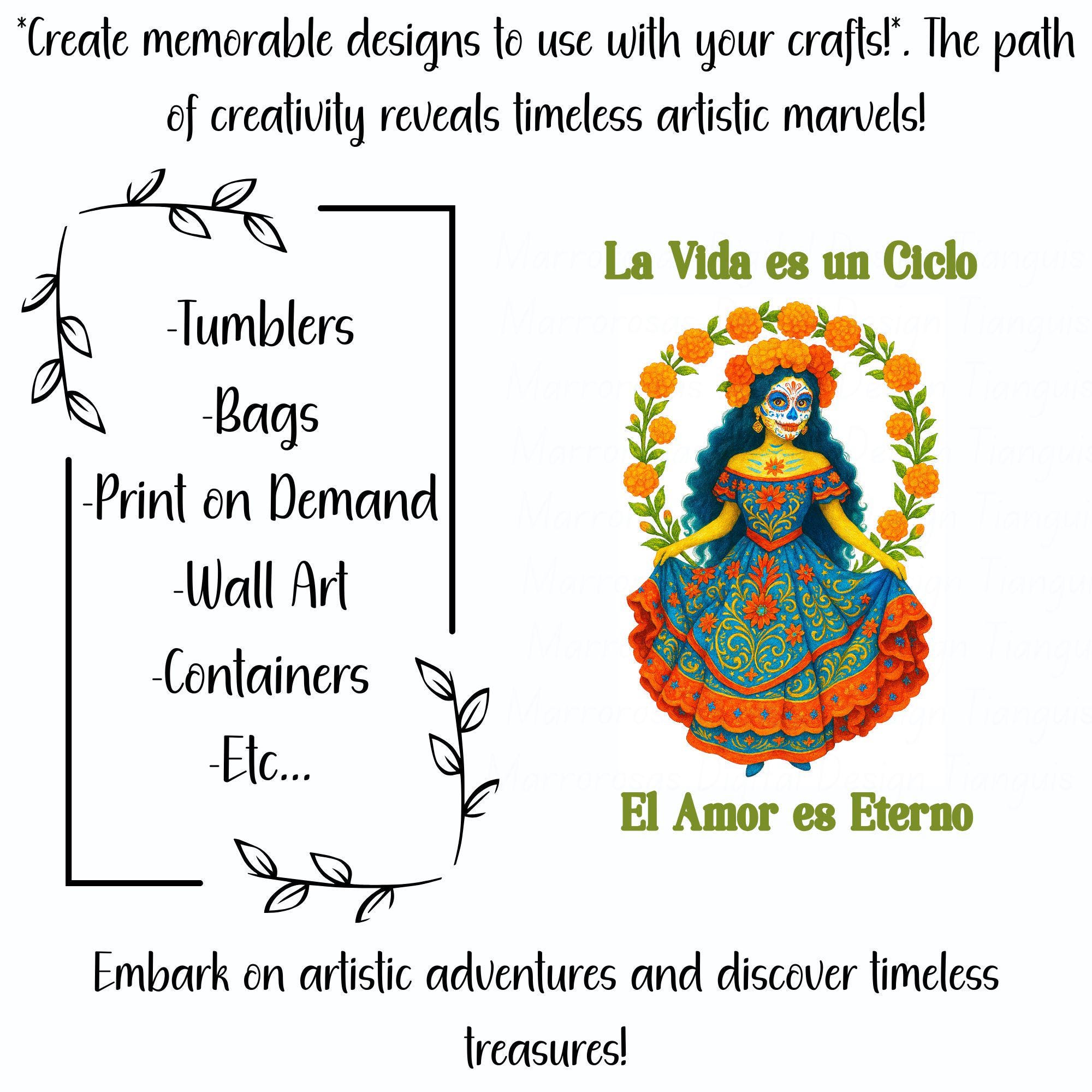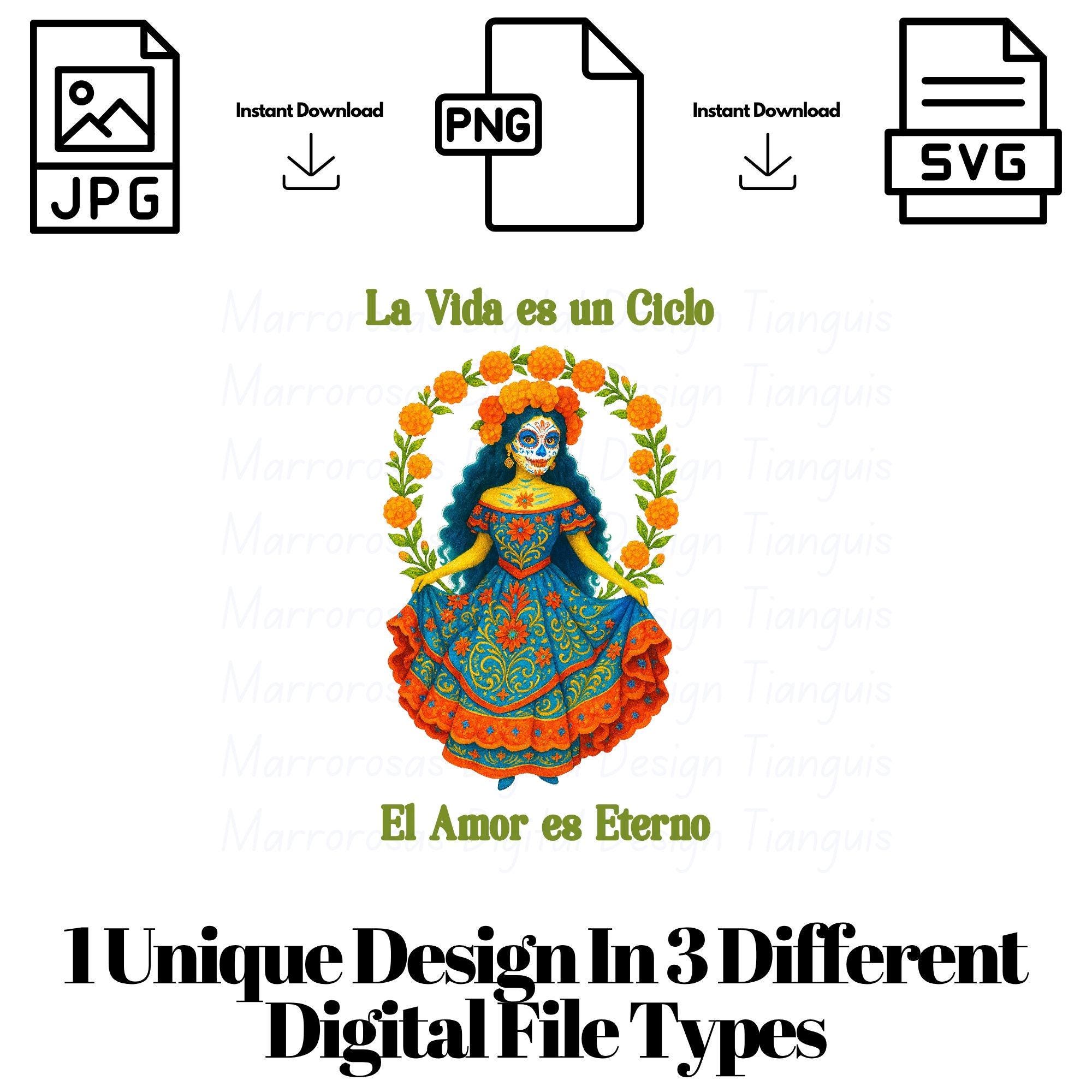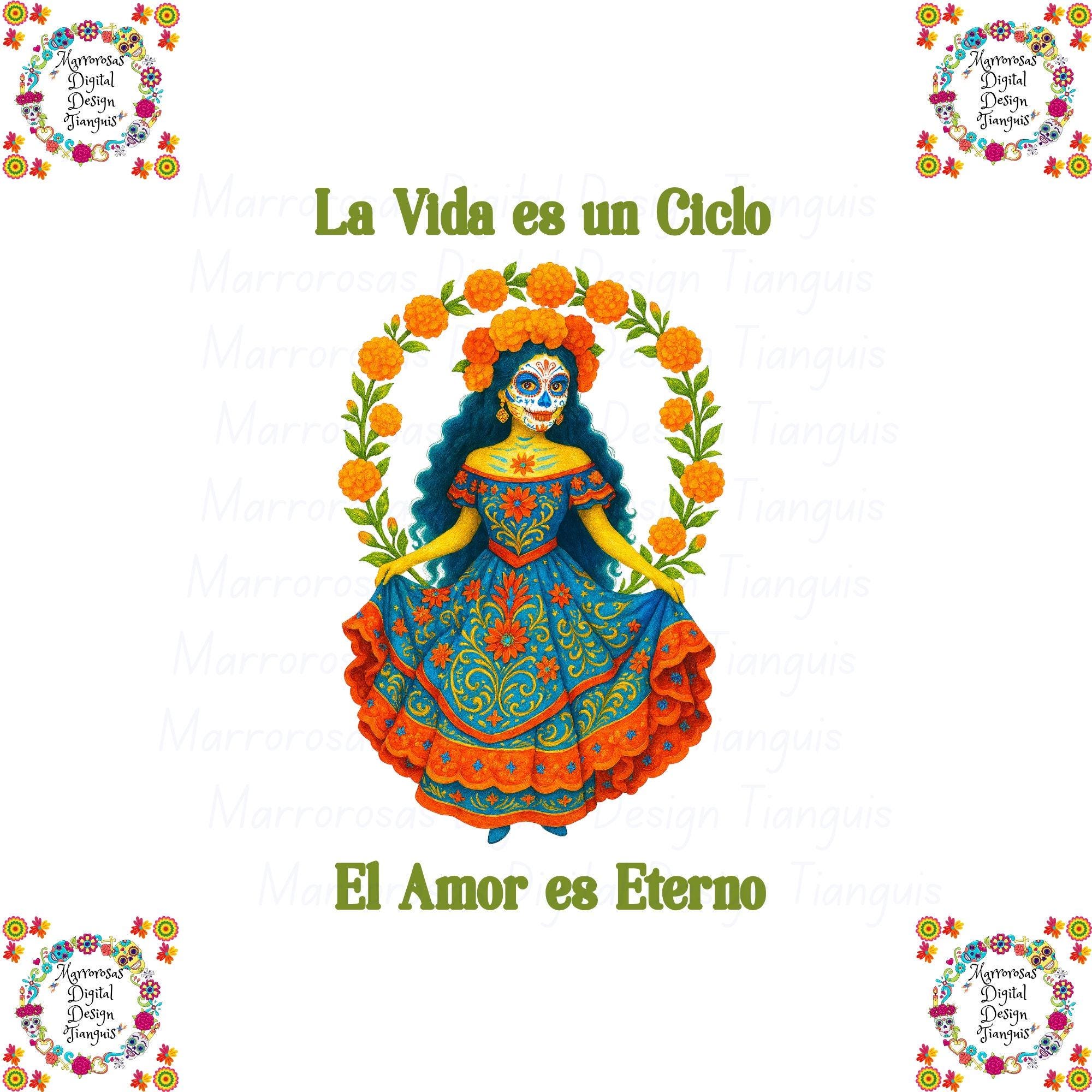 Perfect for T-shirts, wall prints, posters, tote bags, mugs, invitations, or cultural celebration projects, this digital file is ideal for artists, crafters, and shop owners who love vibrant, meaningful art inspired by Mexican heritage.. La vida es un ciclo el amor es eterno is a very cute and lovable digital design/art that can be used in many different ways. Great for gifting either him or her. This digital design product comes in 3 different DIGITAL file types (PNG, SVG, & JPG) and also 1 PDF File to accommodate any of your needs. Files are resizable and printable!