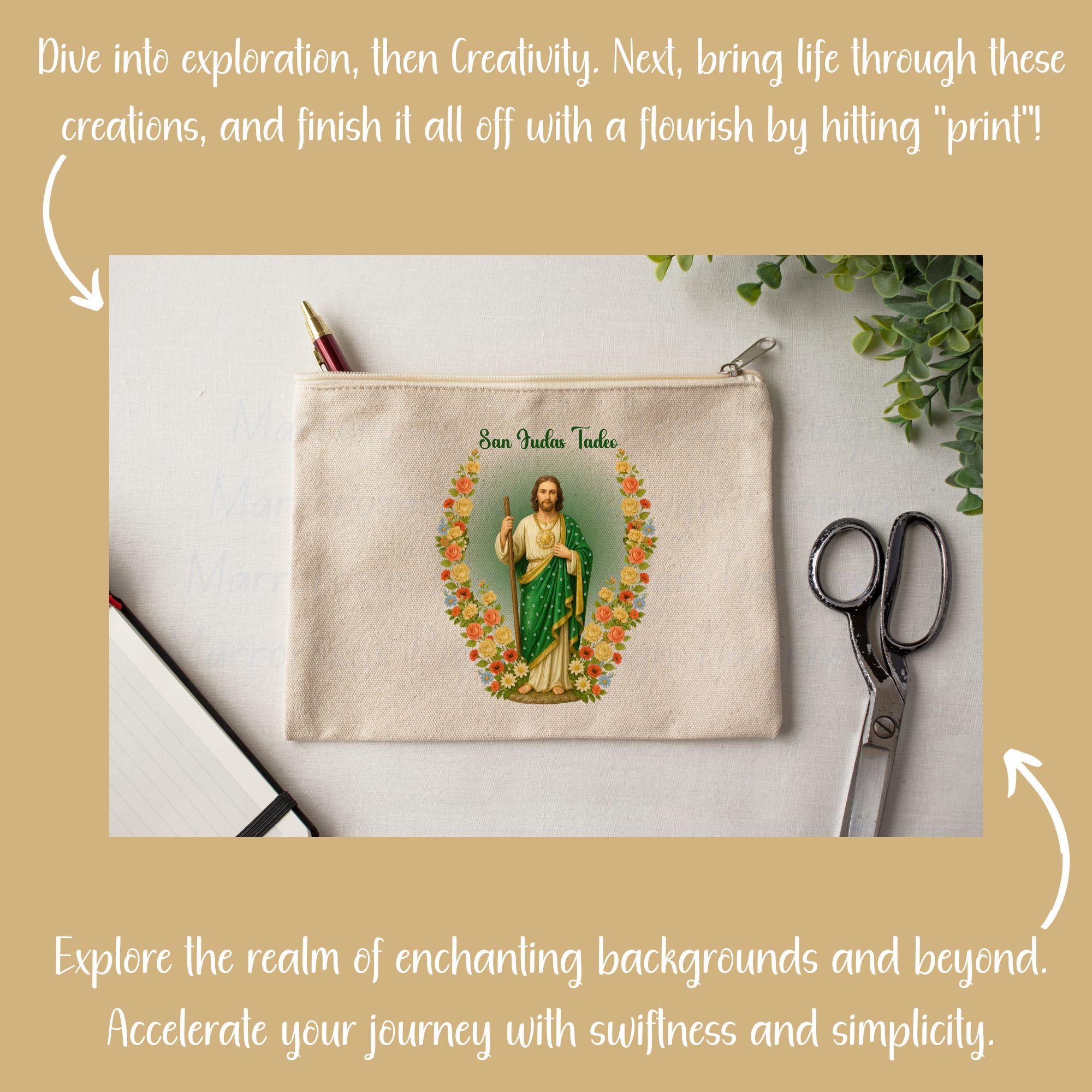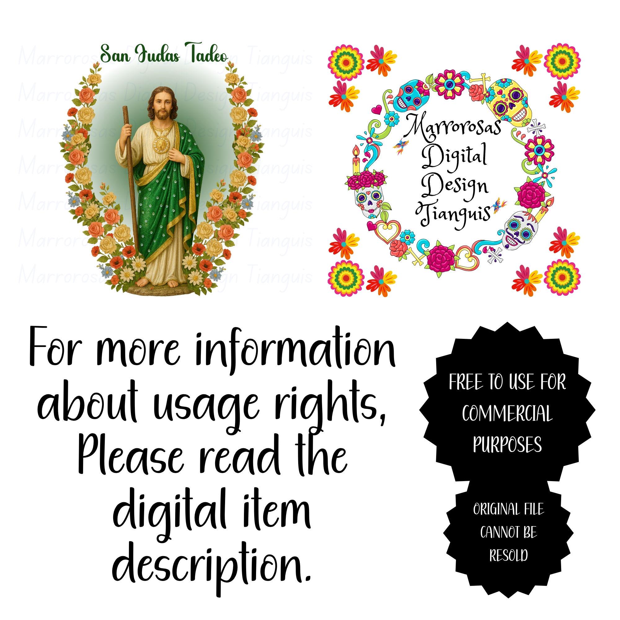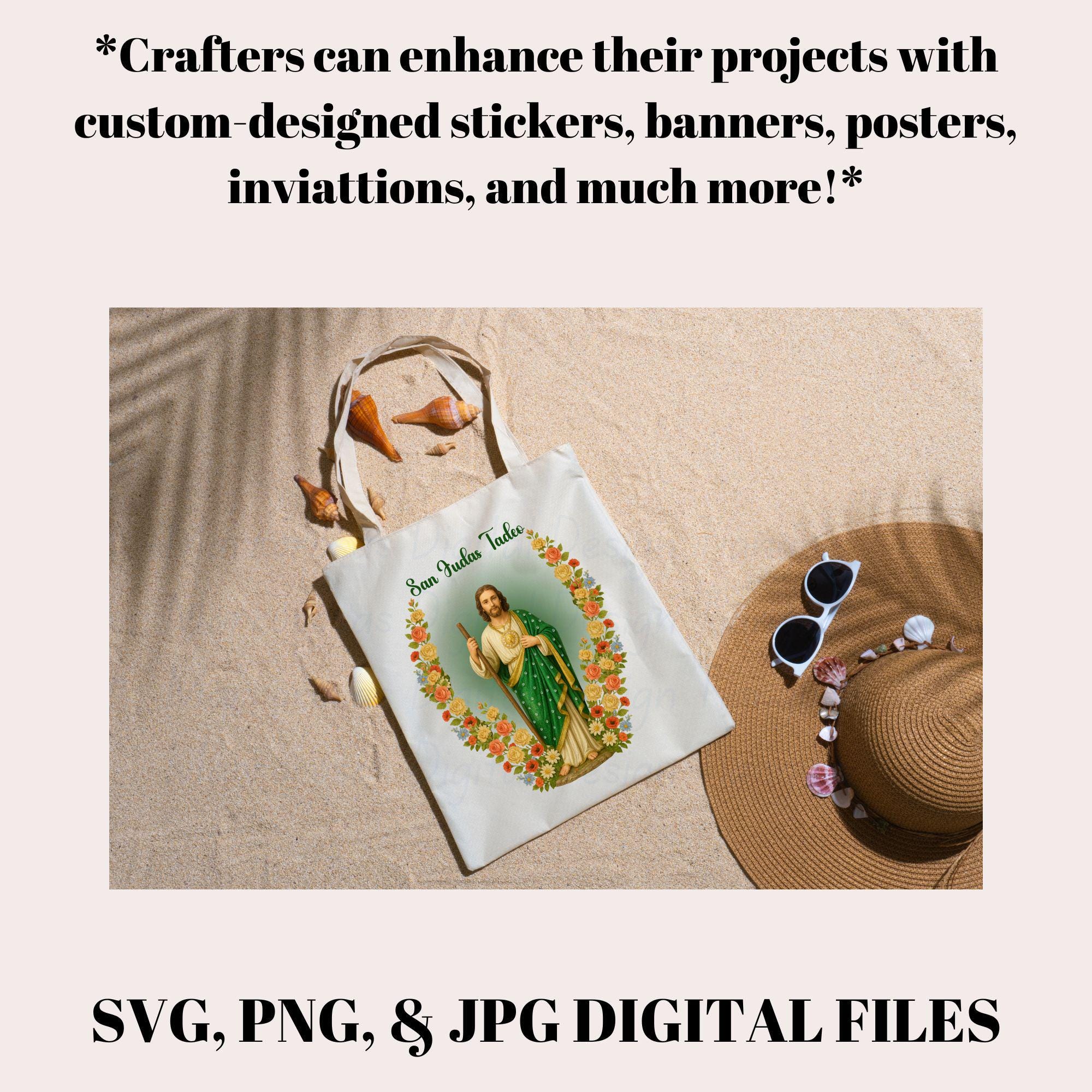 This illustration depicts San Judas Tadeo (St. Jude Thaddeus) surrounded by blooming roses and delicate greenery, symbolizing strength, healing, and faith. The colors are rich and uplifting — deep greens, warm golds, and soft florals — creating a spiritual and comforting design perfect for personal devotion or inspirational décor. Ideal for religious crafts, wall prints, prayer journals, candles, shirts, mugs, or devotional cards, this file can be used in both home and church settings. The design works beautifully for faith-based creators, Hispanic heritage gifts, and anyone honoring San Judas Tadeo.. San Judas Tadeo Floral is a very cute and lovable digital design/art that can be used in many different ways. Great for gifting either him or her. This digital design product comes in 3 different DIGITAL file types (PNG, SVG, & JPG) and also 1 PDF File to accommodate any of your needs. Files are resizable and printable!
