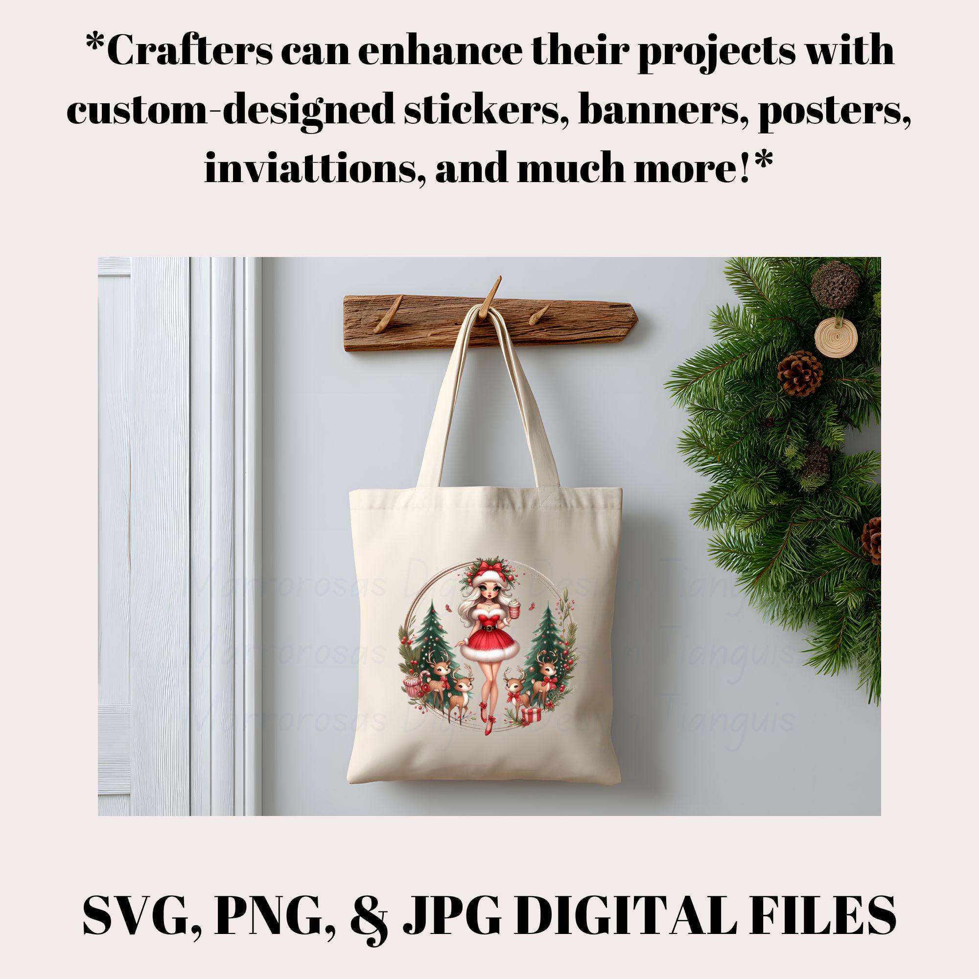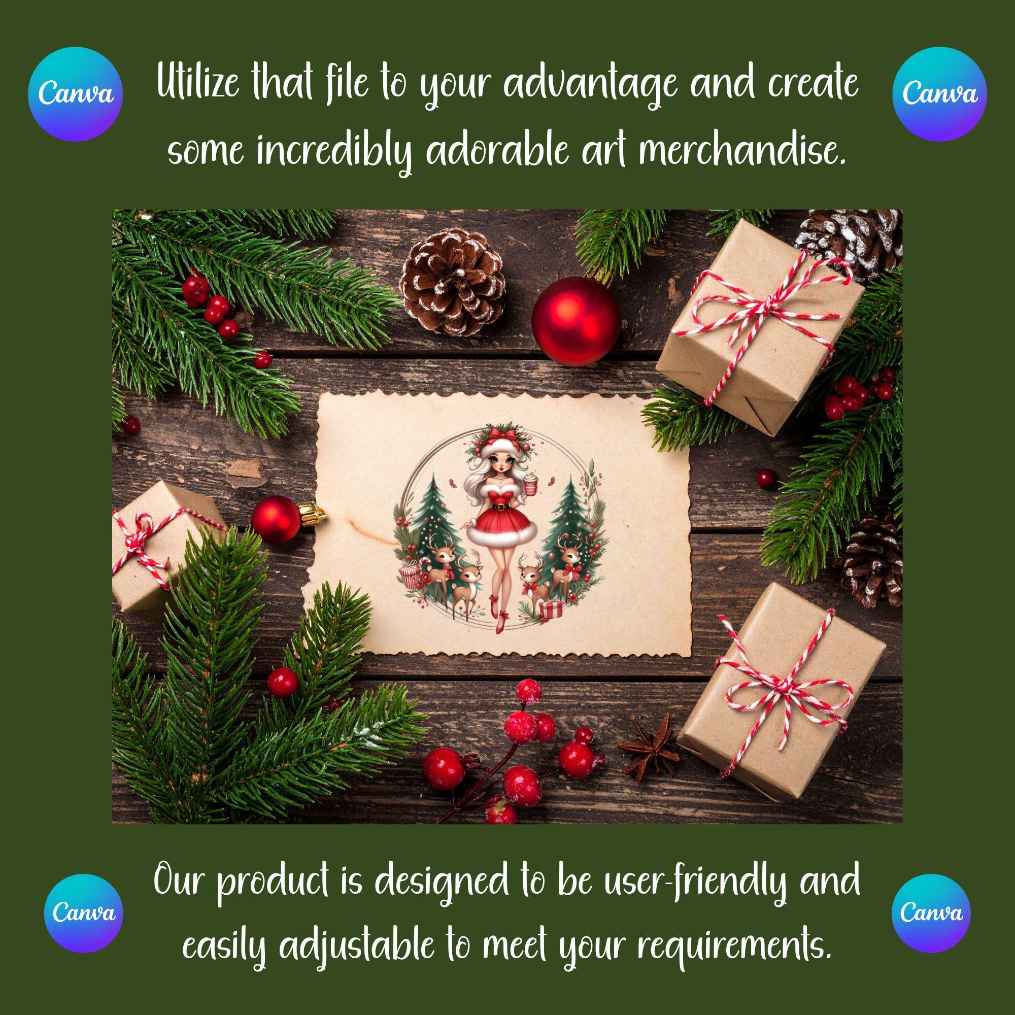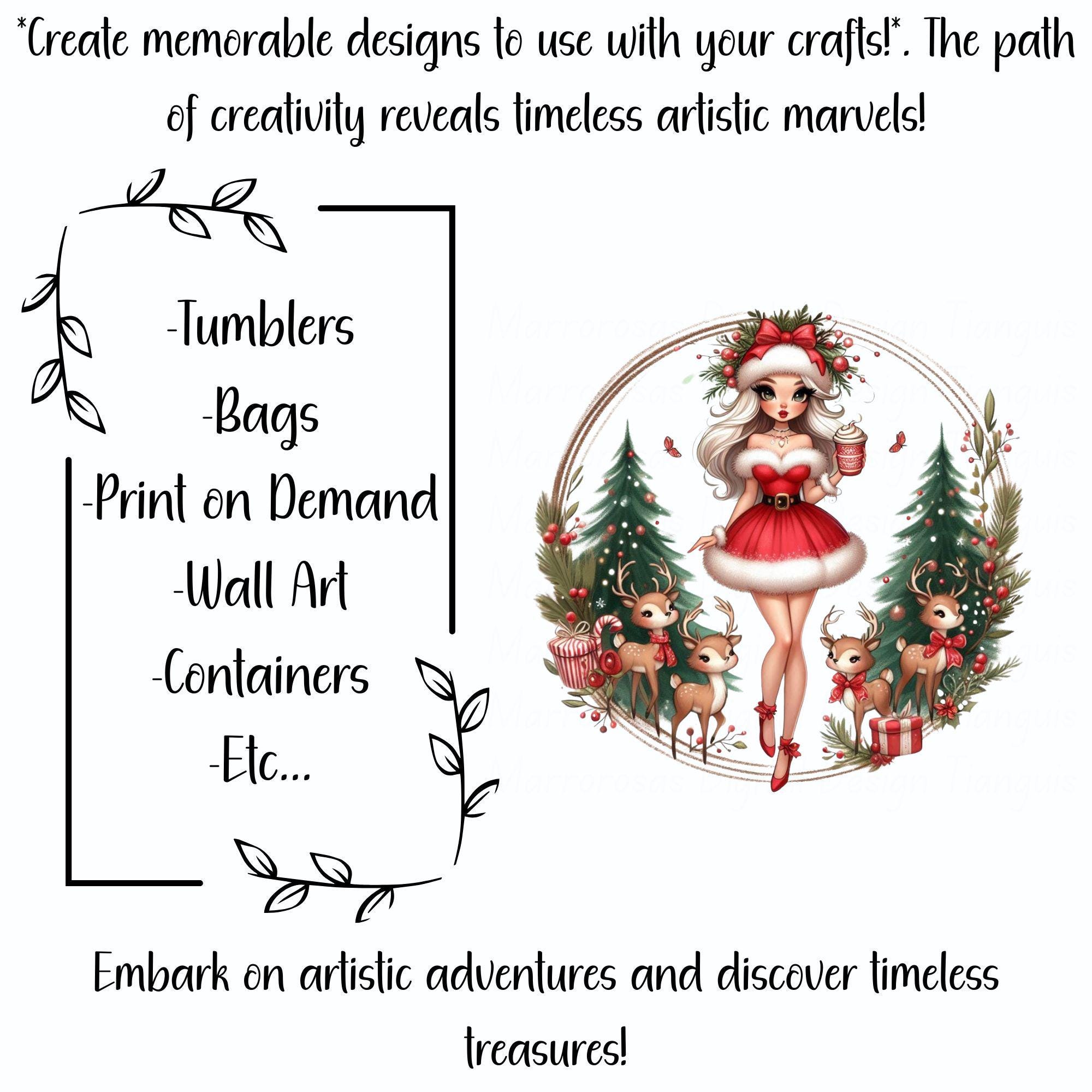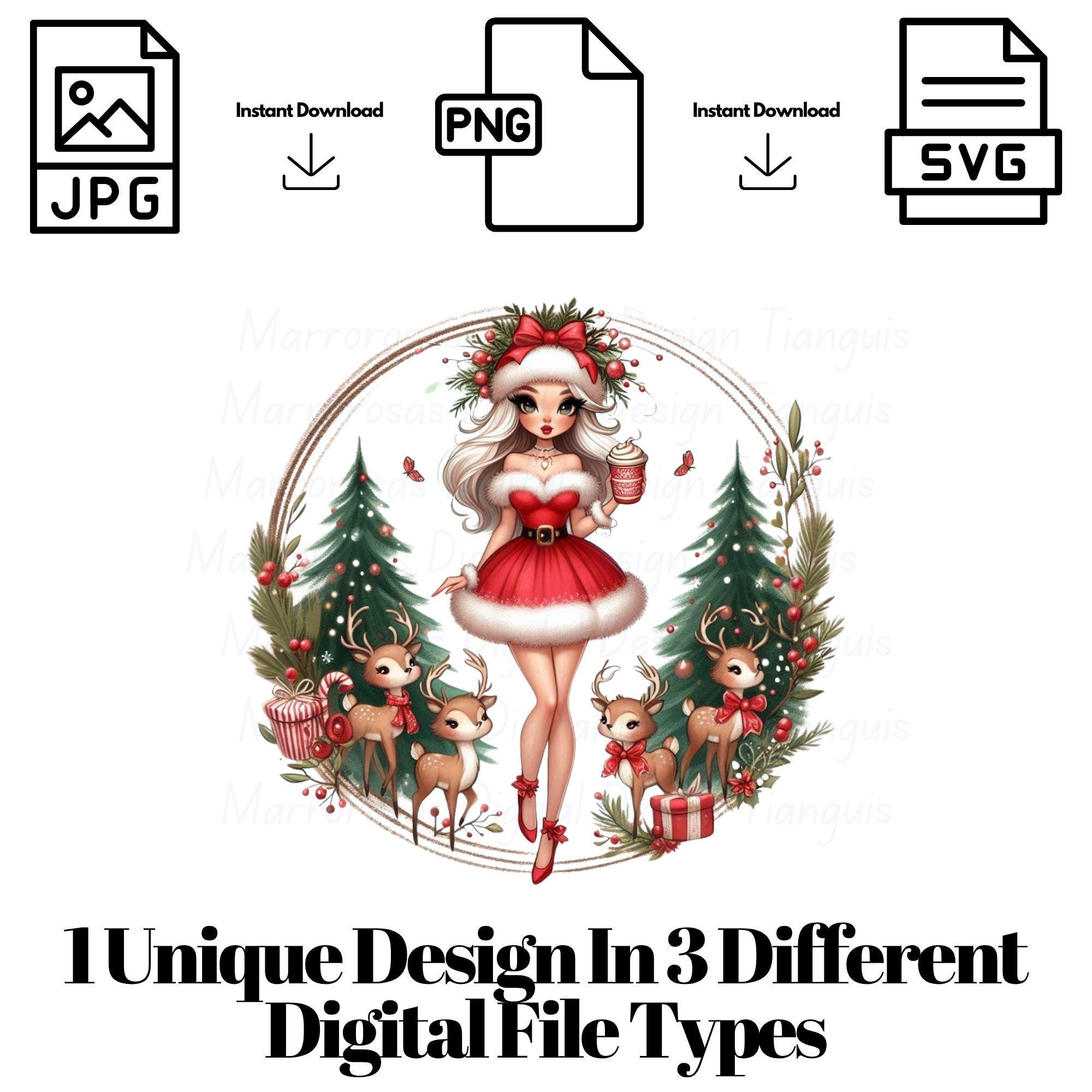 Bring holiday sparkle and feminine flair to your Christmas creations with this glam Christmas girl digital design! Featuring a chic blonde beauty in a Santa-inspired outfit surrounded by Christmas trees, reindeer, candy canes, and gifts, this artwork radiates festive cheer, cozy vibes, and vintage holiday glam. This high-quality PNG file is perfect for T-shirts, mugs, tote bags, prints, greeting cards, wall art, and sublimation projects. Whether you’re crafting for your shop, your customers, or your own seasonal décor, this design adds a sprinkle of magic, style, and Christmas joy to every project.. All Sprinkled with Christmas Joy is a very cute and lovable digital design/art that can be used in many different ways. Great for gifting either him or her. This digital design product comes in 3 different DIGITAL file types (PNG, SVG, & JPG) and also 1 PDF File to accommodate any of your needs. Files are resizable and printable!