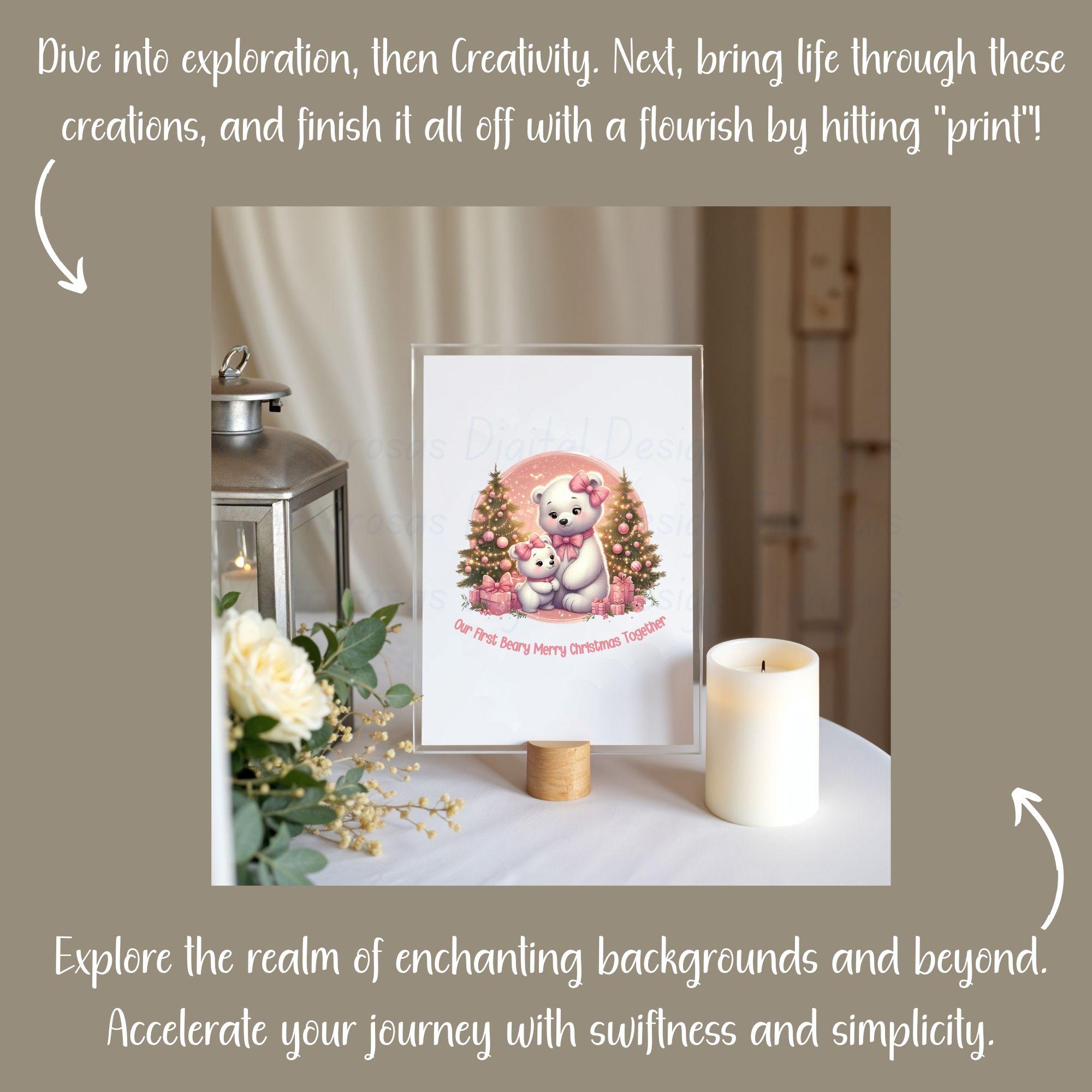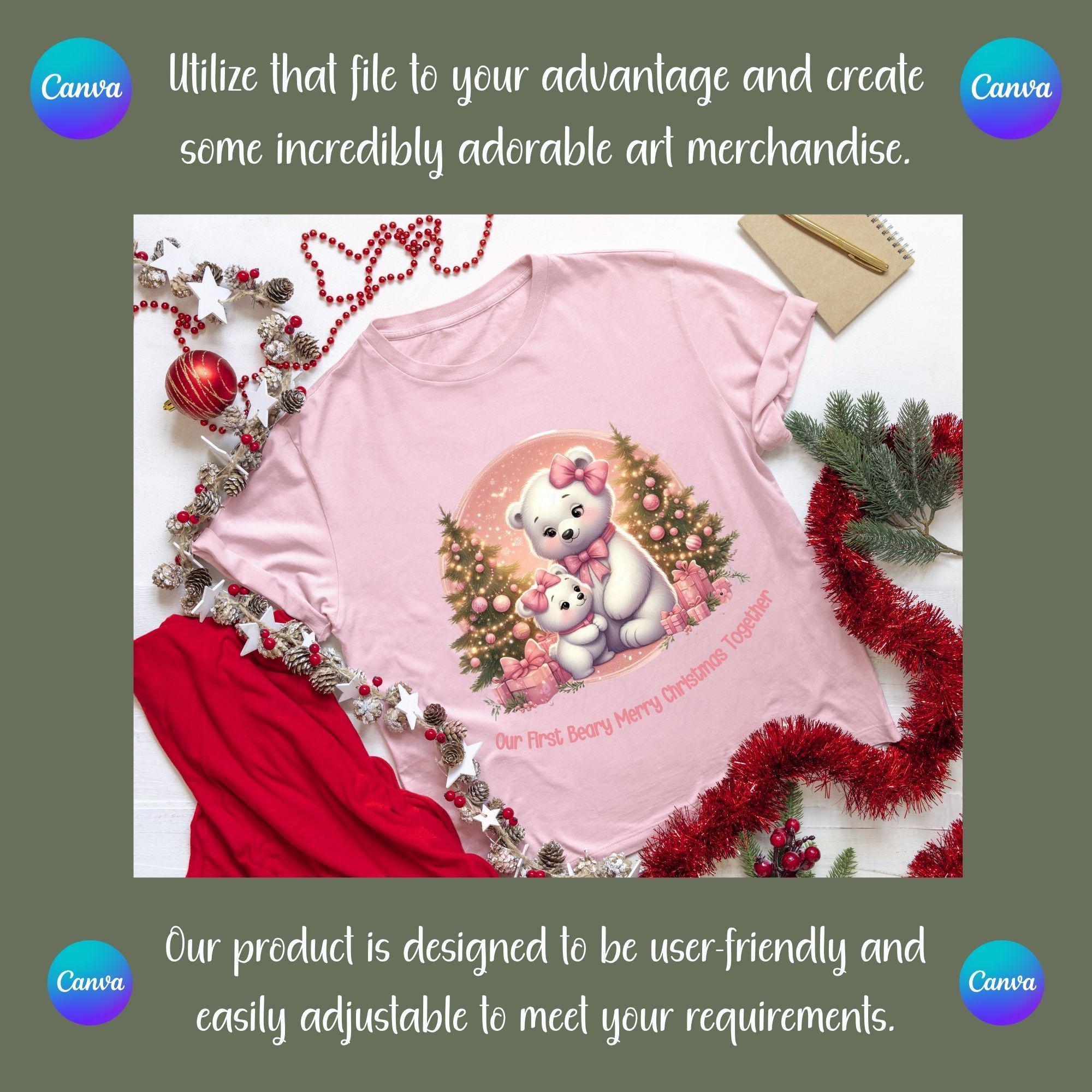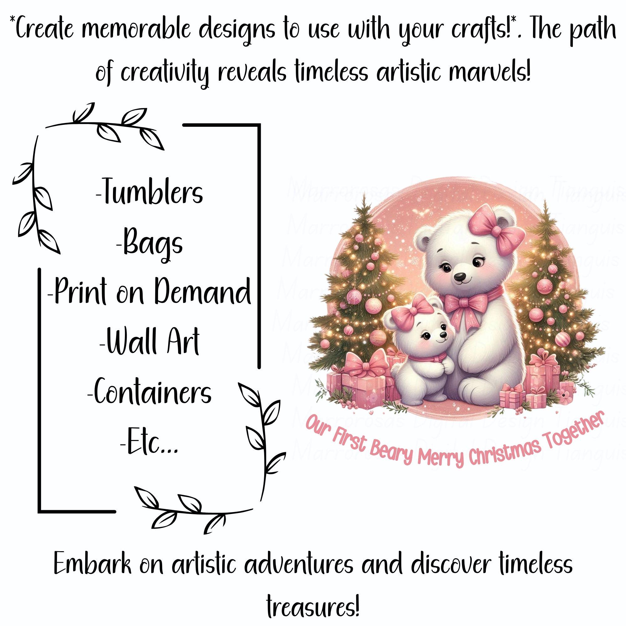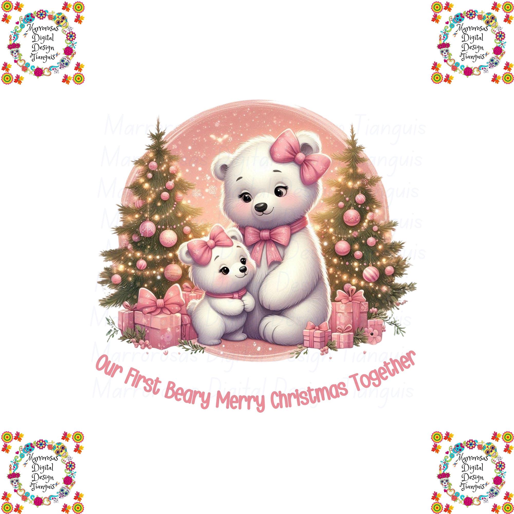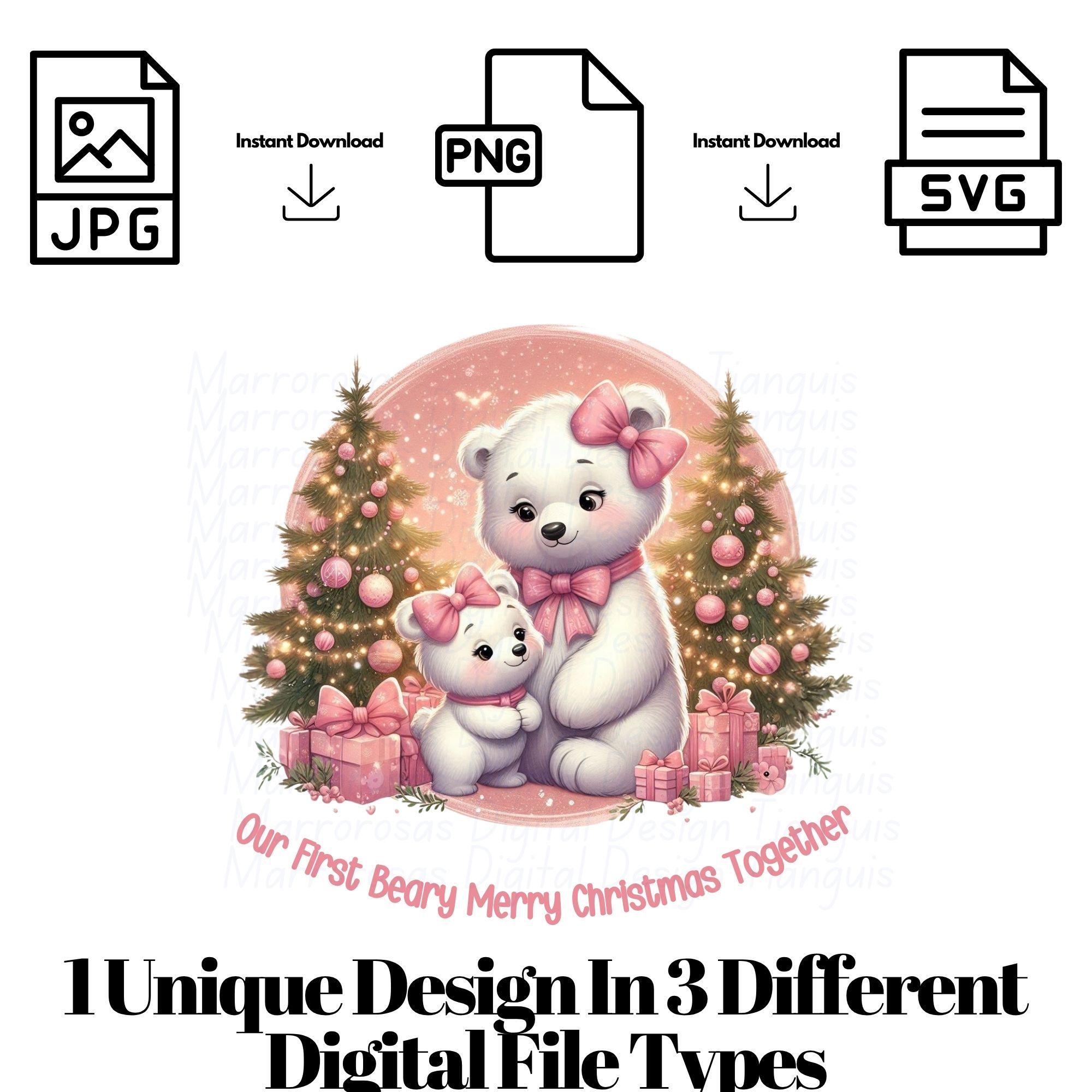 Bring warmth, love, and pastel magic to your holiday creations with this adorable Pink Christmas Bear Family digital design! 🎀✨ This high-quality digital artwork features a sweet mama bear and baby bear duo surrounded by sparkling Christmas trees, pink presents, and a dreamy pastel snow background. Perfectly styled in soft pinks, golds, and creamy whites, this design radiates coziness, family love, and Christmas cheer. Whether you’re crafting shirts, mugs, tote bags, nursery prints, or seasonal décor, this design is the perfect way to spread holiday joy — especially for lovers of cute, feminine, and pastel holiday vibes!... Beary Merry Christmas is a very cute and lovable digital design/art that can be used in many different ways. Great for gifting either him or her. This digital design product comes in 3 different DIGITAL file types (PNG, SVG, & JPG) and also 1 PDF File to accommodate any of your needs. Files are resizable and printable!