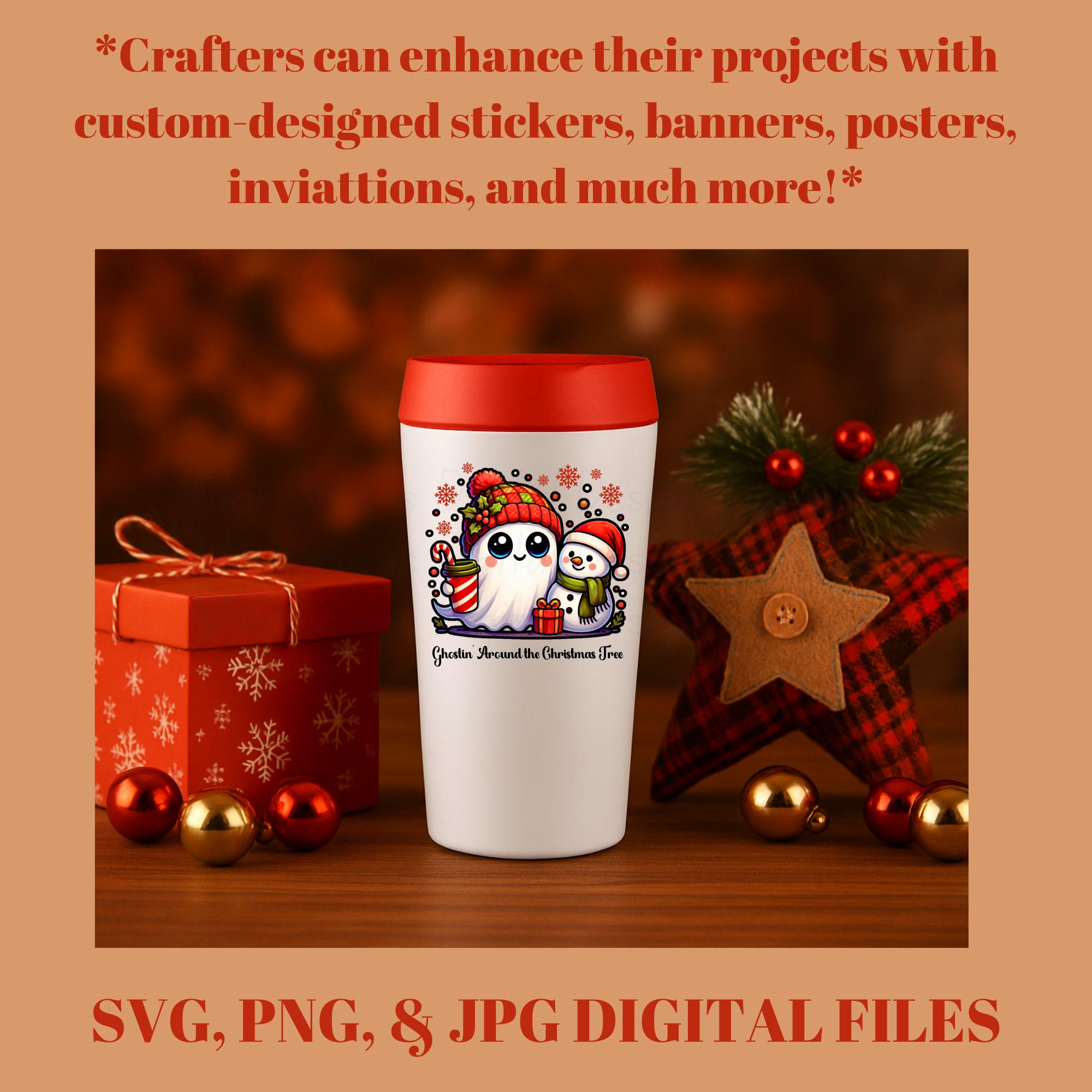 Whether you're creating cozy holiday shirts, personalized Christmas mugs, festive tumblers, greeting cards, stickers, or winter craft projects, this high-quality PNG is ready to print, press, and share joy all season long.... Ghostin' Around the Christmas Tree is a very cute and lovable digital design/art that can be used in many different ways. Great for gifting either him or her. This digital design product comes in 3 different DIGITAL file types (PNG, SVG, & JPG) and also 1 PDF File to accommodate any of your needs. Files are resizable and printable!