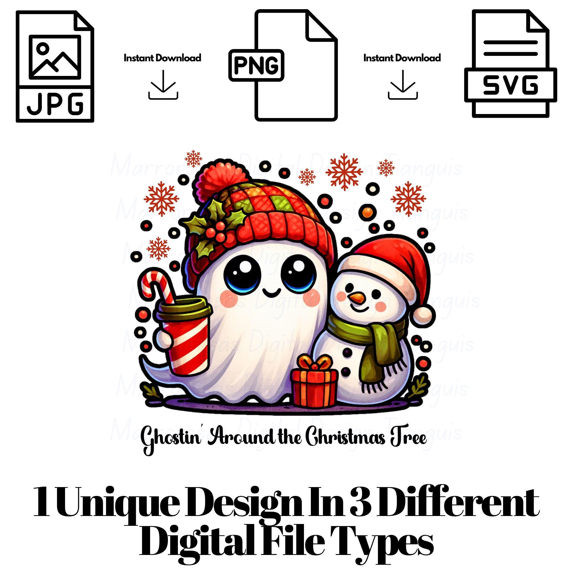 Ghostin' Around the Christmas Tree,Christmas Svg,Ghost Christmas Svg,Coffee Xmas Cups,Snowman Svg,Xmas Present,Christmas Ghost Svg,Ghost Png