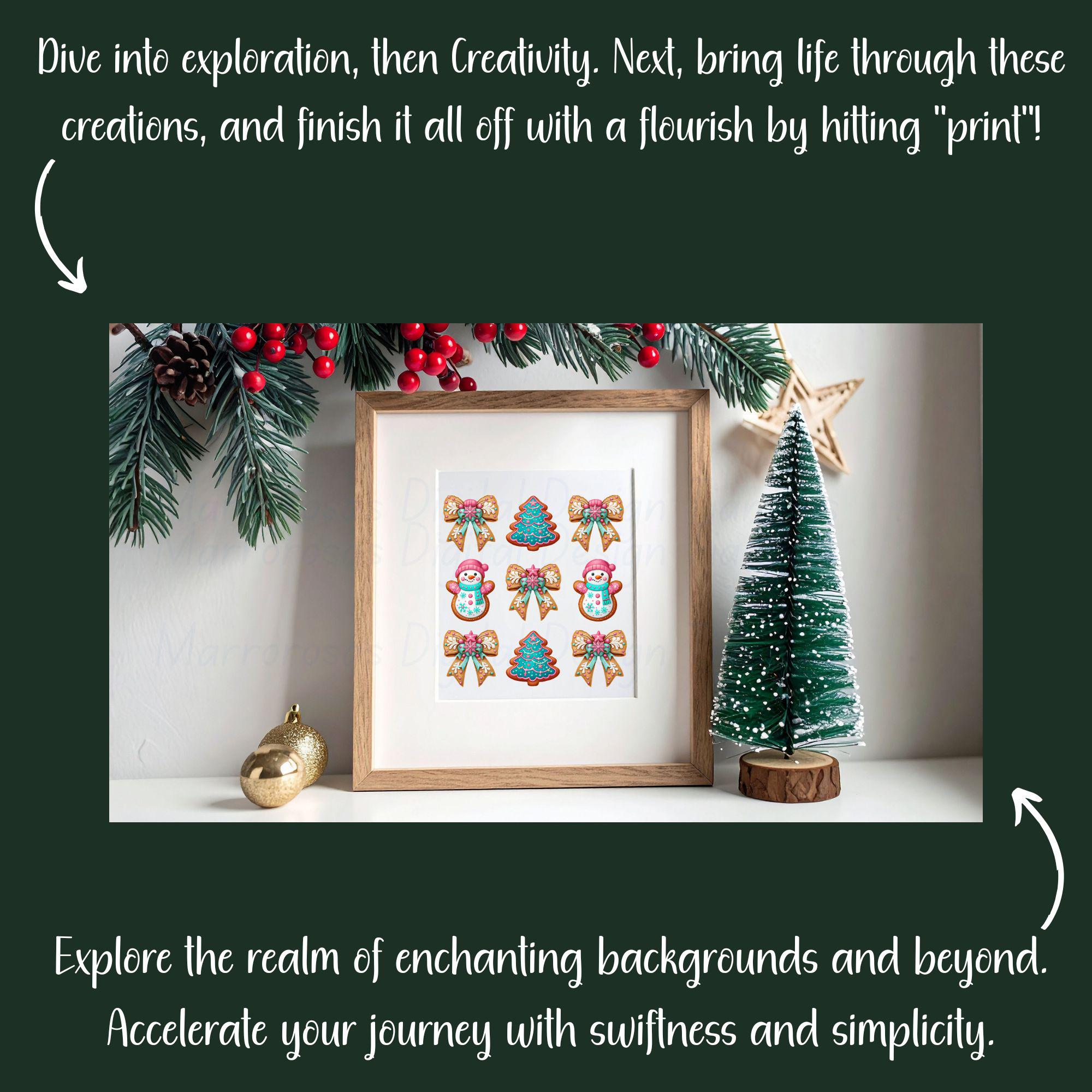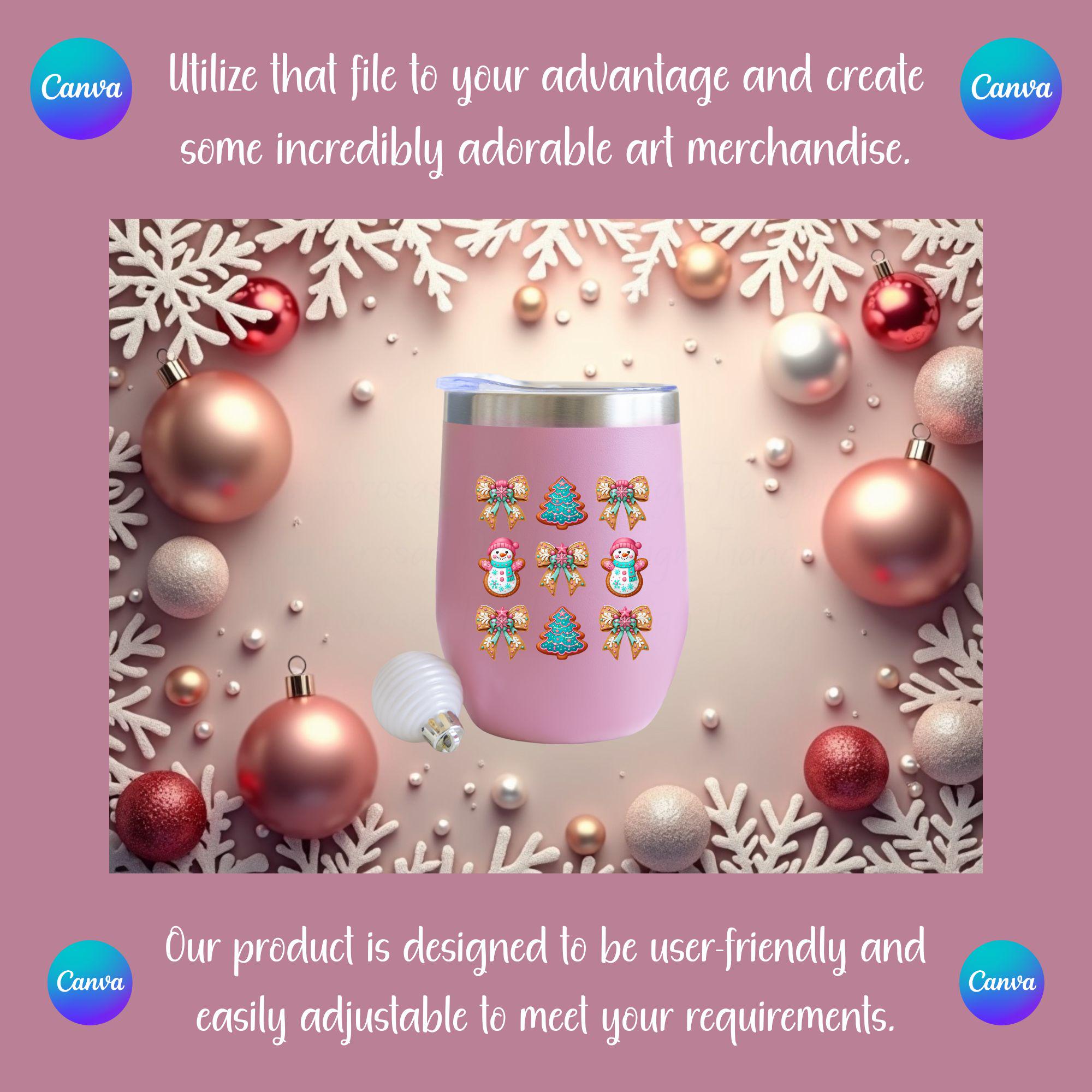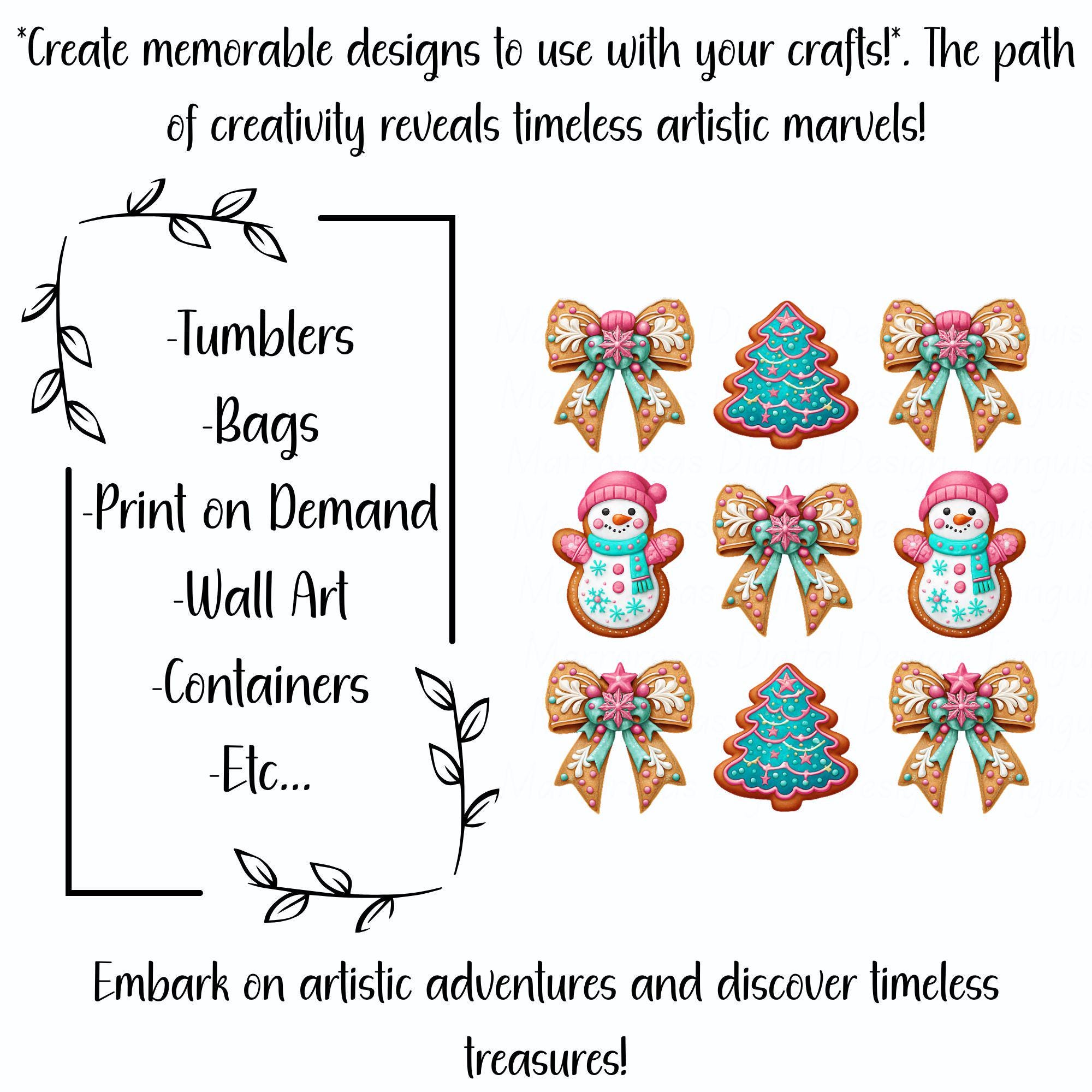 This design blends handcrafted cookie charm with bright seasonal colors like pink, teal, and white, creating a look that feels both nostalgic and modern. The added pink bows, frosty details, and festive accents make this artwork ideal for holiday crafting, apparel design, sublimation, invitations, stickers, décor, and so much more. Whether you're creating Christmas shirts, mugs, ornaments, or digital planners, this artwork will bring joy, sweetness, and instant holiday spirit to anything you make.