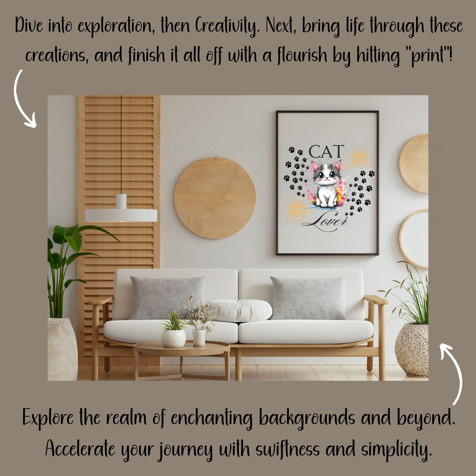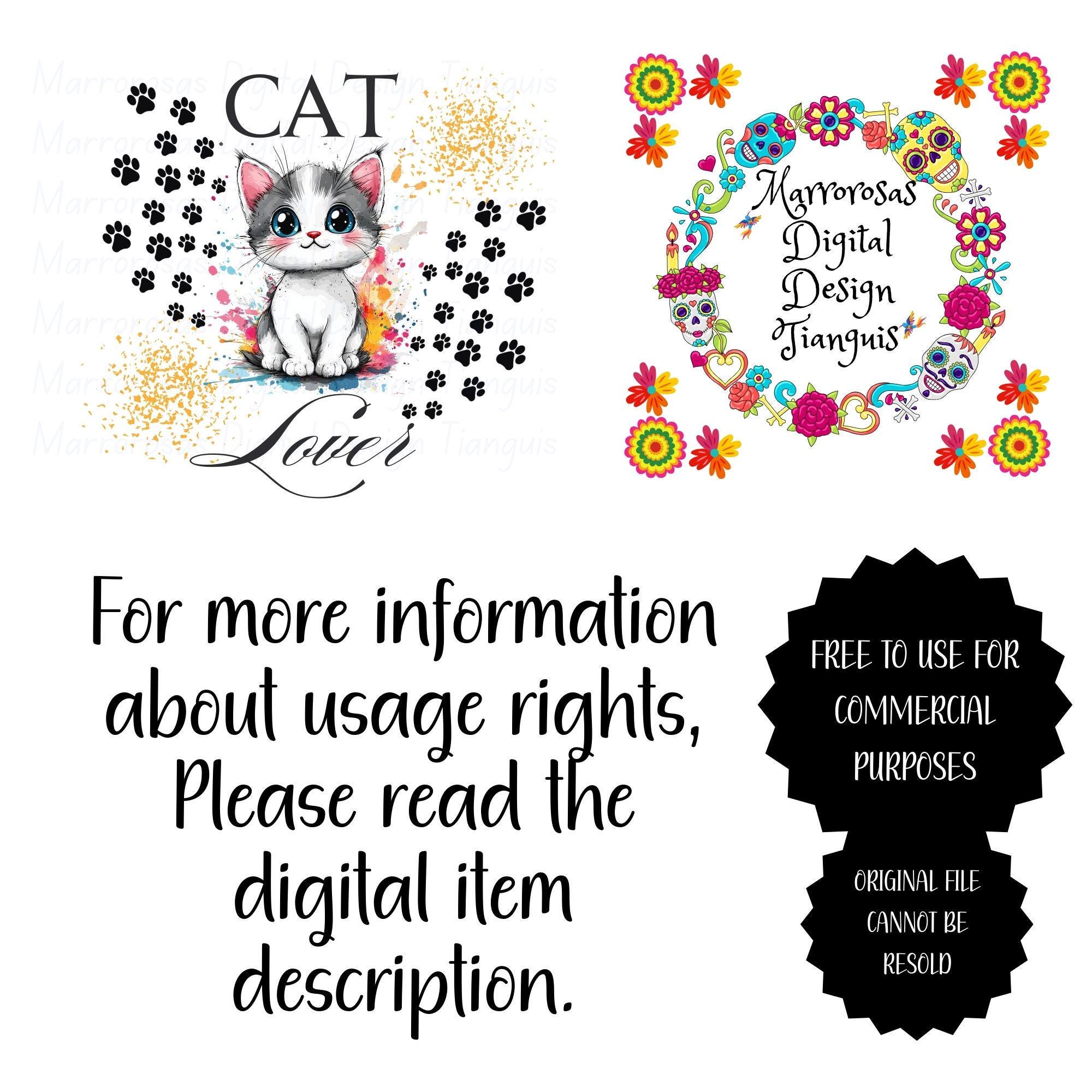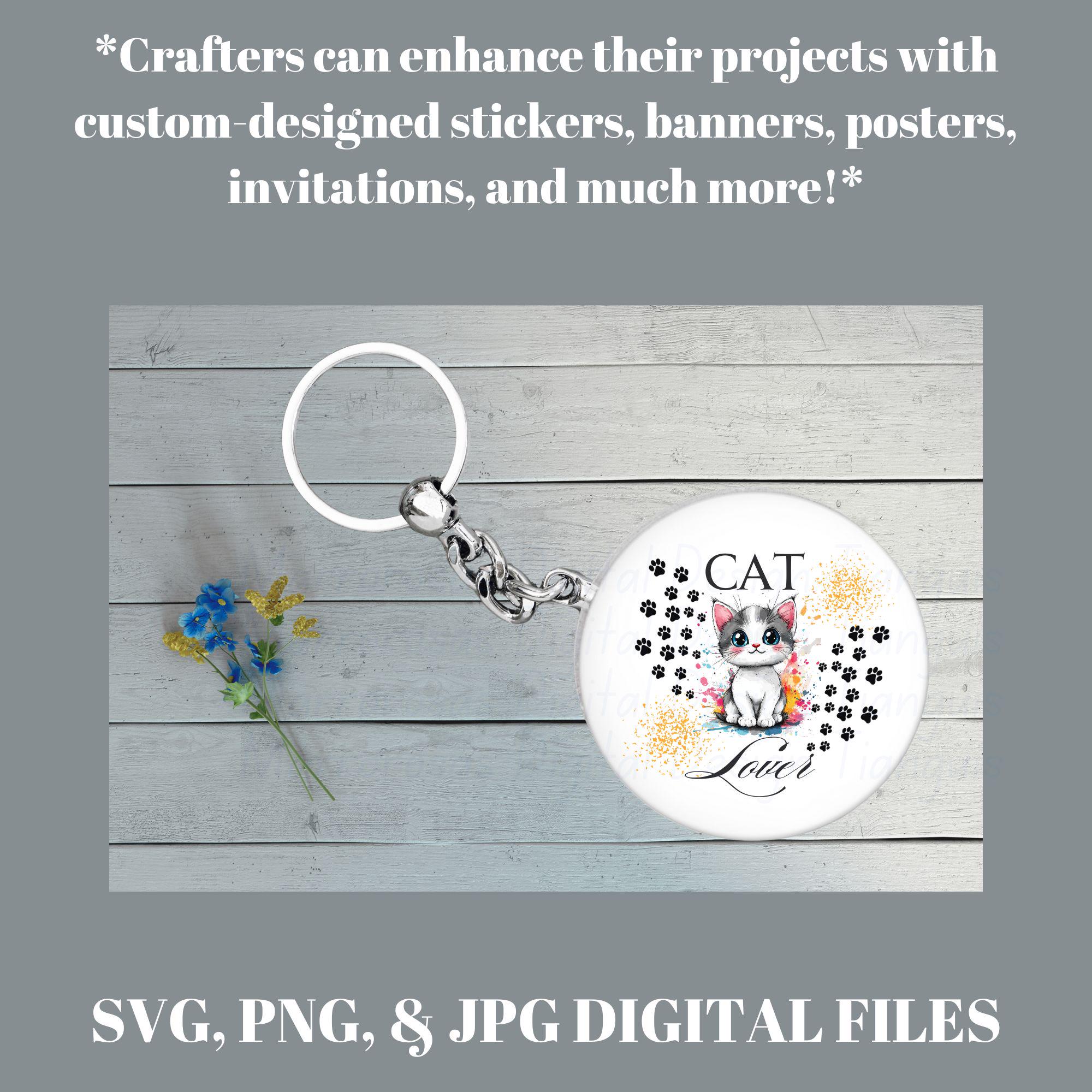 Celebrate your love for cats with this adorable and artistic “Cat Lover” digital design! Featuring a sweet wide-eyed kitten with soft pastel tones, expressive eyes, and delicate whiskers, this design is surrounded by artistic splashes of color, subtle paw prints, and a modern paint-splatter effect that brings charm and personality to life. The soft watercolor textures combined with bold contrast create a magical, heartwarming design that is perfect for cat lovers, pet parents, animal enthusiasts, and gift-givers. This artwork captures both sweetness and creativity, making it ideal for apparel, home décor, accessories, and small business creations. This digital file is delivered in high resolution with a transparent background, making it easy to use for a wide variety of print and craft projects... Cat paw lover is a very cute and lovable digital design/art that can be used in many different ways. Great for gifting either him or her. This digital design product comes in 3 different DIGITAL file types (PNG, SVG, & JPG) and also 1 PDF File to accommodate any of your needs. Files are resizable and printable!