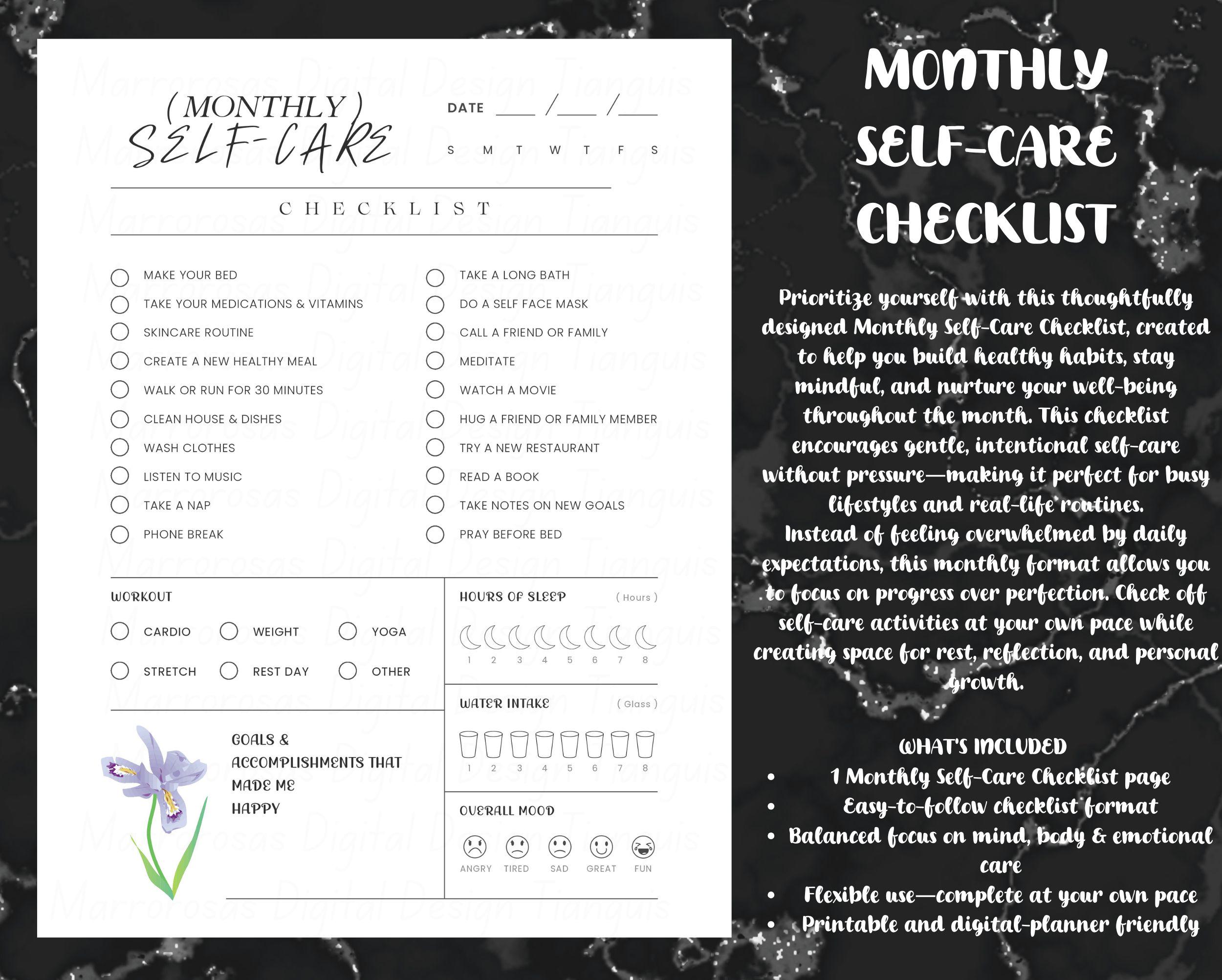 - Monthly Self-Care Checklist Page