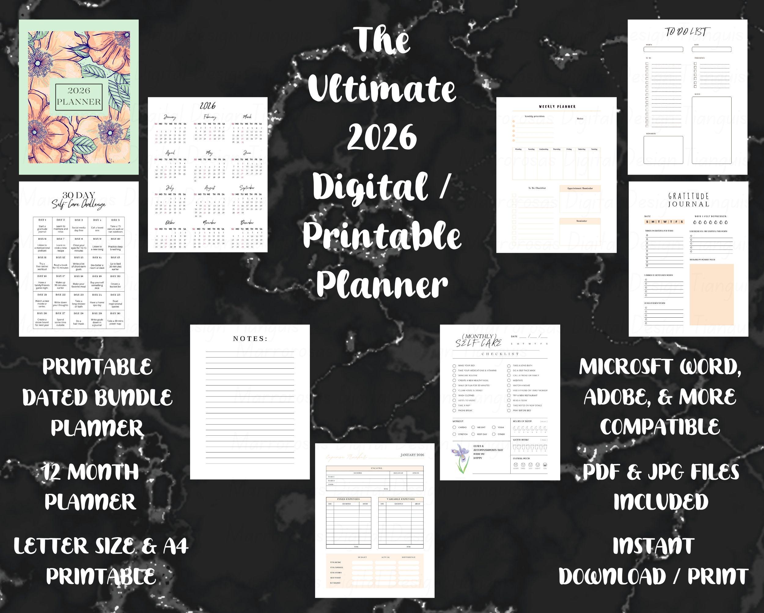 WHAT’S INCLUDED IN THIS 2026 DIGITAL / PRINTABLE BUNDLE PLANNER PURCHASE: