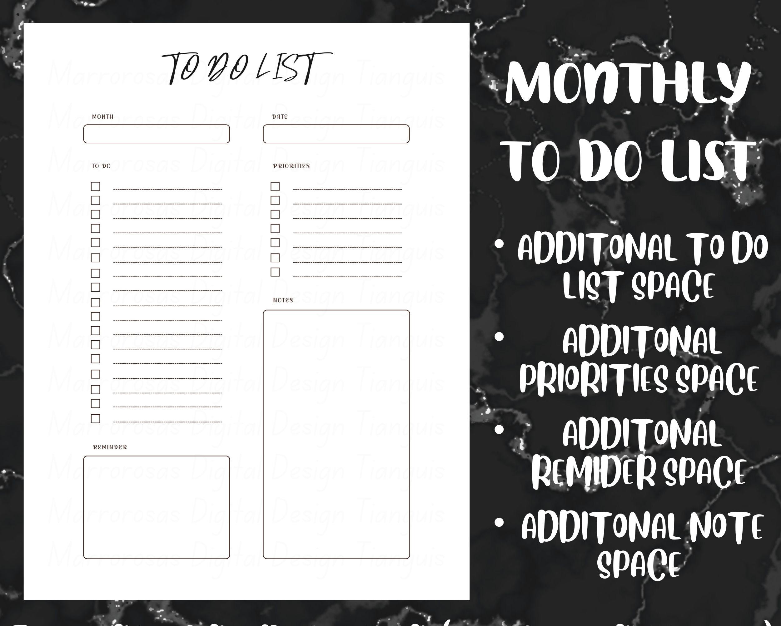 - Monthly To Do List Page