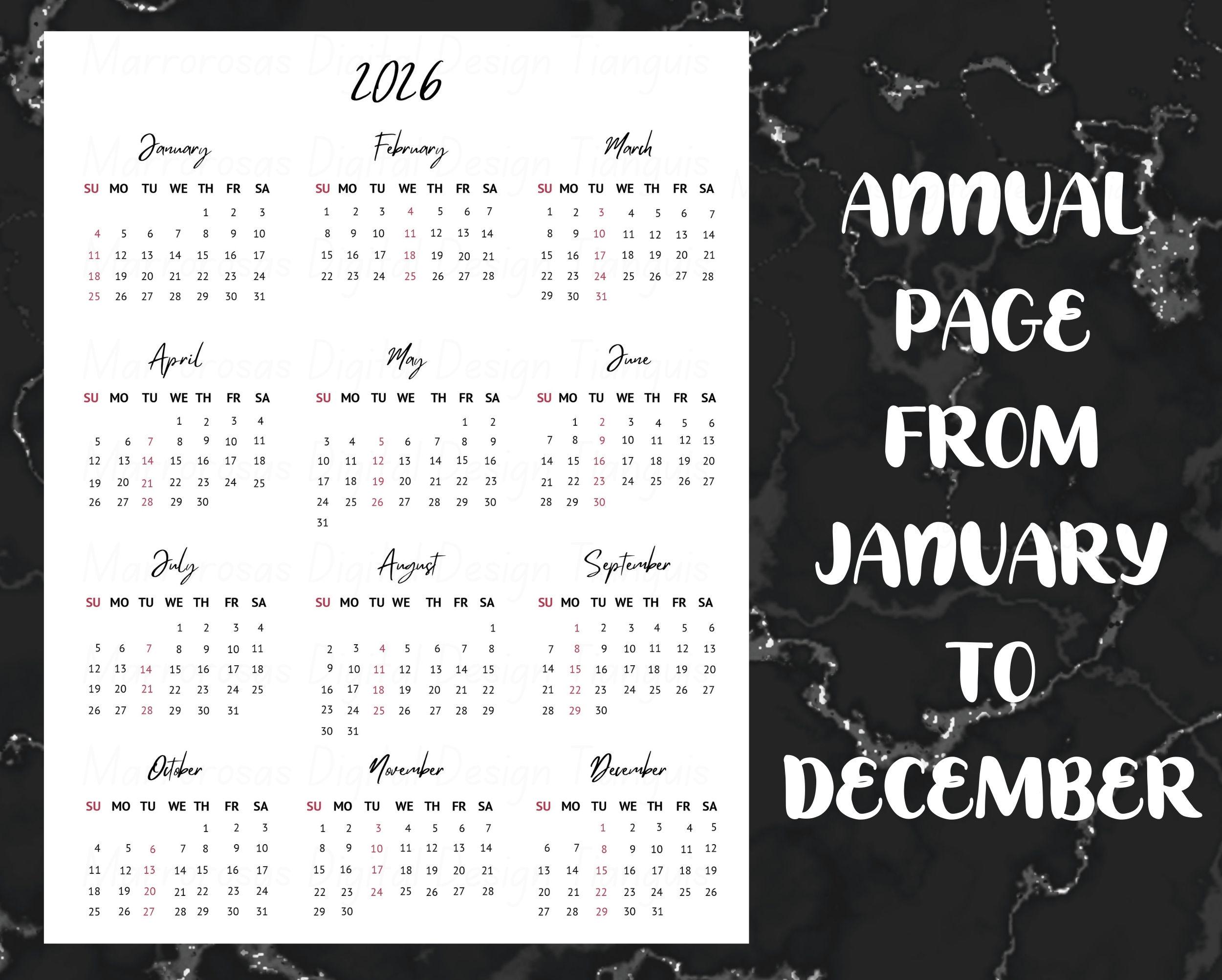 - Fully dated January–December 2026 calendars